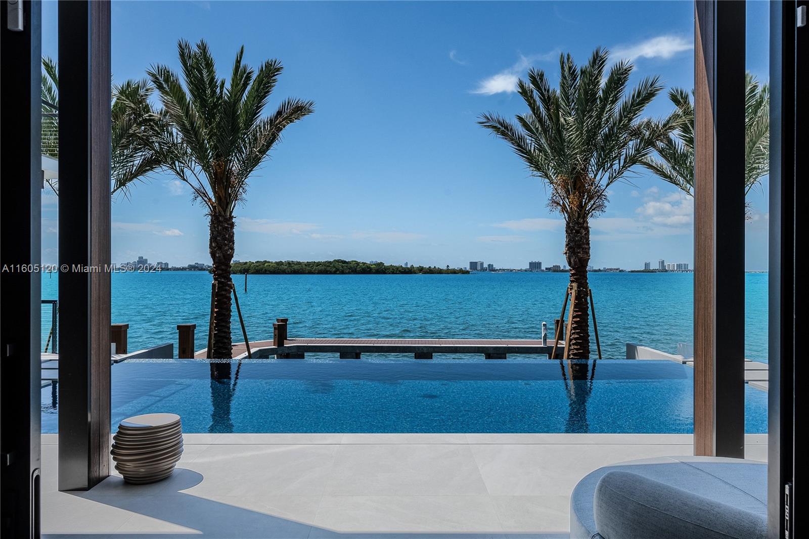 Designed by Portuondo Perotti, this 12,633 SF mansion epitomizes luxury.Boasting 102 FT on the water it offers stunning open bay views and downtown Miami skylines.The sleek exterior combines glass, stone, and wood.Inside, custom Italian millwork and a grand wall of glass frames the breathtaking bay views.The first floor showcases 12.5-foot ceilings and spacious living areas stretching across an impressive 80-foot span!It includes a family and chef’s kitchen with top-tier appliances, six bedrooms, 7.5 bathrooms, an office, a gym, and an elevator. Additional amenities include a 539-bottle wine room, top-of-the-line lighting, and a Lutron Homeworks system.Outdoor features include a knife-edge infinity pool, summer kitchen, and private dock.This estate offers unparalleled comfort and elegance.
