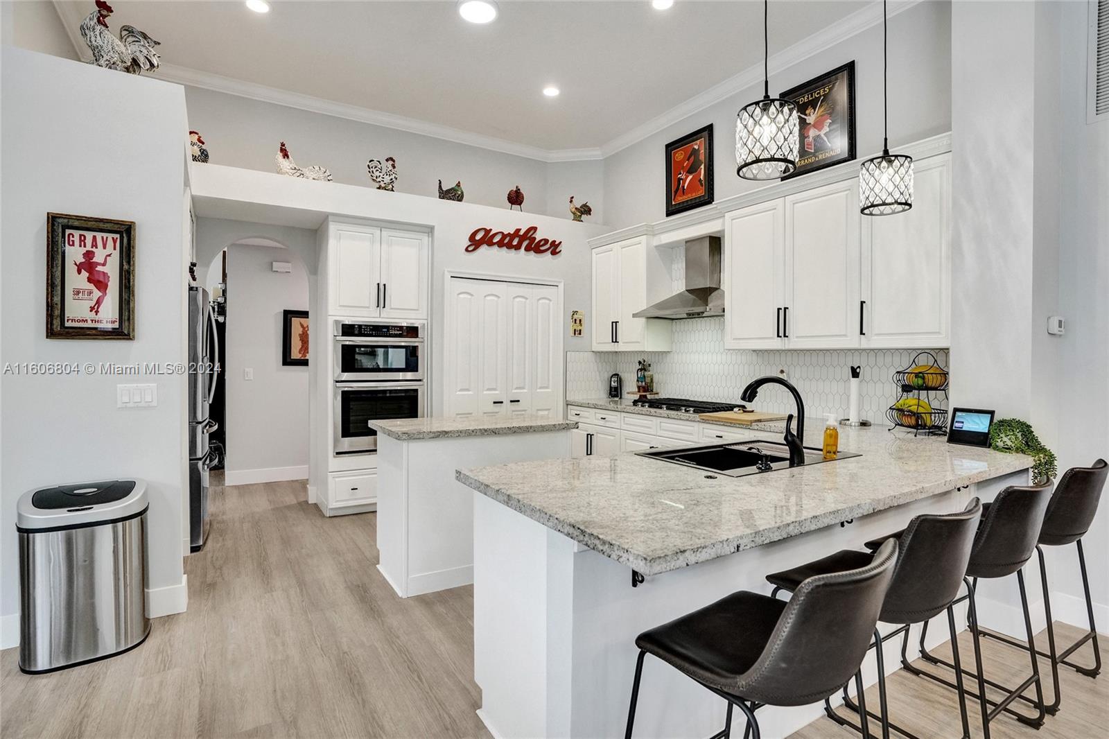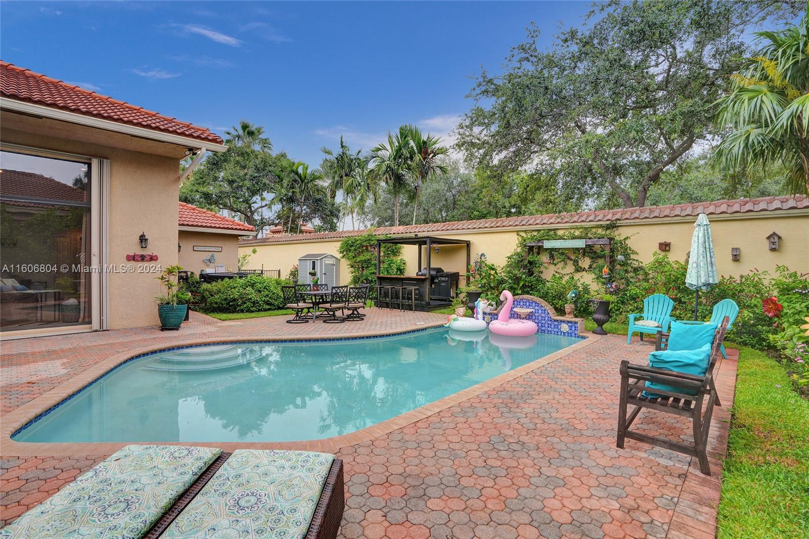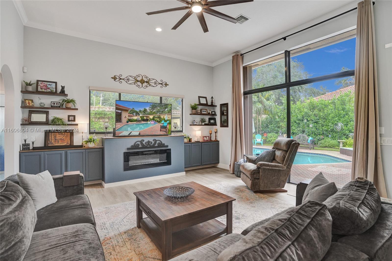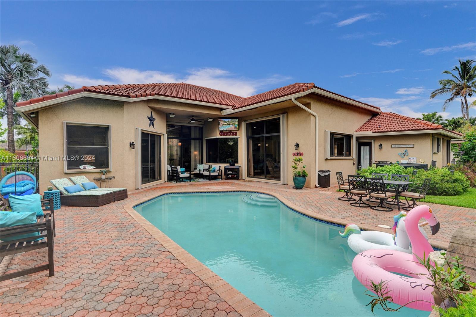 Nestled in the prestigious and sought-after luxury community of Sunset Lakes, this stunning 5-beds, 3-bath w/office epitomizes modern elegance and comfort. The moment you step through the grand entrance, you are greeted with a sense of sophistication and style that permeates every corner of this meticulously updated residence. The open floor plan seamlessly connects the living, dining, and family areas, creating an inviting and functional space for both relaxation and entertainment. Brand-new, state-of-the-art kitchen. Boasts top-of-the-line stainless steel appliances, custom cabinetry, and sleek quartz countertops. Throughout the home, new floors, updated bathrooms, New A/C's & lighting. Step outside to discover your private oasis w/lush tropical landscaping and relaxing spa. Must See!