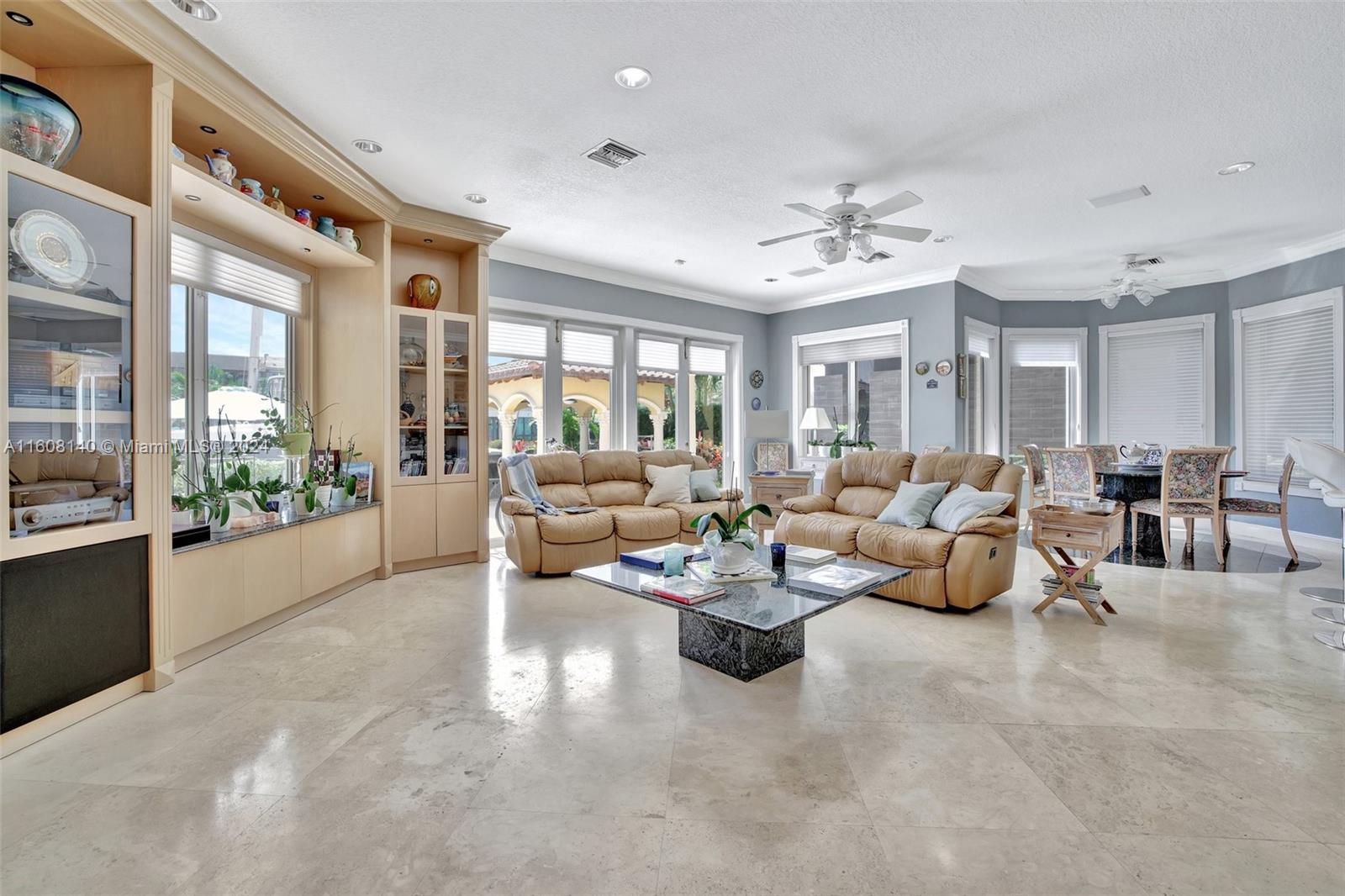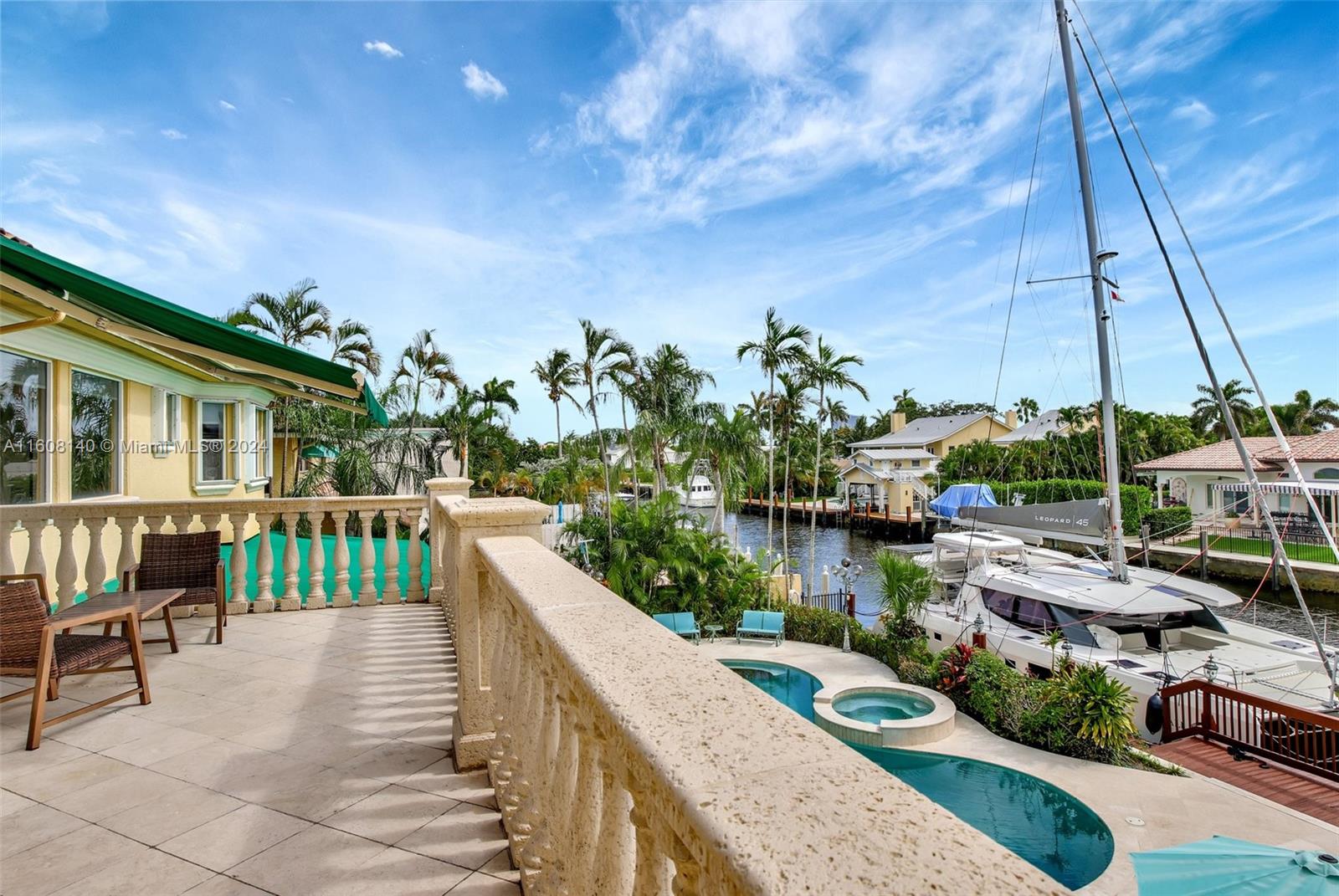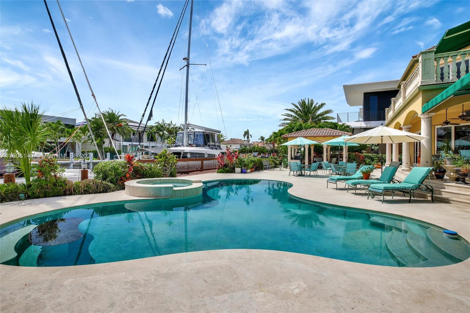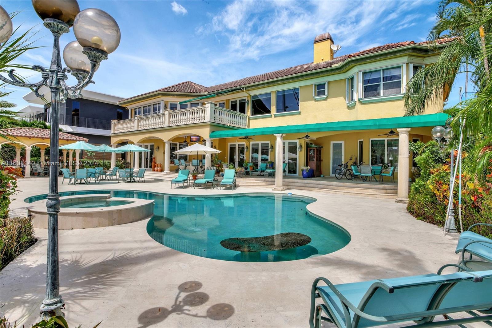 Magnificent Italian Style Villa, first time on the market, original owner, 100 ft waterfront with no fixed bridges and minutes to the ocean. 5 bedrooms all en-suite, open floor plan bright and sunny, amazing backyard with west exposure, heated swimming pool, jacuzzi and gazebo with barbecue, spacious all marble backyard great for entertaining. The home features high ceilings, marble and granite galore, excellent solid construction. Open kitchen to florida room, well equipped, subzero appliances, breakfast bar, white cabinetry. Second floor master bedroom with built-ins and walk-in closets, balcony overlooking the yachts and the water. 3 car garage. Home sold partially furnished. Walking distance to the beach. lots of potential to make it yours. JUST REDUCED. By appointment only.