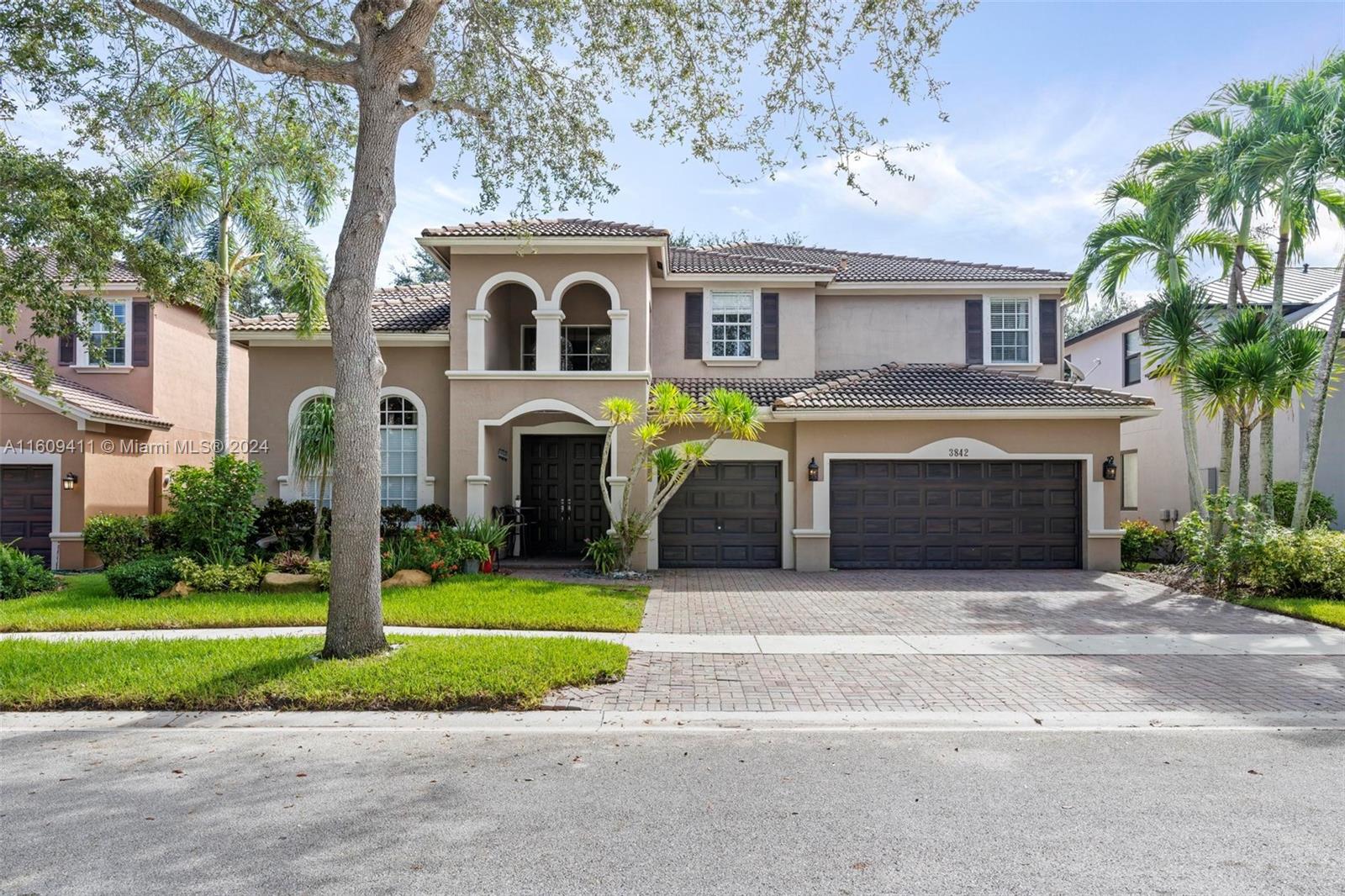 Nestled in the tranquil community of Isles of Weston, this impeccable 5/5 residence epitomizes luxury and comfort. Main level has a dedicated office space or a quiet study room. Upstairs, large media room can serve as 6th bdrm. Impressive Gourmet Kitchen all stainless steel appliances, plenty of storage opens to the Family Room and a separate breakfast area. A Chef's dream. Formal Dining Room perfect for Holiday Gatherings. Slide open glass doors to reveal Luxury Resort Style backyard with screened in pool, cascading waterfall and a summer kitchen perfect for hosting a summer bbq or enjoying a quiet evening. Space is designed for leisure and enjoyment. This residence is more than just a house, its a lifestyle waiting for you. Community includes: cable, internet, gym, pool and so much more!