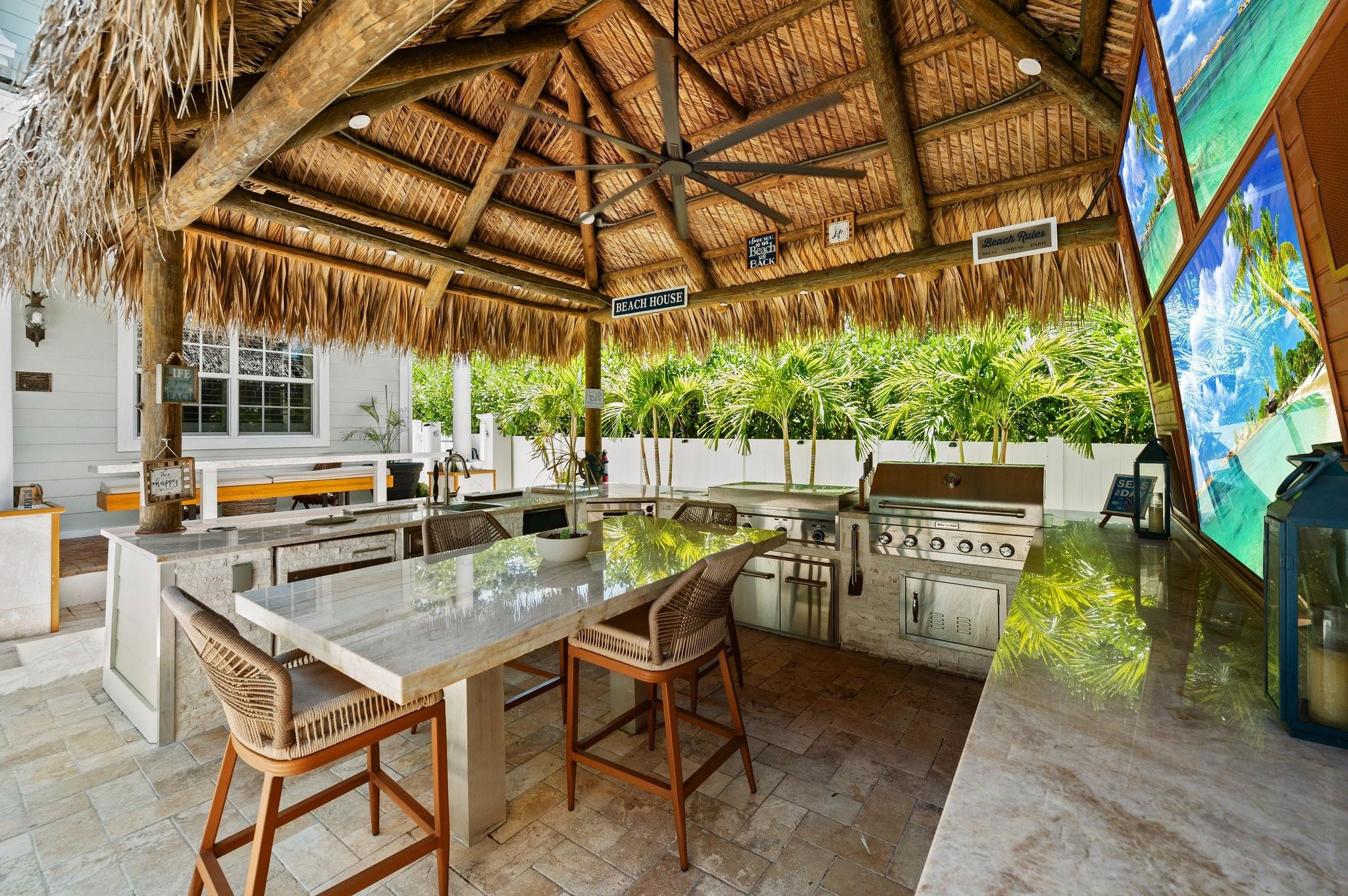 This stunning 2008 Coastal Key West home has been transformed with modern flair and impeccable taste. The 2021 magazine quality pool and patio with tiki hut, extraordinary summer kitchen and multiple big screens is an entertainers dream. The 2020 kitchen is a chefs delight and a focal point of the home . It offers great storage, custom cabinetry, quartz counters, huge pantry, bar, island and modern appliances. The spacious 2nd floor primary suite has 2 huge closets, balcony and new luxurious spa like bathroom. Other features inc: pool heater/chiller, gas generator, high elevation, PVC plumbing, vaulted ceilings, designer staircase, quality window treatments, surround sound, new AC units etc. Walk to marina/waterfront dining. Short drive to Las Olas, I95, airport, beach, private schools.