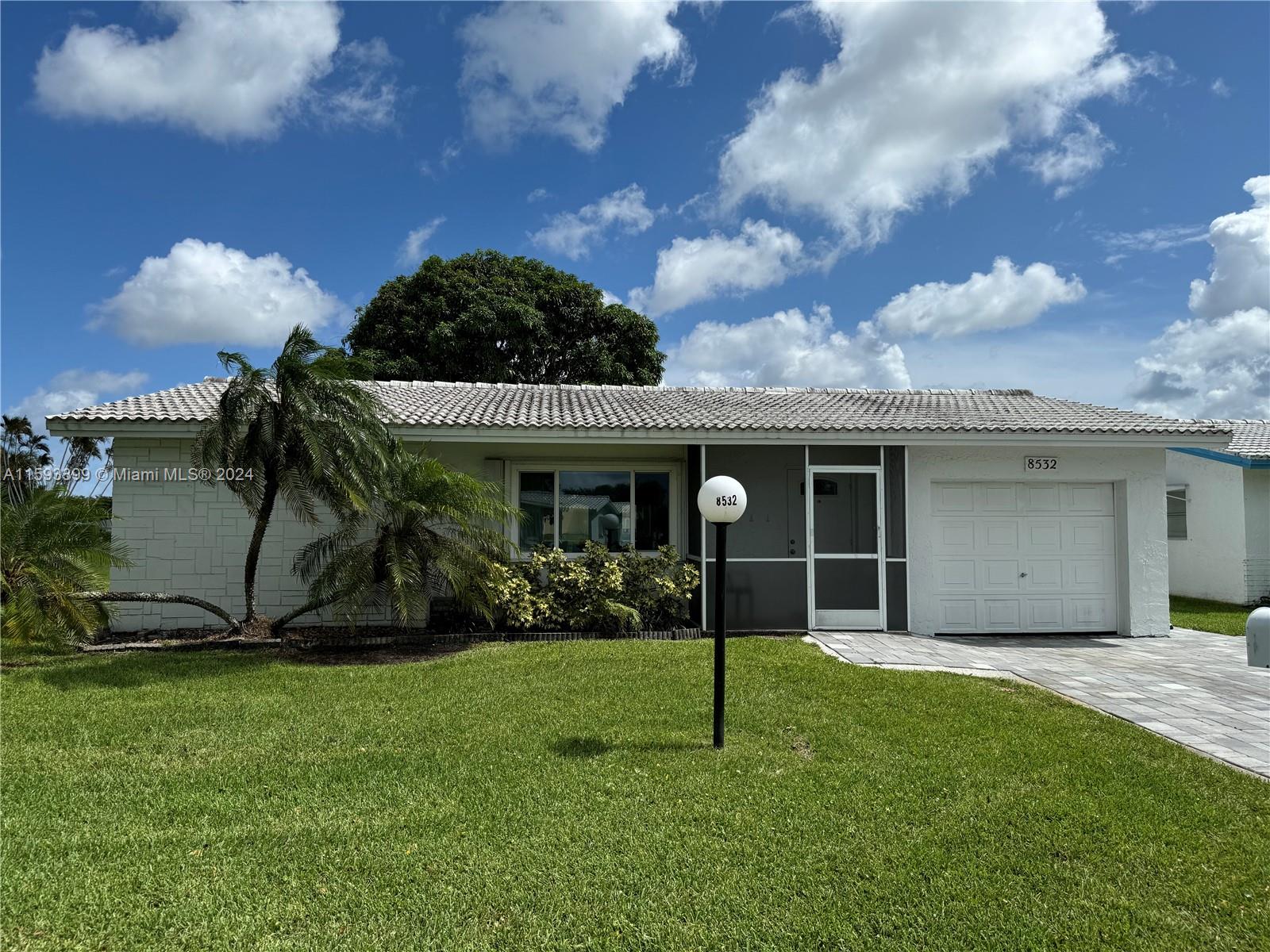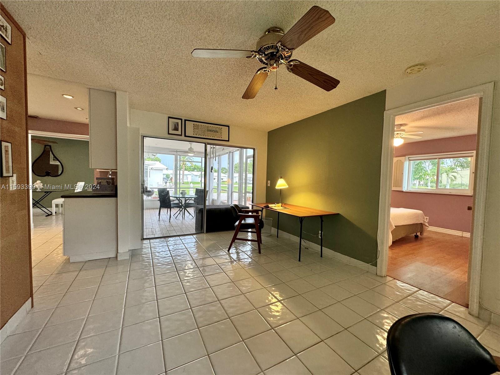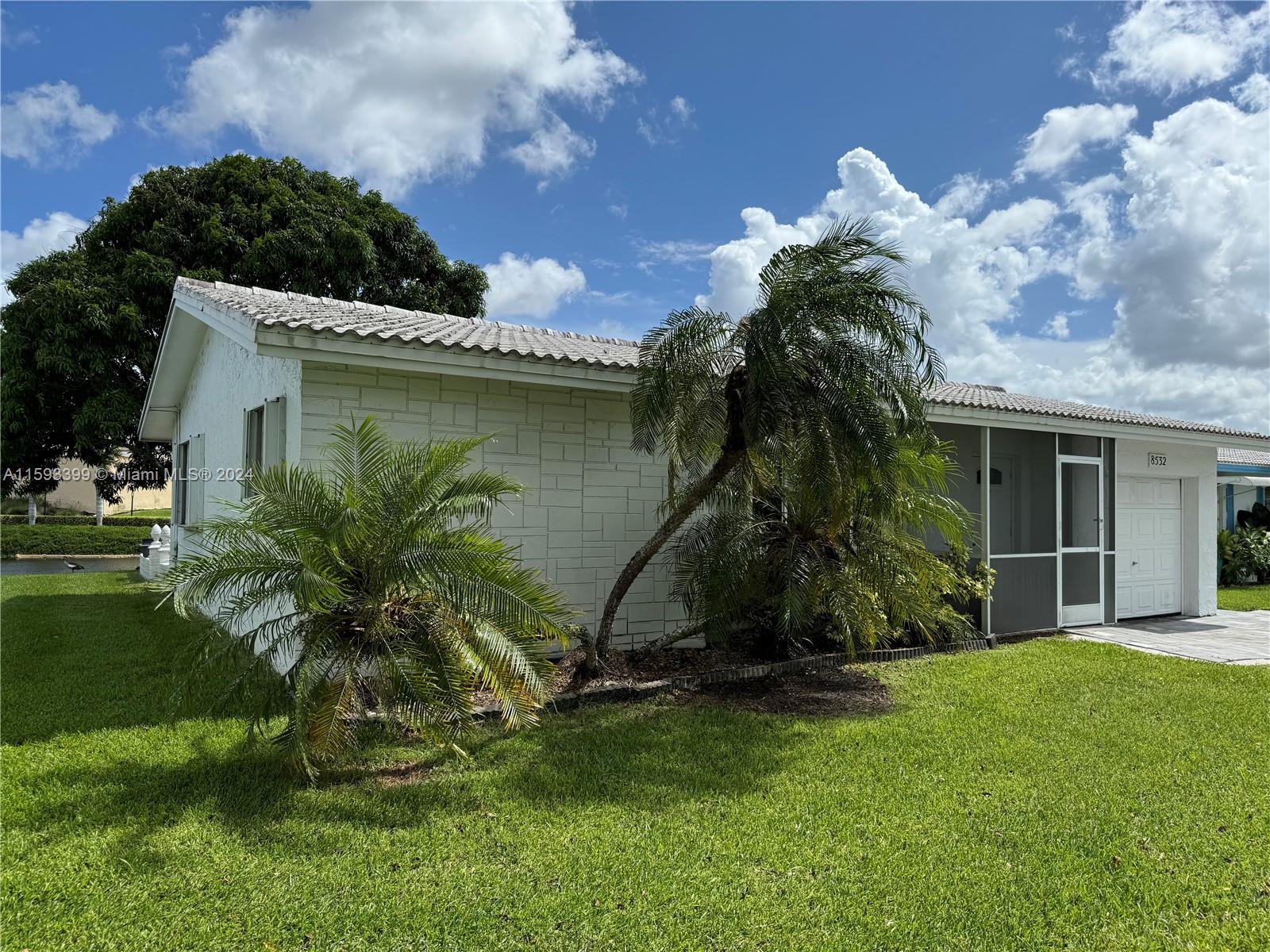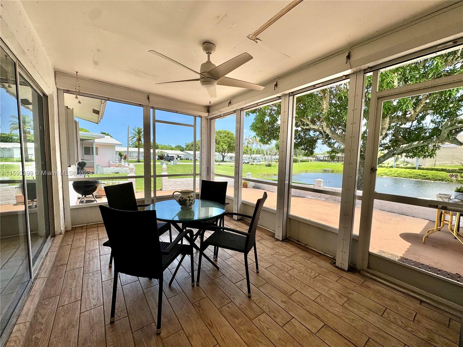Lauderdale West home with peaceful lake view. Sought-after “Lakeview” model. Split 2 bed, 2 bath plan.1 car garage with new paver driveway for 2 cars. Two living areas plus large screen porch & patio for entertaining. Updated kitchen with bar seating, stainless-steel appliances & recessed lighting. Walk-in closets. Full set of accordian hurricane shutters. Mango tree. Very short distance to clubhouse. HOA responsible for roof - will be replaced soon. A/C 2021, Driveway & Water Heater 2023. Prestigious 55+ community. Monthly maintenance includes cable & WiFi, repair/replace roof, lawn service, exterior painting, courtesy bus, fitness center, tennis, 2 pools, sauna, ping pong, billards & much more. Located near medical centers, shopping, restaurants, 20 min to beaches, airport, cruise ships.