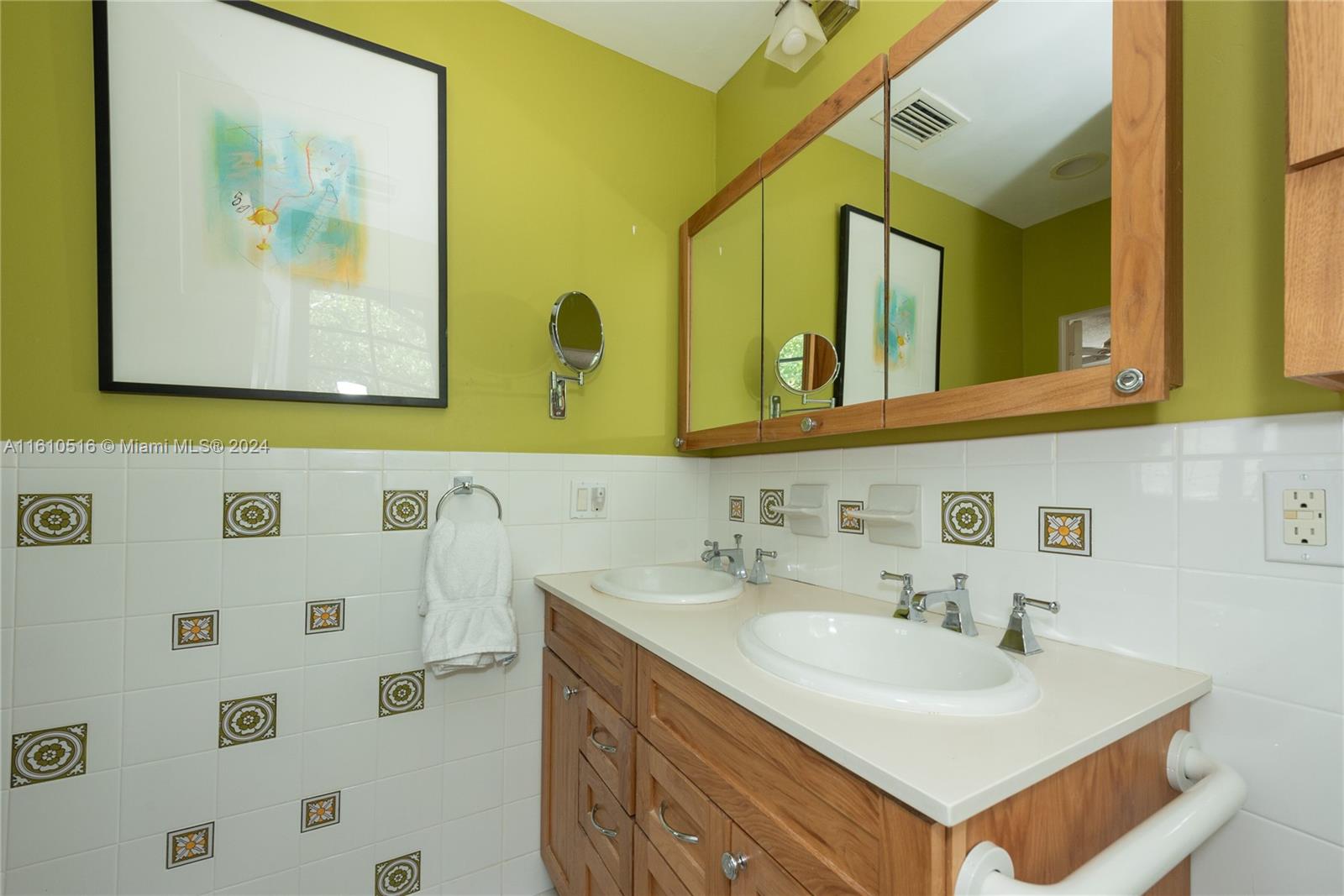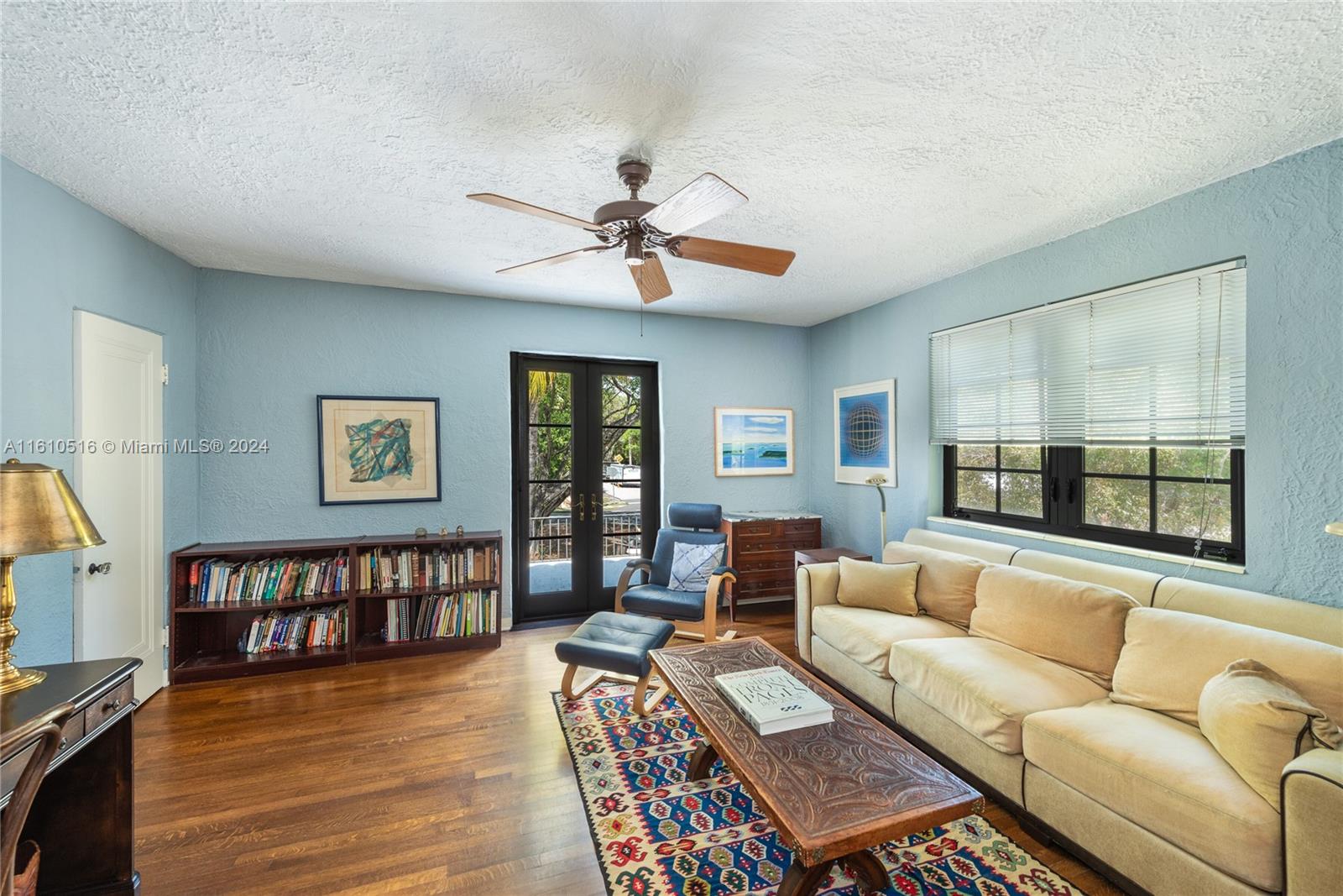 This 1927 home is a Mediterranean Revival home with approx. 2,756 adj. sq. ft. You enter a foyer that leads to a large living room with a fireplace and exposed wood beams on the ceiling. From the living room, is a beautiful dining room, that leads into the kitchen with an eat-in area. The kitchen has been updated to a country style, with a gas stove, 2 refrigerators, and a washer/dryer enclosed in the cabinets. Next is an office with a closet and half bath. Upstairs are four nicely sized bedrooms all with hardwood floors. There are two baths and the closets are very generously sized and updated. Impact windows and hurricane panels. The roof is from 2010. The house is on a 5,000 sq. ft. lot with a 2-car garage and on public sewer, within walking distance to DT Coral Gables.