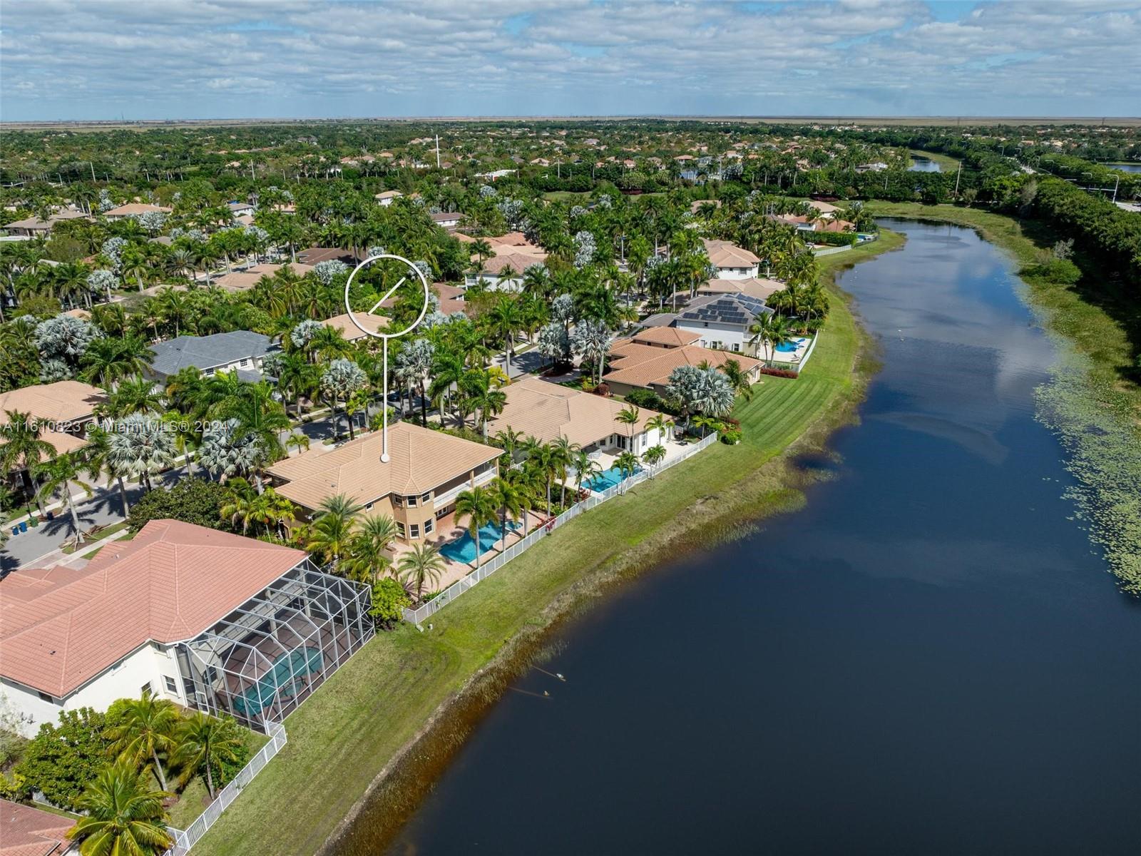 Highly sought after Sanibel model in Weston Hills Country Club. This spacious home boasts 5,365sf of living space on a 15,453sf waterfront lot. With 5 bedrooms, 5.5 bathrooms, plus an office/bonus room with wet bar/loft, this property offers ample space for comfortable living. The home features a 3-car garage, separate in-law suite with an independent entrance, and Accordian shutters for added convenience and security. The backyard is perfect for entertaining, w/ a newly renovated salt water heated pool, summer kitchen & spacious outdoor area. Inside, you'll find Saturnia marble on the 1st floor, custom moldings, & millwork throughout, adding a touch of elegance to the space. The open kitchen is equipped with granite countertops, walk-in pantry & all the top appliances.