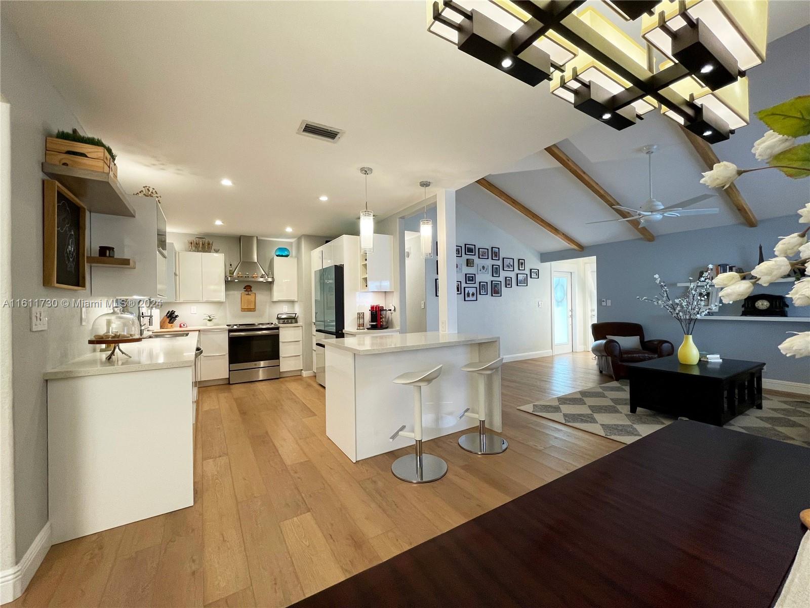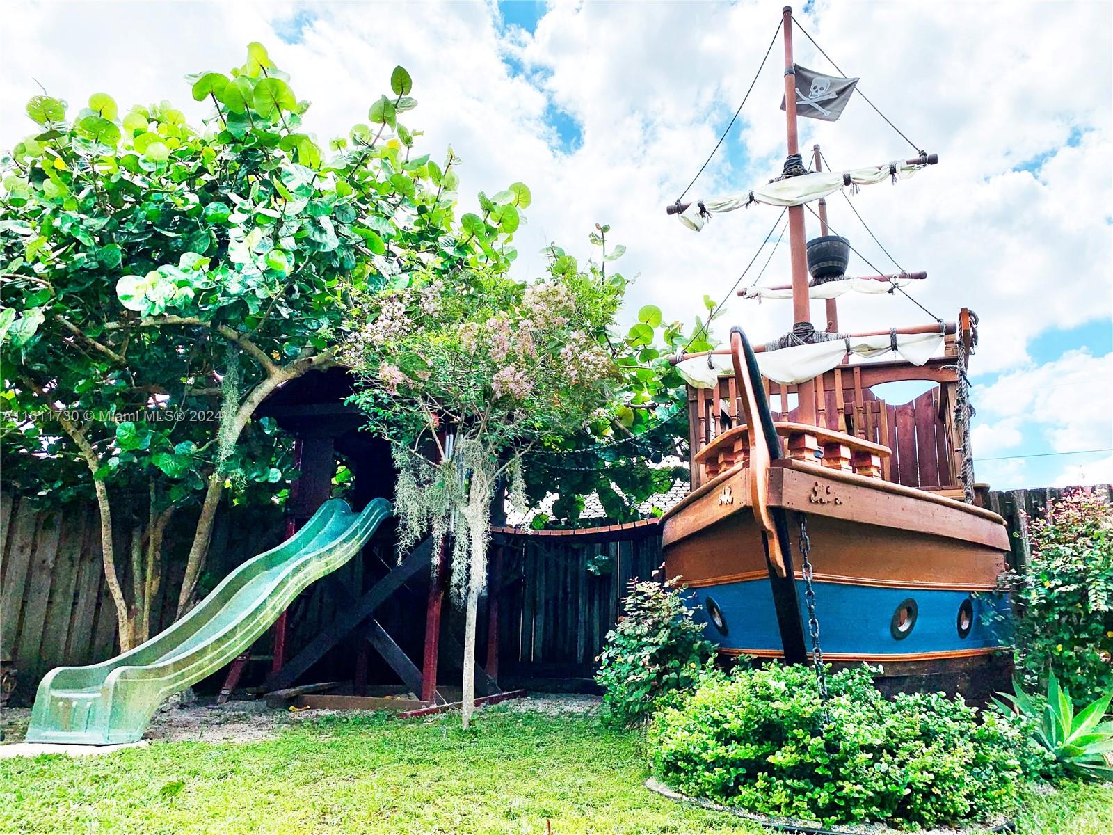 Beautifully updated home on quiet street. Friendly community. Meticulously maintained luxurious space. High vaulted ceilings/cedar beams. Fully renovated kitchen:state-of-the-art appliances, quartz countertops, & abundant storage space. Family room:built-in fireplace w/ custom shelves. Frosted glass doors throughout home allow natural light to flow across spaces. Master bathroom:spa-like retreat w/ vaulted ceilings & dual shower. New VOC-free flooring. NEW water heater. Upgraded AC w/ Nest thermostat. Backyard:oasis w/ canopy-covered deck & small pergola. Discover a world of fun & imagination w/ custom-built pirate ship: 16 Ft. mast, hanging bridge leading to a fort w/ slide & sandbox. Don't miss the chance to make this home yours & experience the epitome of modern comfort and style!