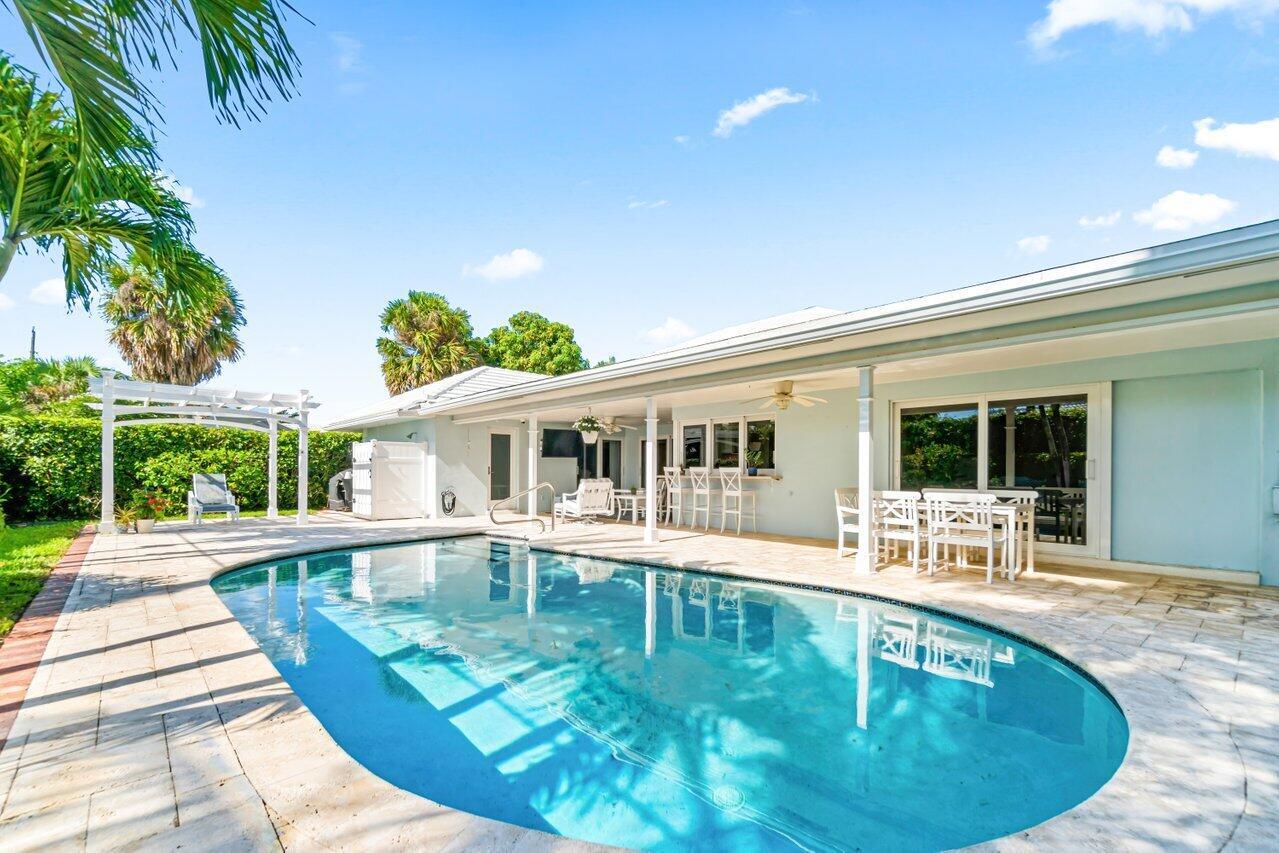 Welcome to 1162 Walnut Terrace, a charming and elegant home nestled in the highly desirable Camino Gardens. This 3-bedroom, 2-bathroom residence spans 3,213 sq. ft. and features a beautiful pool. As you enter, you're welcomed by the warmth of wood floors throughout. The open-concept living area exudes an inviting atmosphere, seamlessly flowing into the covered outdoor patio space. Here, you can lounge in the outdoor living are or relax in the Florida sunshine by your private pool. The kitchen is a chef's delight, boasting quartz countertops, stainless steel appliances, and ample cabinetry, ensuring both functionality and style. Impact windows and doors provide peace of mind and safety, while a separate laundry/mud room adds convenience. Location is stellar,
