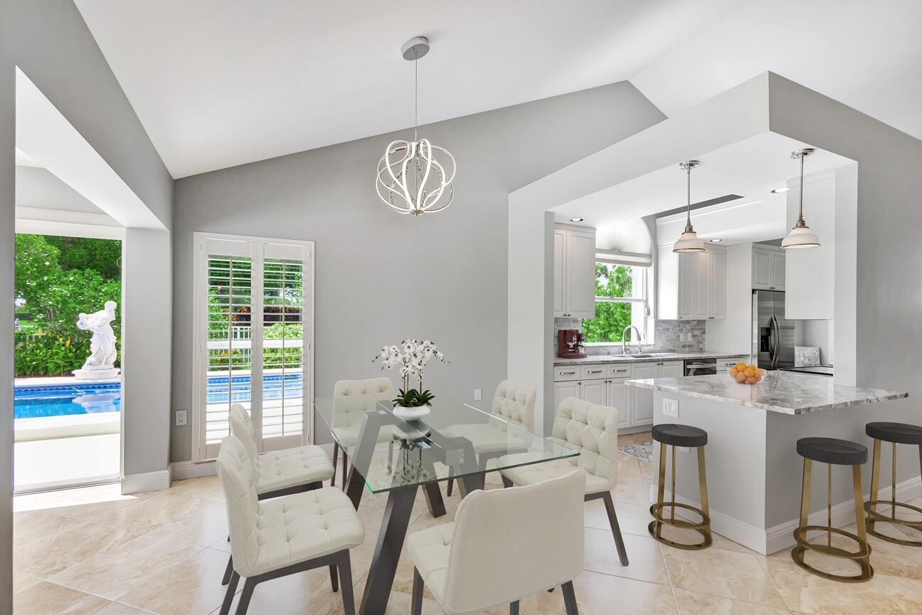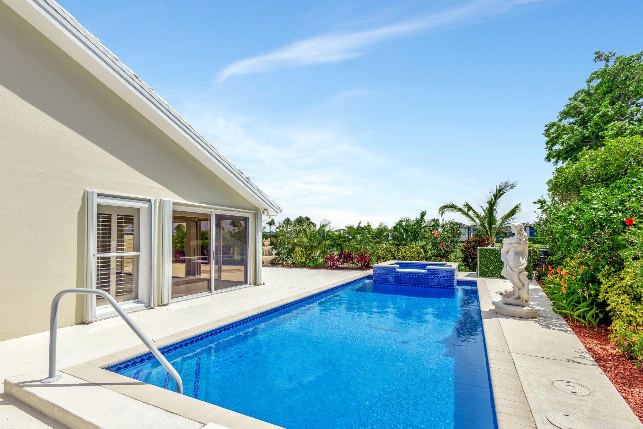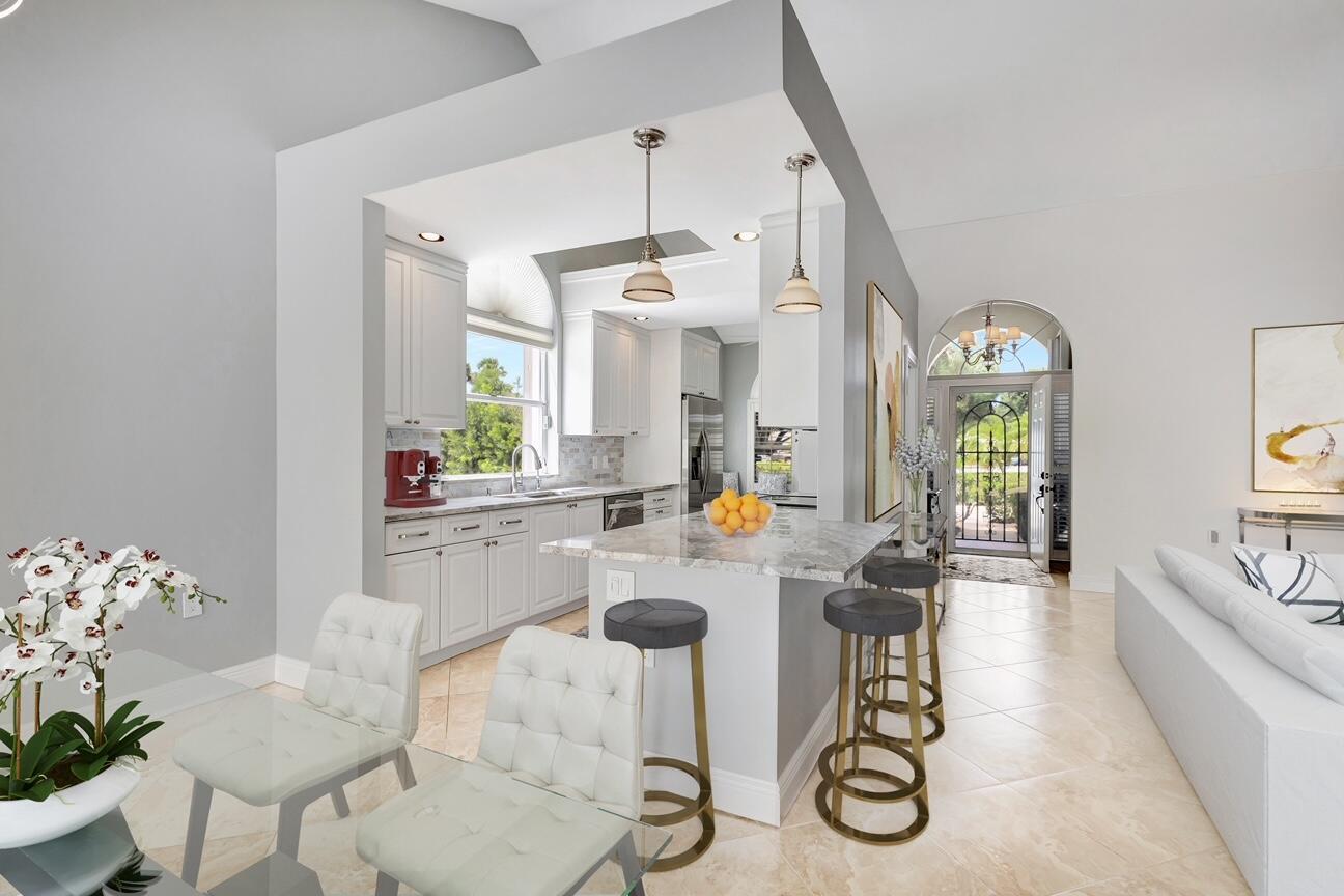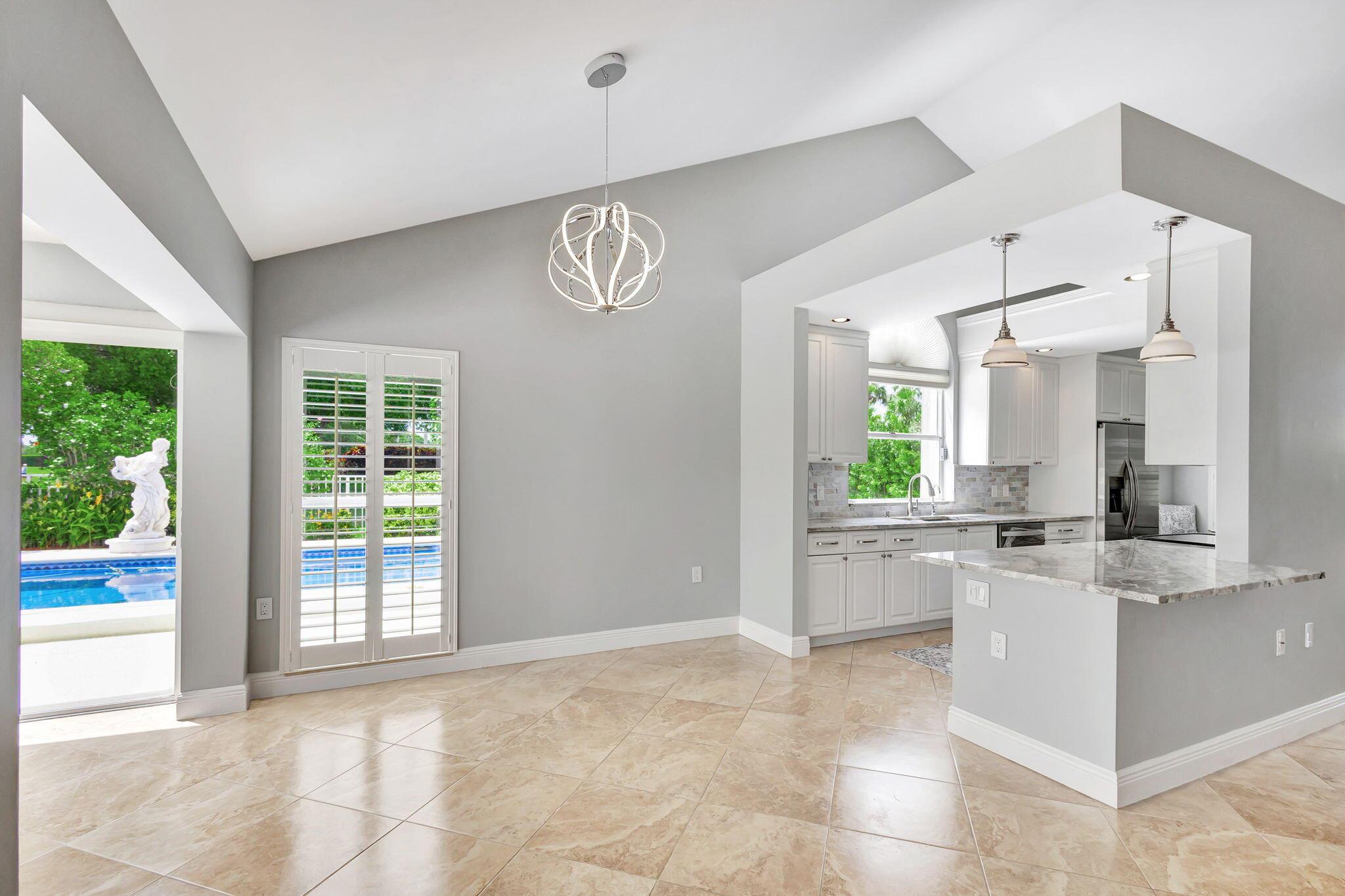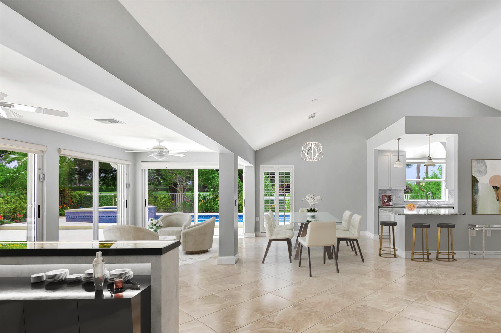 Masterfully designed, this exquisite Bear Island pool home was extensively renovated and meticulously maintained with impeccable craftsmanship throughout every detail. Privately nestled on oversized corner lot (complete privacy away from others), located on the 11th fairway, with sweeping views of The Bear Lakes Country Club Golf Course, this incredible residence is beautifully appointed with new interior paint, smooth ceilings, Plantation shutters, tropical lush landscaping, and resort-style pool/spa with custom finishes to create a living experience that embodies both casual entertaining and modern luxuries for today's contemporary lifestyle. Impressive upon entry, this inviting home is awash with sunlight and natural hues, elegant foyer, vaulted ceilings, stunning