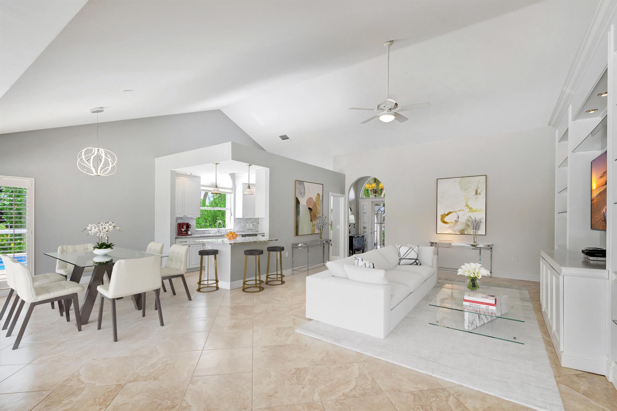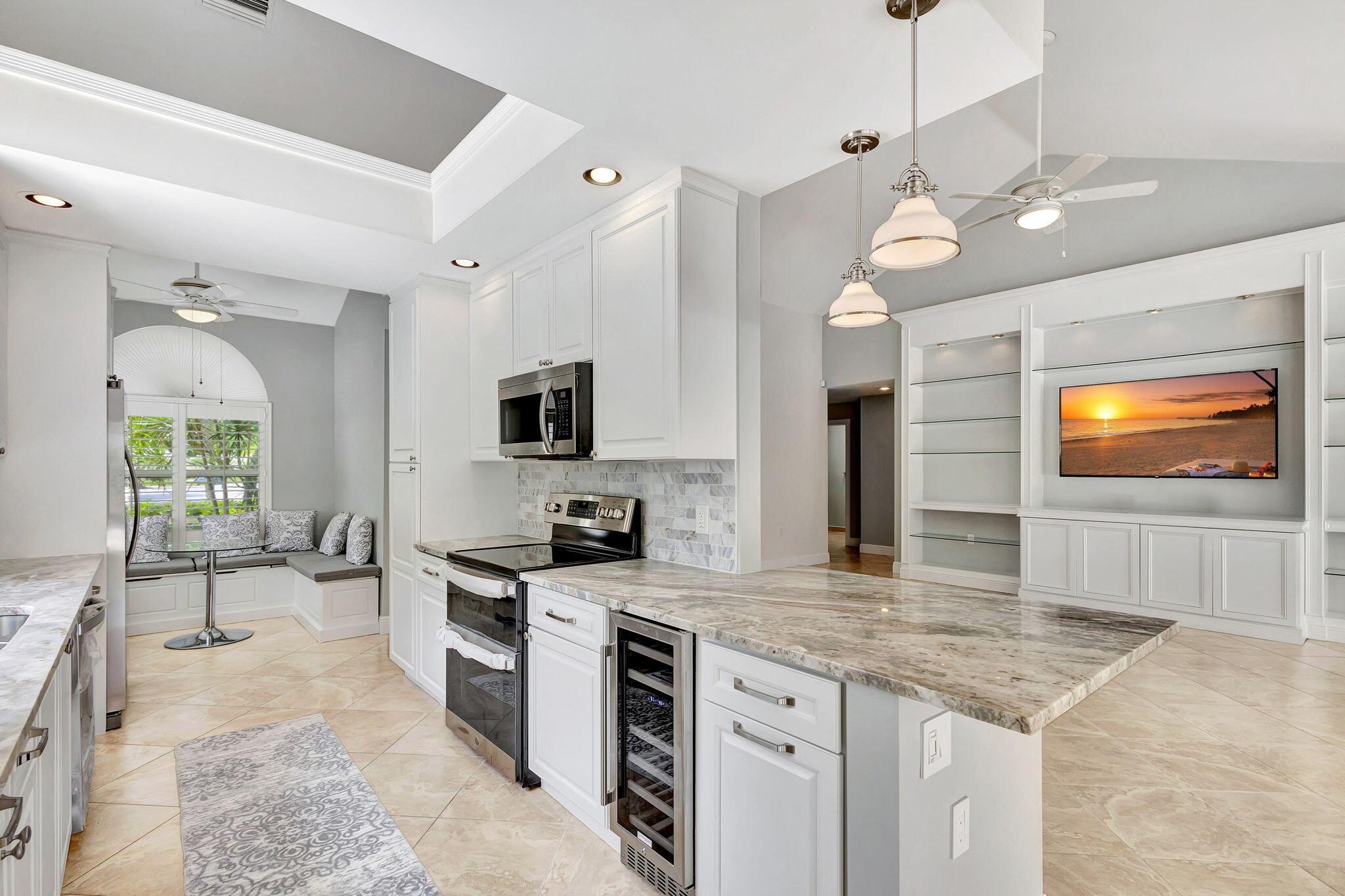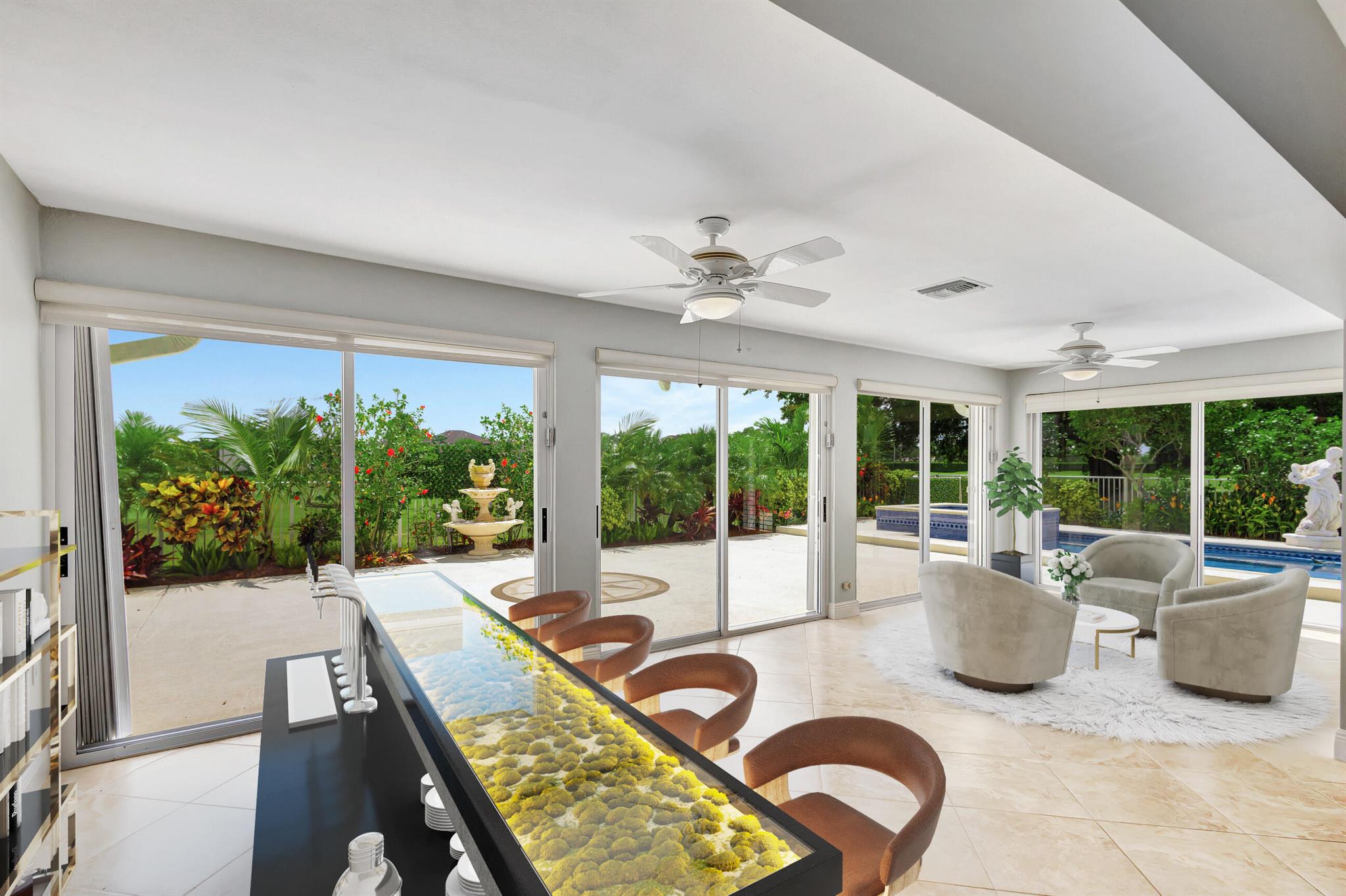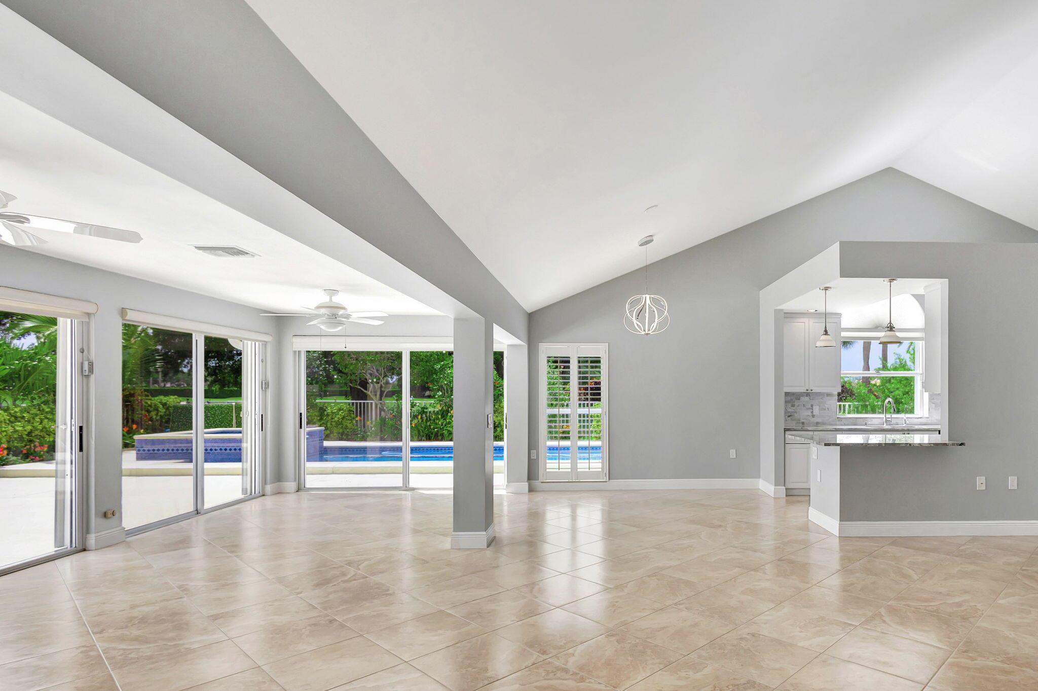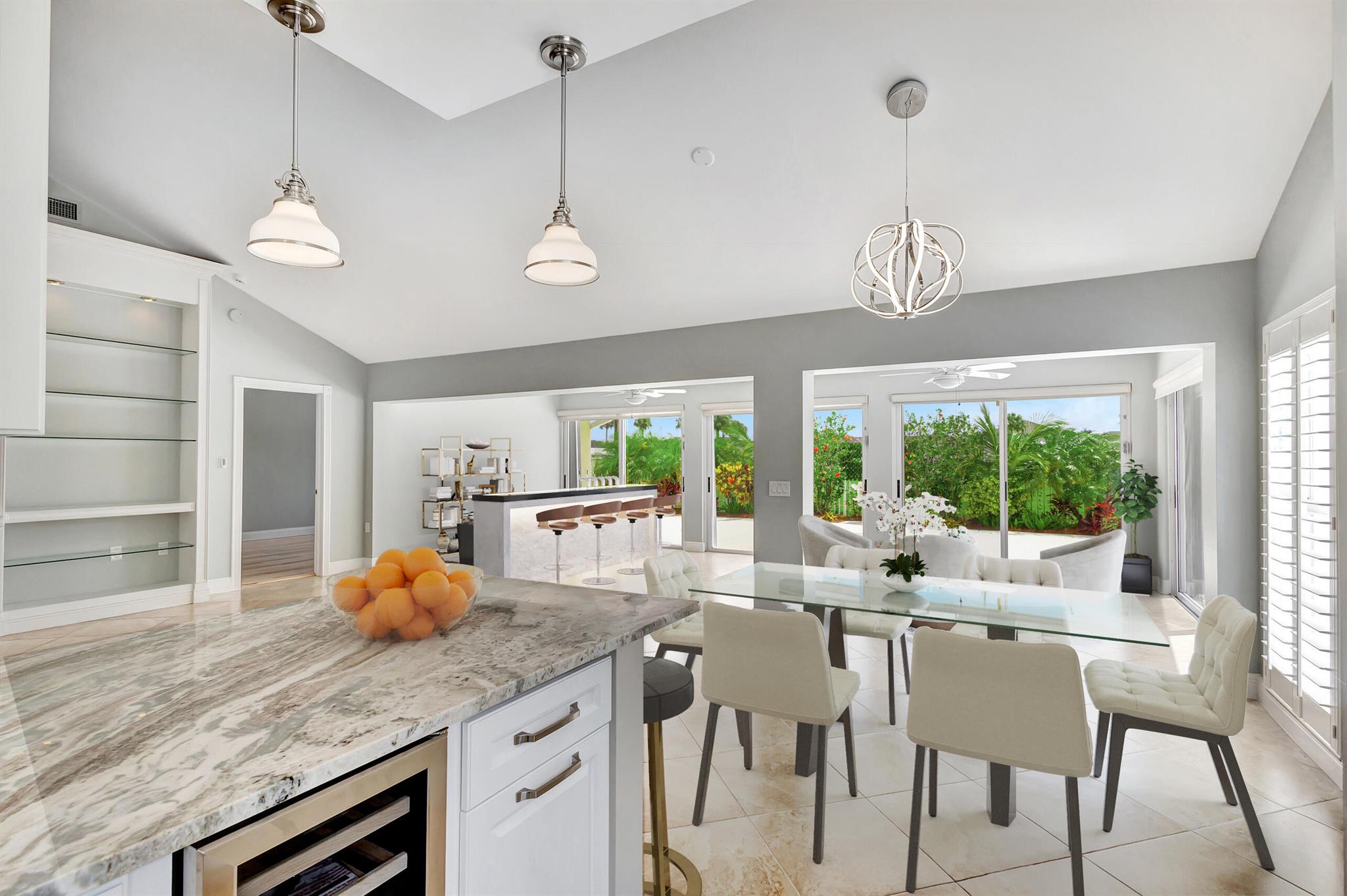 Masterfully designed, this exquisite Bear Island pool home was extensively renovated and meticulously maintained with impeccable craftsmanship throughout every detail. Privately nestled on oversized corner lot (complete privacy away from others), located on the 11th fairway, with sweeping views of The Bear Lakes Country Club Golf Course, this incredible residence is beautifully appointed with new interior paint, smooth ceilings, Plantation shutters, tropical lush landscaping, and resort-style pool/spa with custom finishes to create a living experience that embodies both casual entertaining and modern luxuries for today's contemporary lifestyle. Impressive upon entry, this inviting home is awash with sunlight and natural hues, elegant foyer, vaulted ceilings, stunning