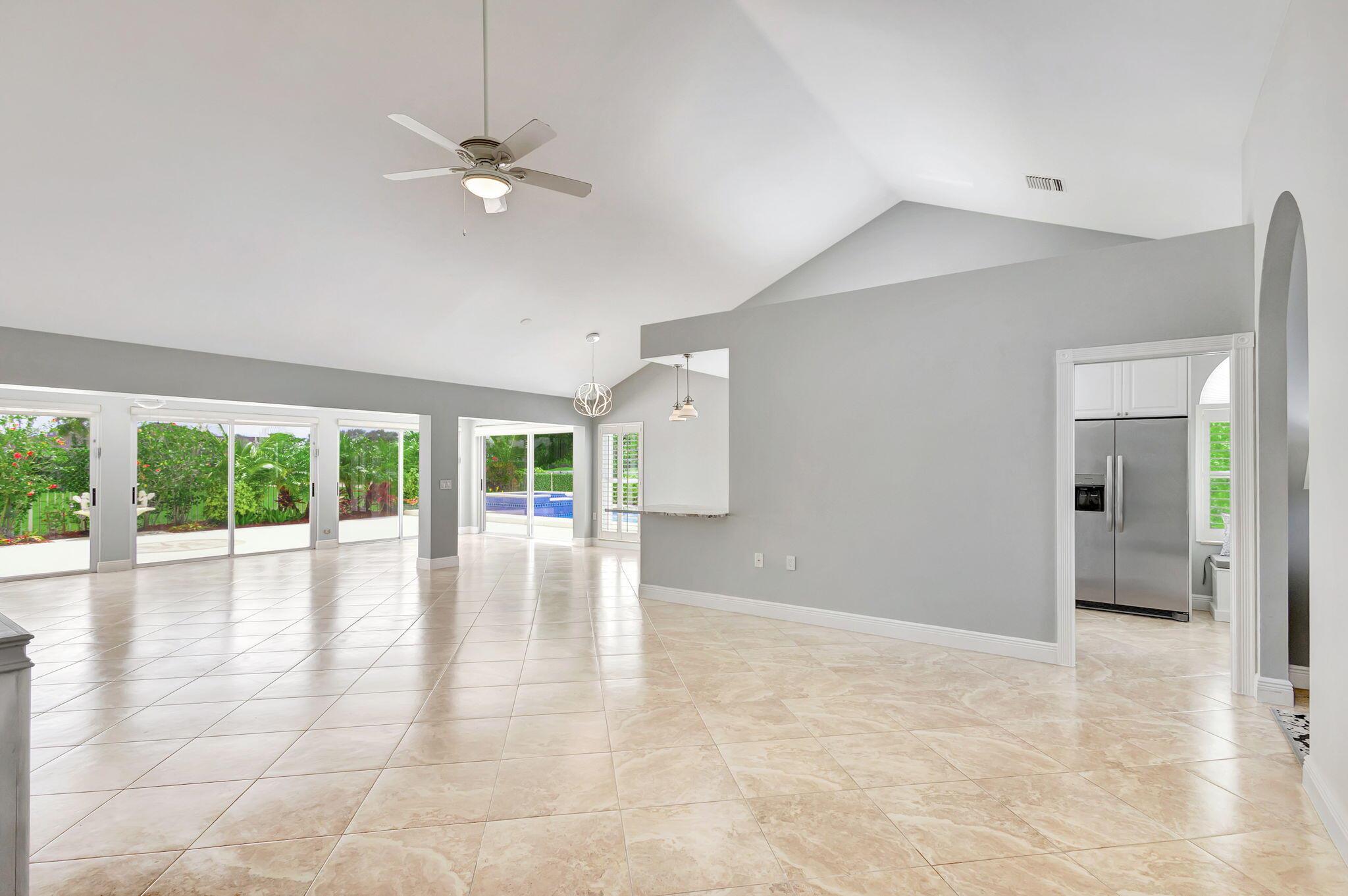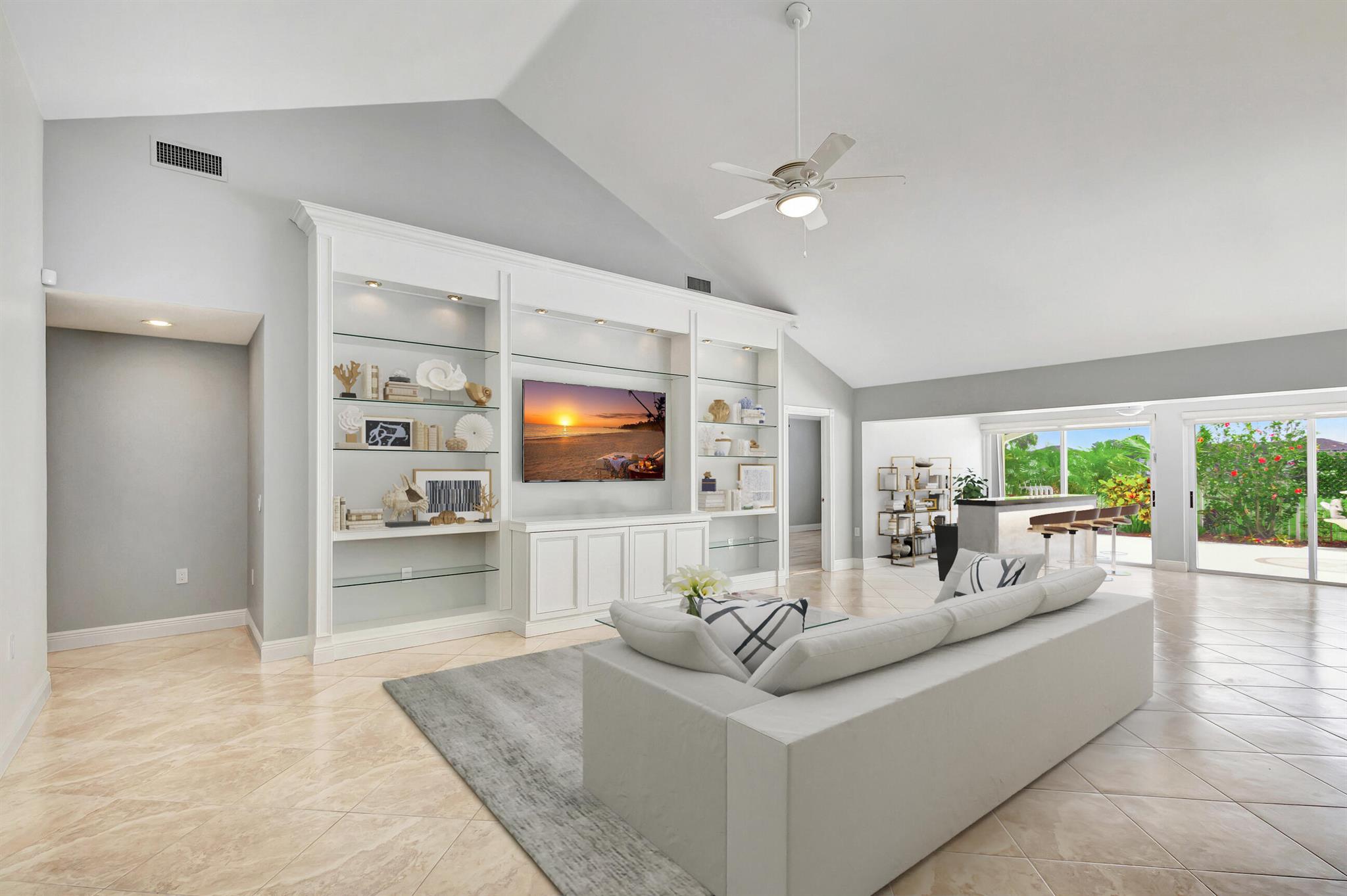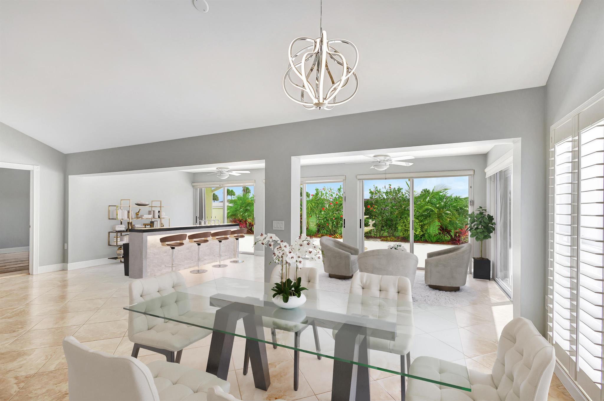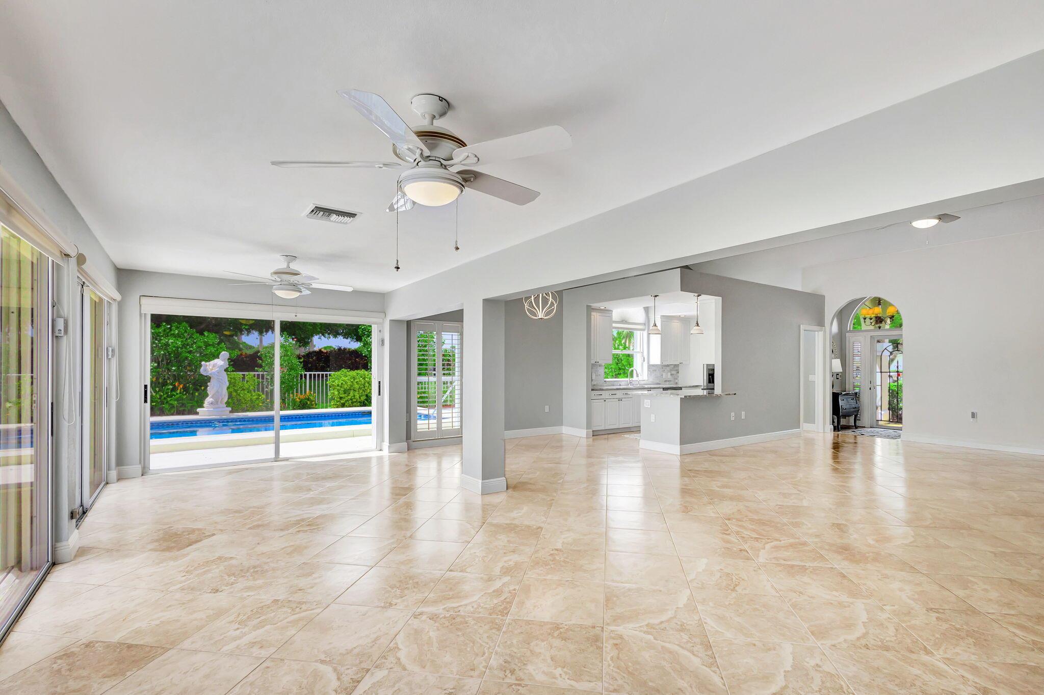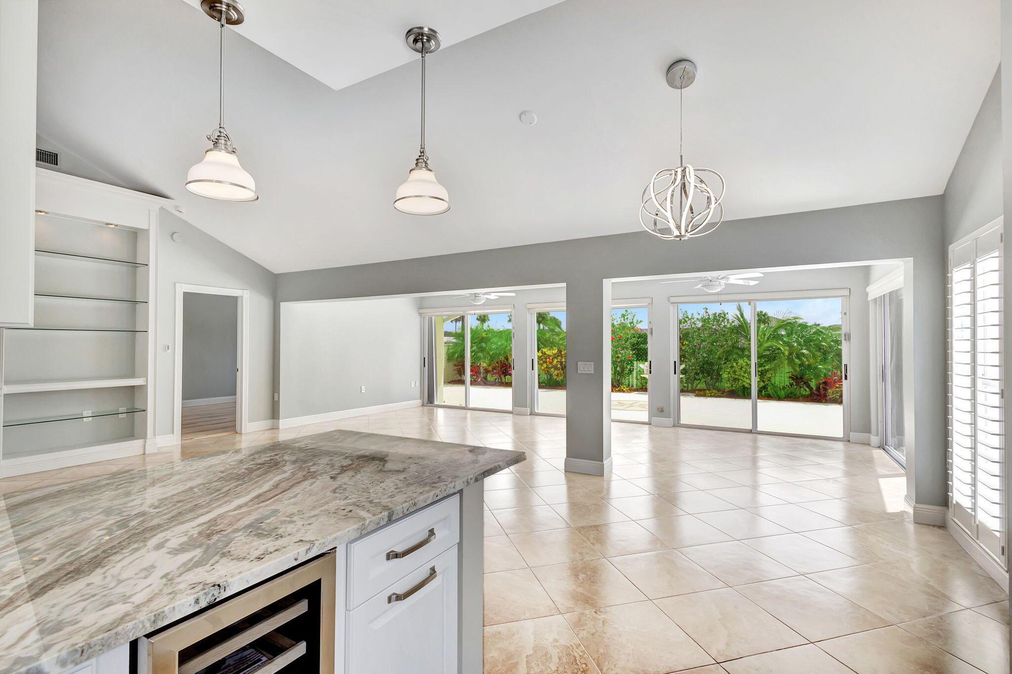 Masterfully designed, this exquisite Bear Island pool home was extensively renovated and meticulously maintained with impeccable craftsmanship throughout every detail. Privately nestled on oversized corner lot (complete privacy away from others), located on the 11th fairway, with sweeping views of The Bear Lakes Country Club Golf Course, this incredible residence is beautifully appointed with new interior paint, smooth ceilings, Plantation shutters, tropical lush landscaping, and resort-style pool/spa with custom finishes to create a living experience that embodies both casual entertaining and modern luxuries for today's contemporary lifestyle. Impressive upon entry, this inviting home is awash with sunlight and natural hues, elegant foyer, vaulted ceilings, stunning