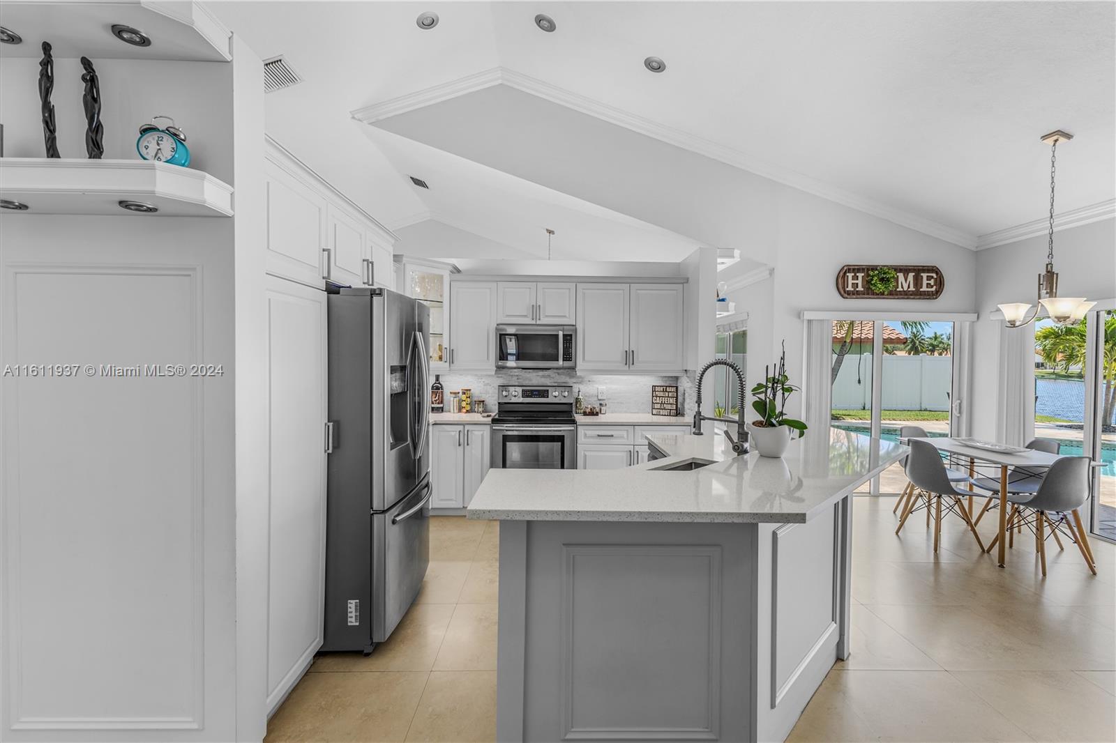 Discover your dream lakefront home in the highly sought-after Spring Valley! This exceptional 4-bedroom, 2-bathroom residence offers many upgrades, ensuring unparalleled comfort and convenience for your family. Enjoy the benefits of a newer roof and HVAC system installed in 2023, along with a beautifully upgraded kitchen featuring stainless steel appliances. The modernized bathrooms and laundry room add to the home's appeal. This private lakefront oasis, complete with a saltwater pool and a new pool pump, is perfect for leisurely swims and family fun. The outdoor kitchen is ideal for entertaining guests, while landscape lighting enhances the ambiance of the beautiful lake views. A 2-car garage, equipped with a new smart garage door opener, provides ample convenience. Turnkey, low HOA.
