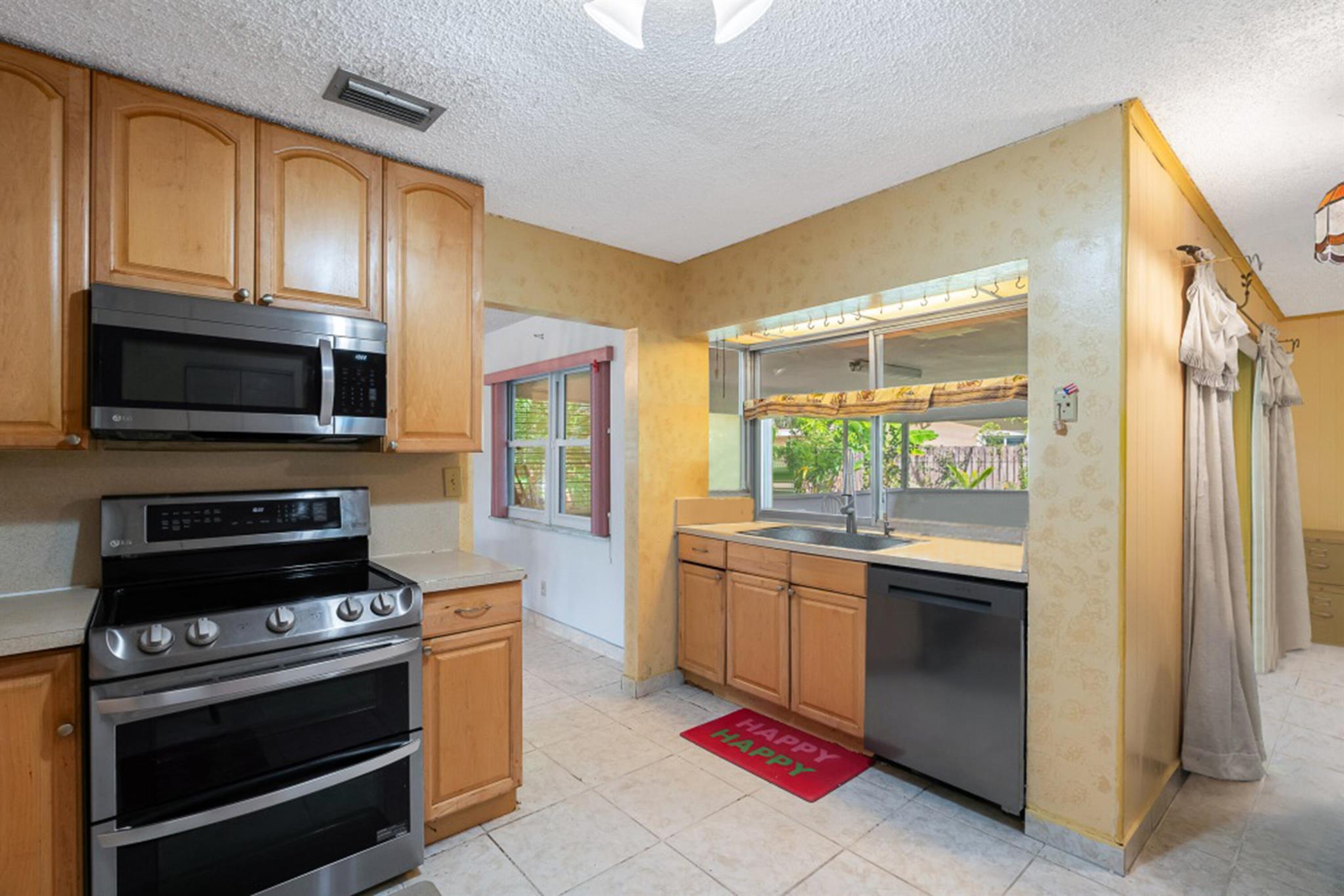 Enjoy No HOA in sought-after Coral Springs, FL! This CBS construction home offers 3 bedrooms, 2 bathrooms with a split floor plan, 2 living rooms, dining area & huge patio. Features include tile flooring throughout, an upgraded primary bathroom with double sinks, a modern full tile shower w/ jet multifunction system & a kitchen with LG stainless steel appliances. Outside, relax in a private backyard with banana, mango, plantain & avocado trees. 2023 tile roof, 2013 AC, impact windows, Eco Smart tankless water heater, & a massive U-shaped stamped concrete driveway complete this gem.