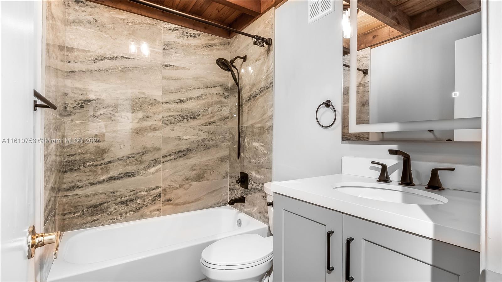 Completely Renovated Loft Style Townhome in a Very Pet Friendly Quiet Community - 2 Bedrooms / 2 Bathrooms / 2 Parking spaces & Fenced in Backyard - New Updated Kitchen / Wood Cabinets, Stainless-Steel Appliances, and Quartzsite Countertops - New Stackable Washer & Dryer - Luxury Vinyl Waterproof Flooring - Updated light fixtures throughout - Updated Bathrooms with Lighted mirrors - Vaulted Ceilings - Lots of Natual Lighting - Small Pool allowed in the backyard - No Pet Restrictions - Large Community Pool - Tennis Courts - Handball Courts - Dog Park - Roof (Approx 2010-2012) - A/C (2024) - Water Heater (2024) - (No Impact Windows or Shutters) - 10 Minutes to I95 - 5 Minutes to Turnpike - 20 Minutes to the Beach - Easy to Show and Ready for the New Owner