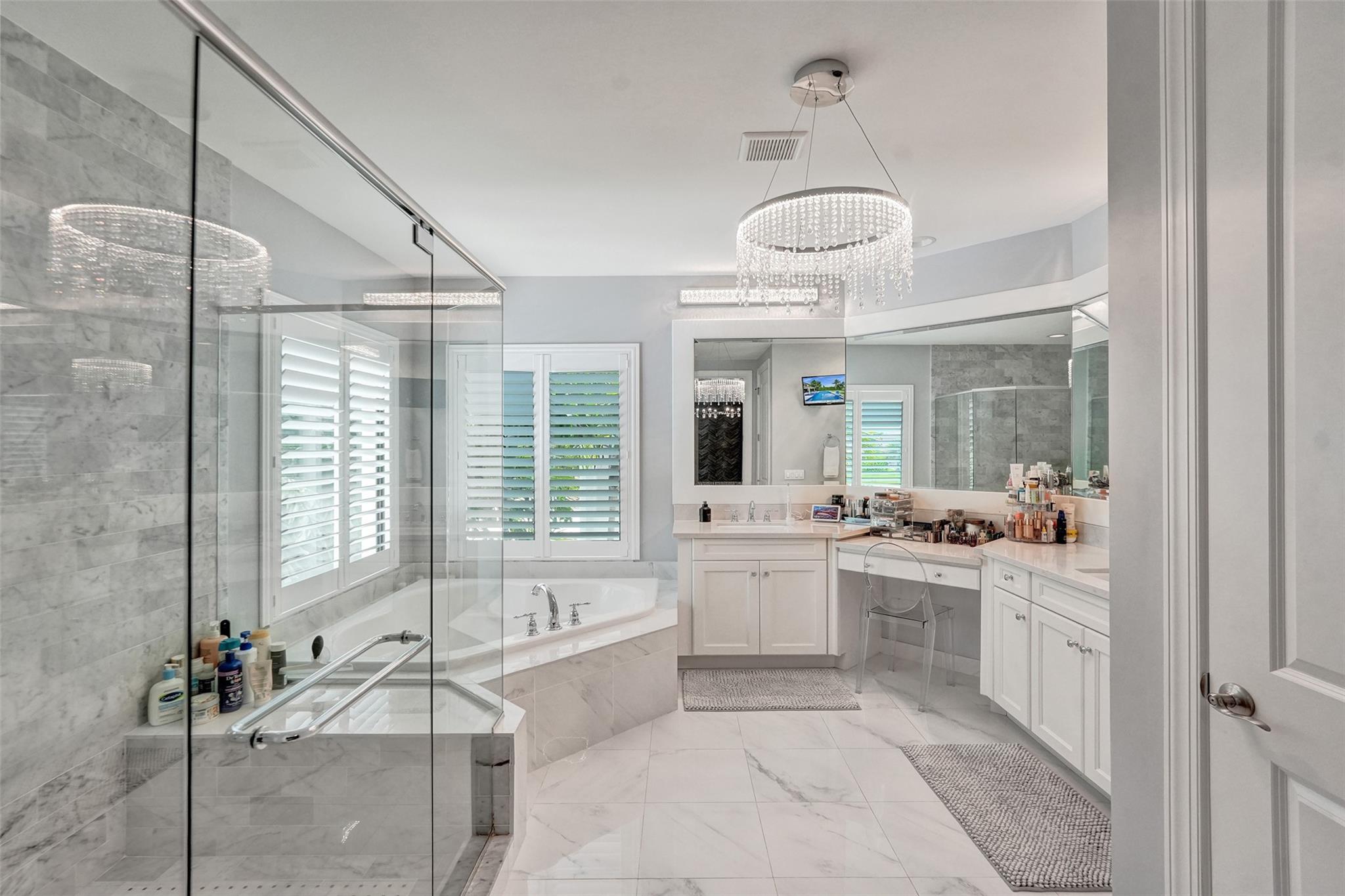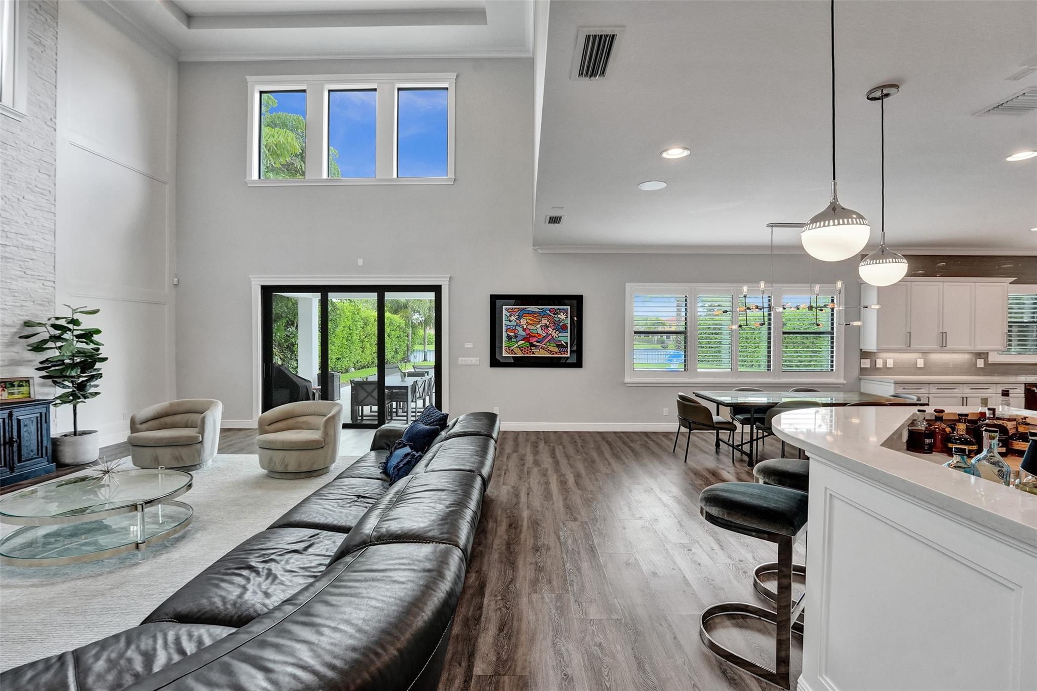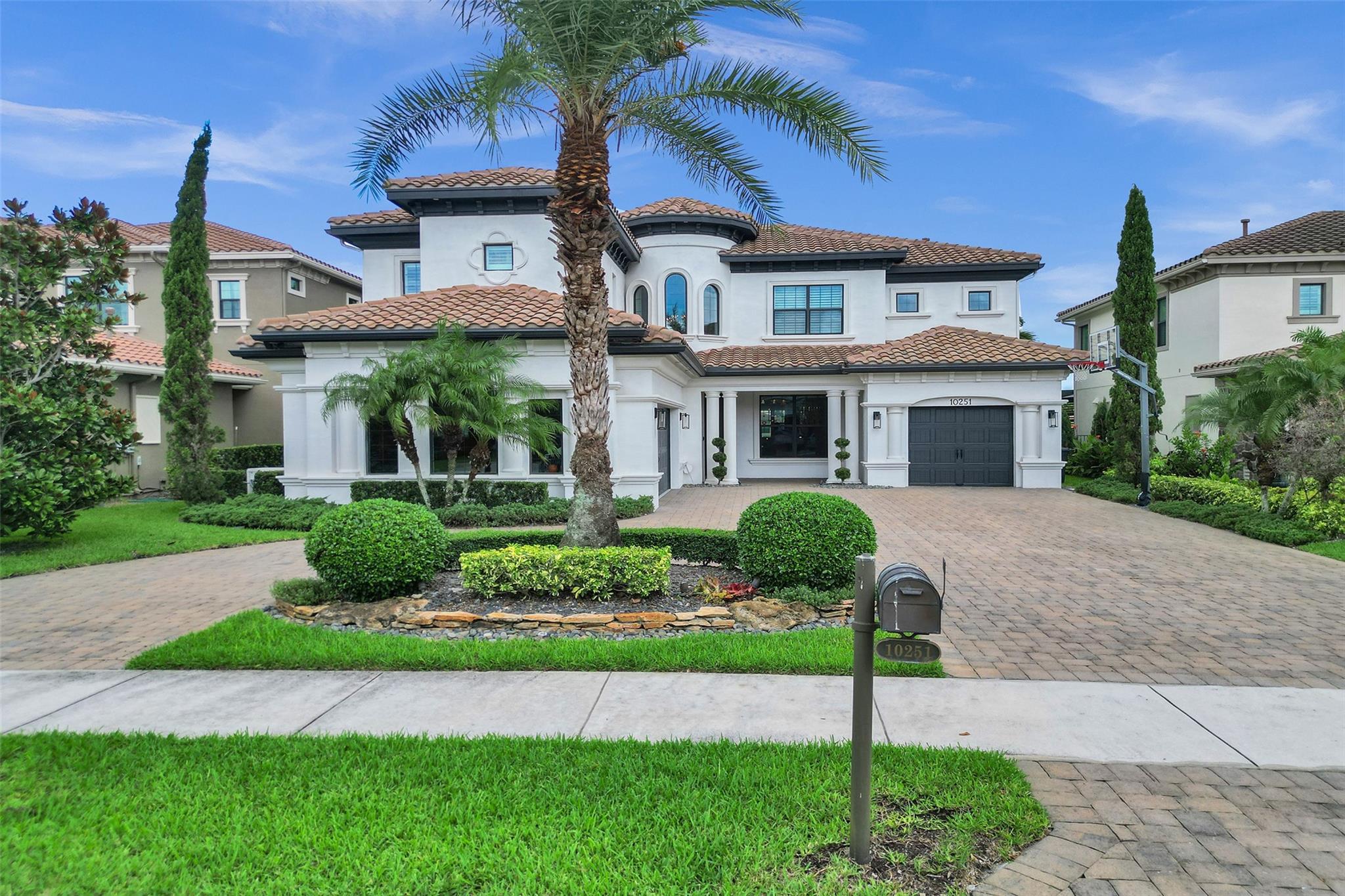 Stunning expanded lakefront home located on the most desired street in PGCC. Enter the two-story foyer to be greeted by a formal dining room and expanded great room perfect for entertaining. The open kitchen is a chef's dream with gas appliances, a large island, and a walk-in pantry. Designer finishes throughout include custom millwork, natural stone, and wallpaper. Head up the winding staircase and you'll find 4 bedrooms with en suite baths and designer-built closets. Outside is an expanded lanai overlooking a custom-built heated pool with hot tub. Additional features include a full house generator, a/c garage w/ 220-volt outlet to charge your electric vehicle, expanded driveway, beautiful landscaping, new up-stairs A/C unit, and much more. Come tour this beautiful home today!