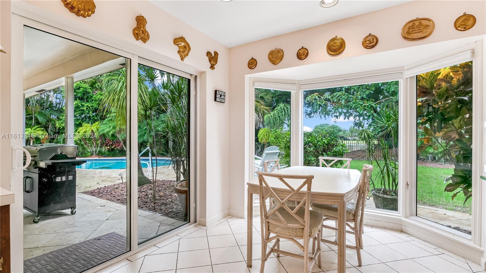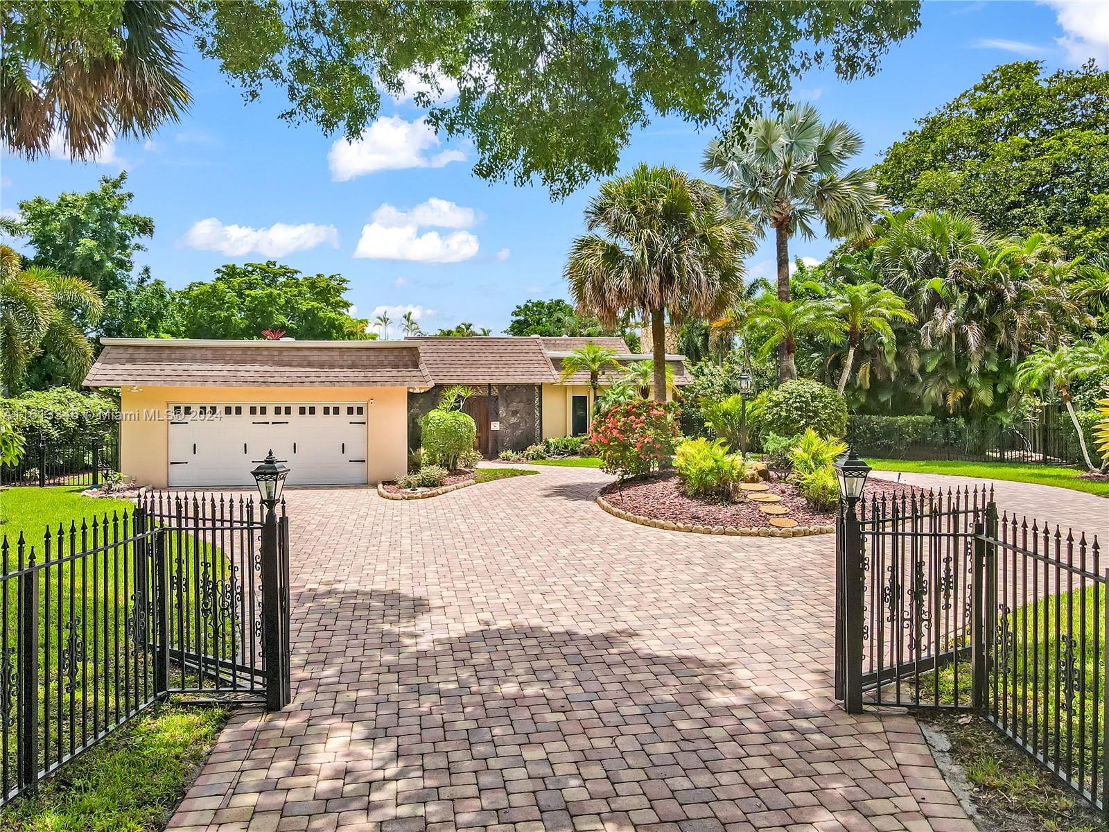 Because location is paramount when buying a home, stunning water views, & serene golf course scenery. Situated on an expansive, nearly 19,000-square-foot lot, this home features 4 bedrooms and 3 full baths, including two cabana baths with direct access to the pool. A newer roof with warranty, Impact windows, newer A/C units, & Jack and Jill bathrooms make this home convenient. Skylights fill the house with natural light. Enjoy breakfast with beautiful water views. Laundry room front- load washer, dryer, and sink. Park in the circular driveway and enjoy the privacy of your fenced front & backyards. An array of fruit trees, including avocado (2 trees), lemon, and banana, complete this incredible property. Agents, please take a look at the MLS attachments for a list of property updates.