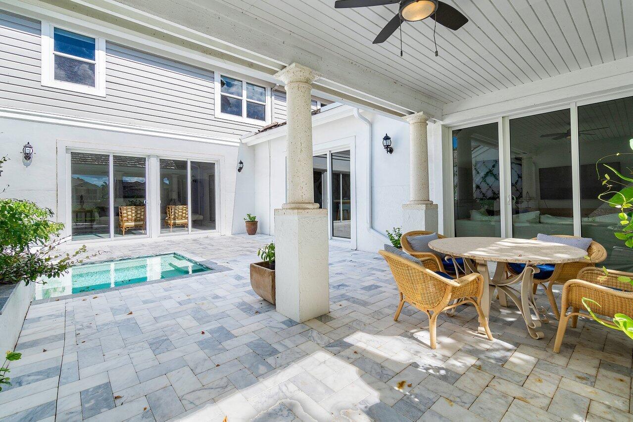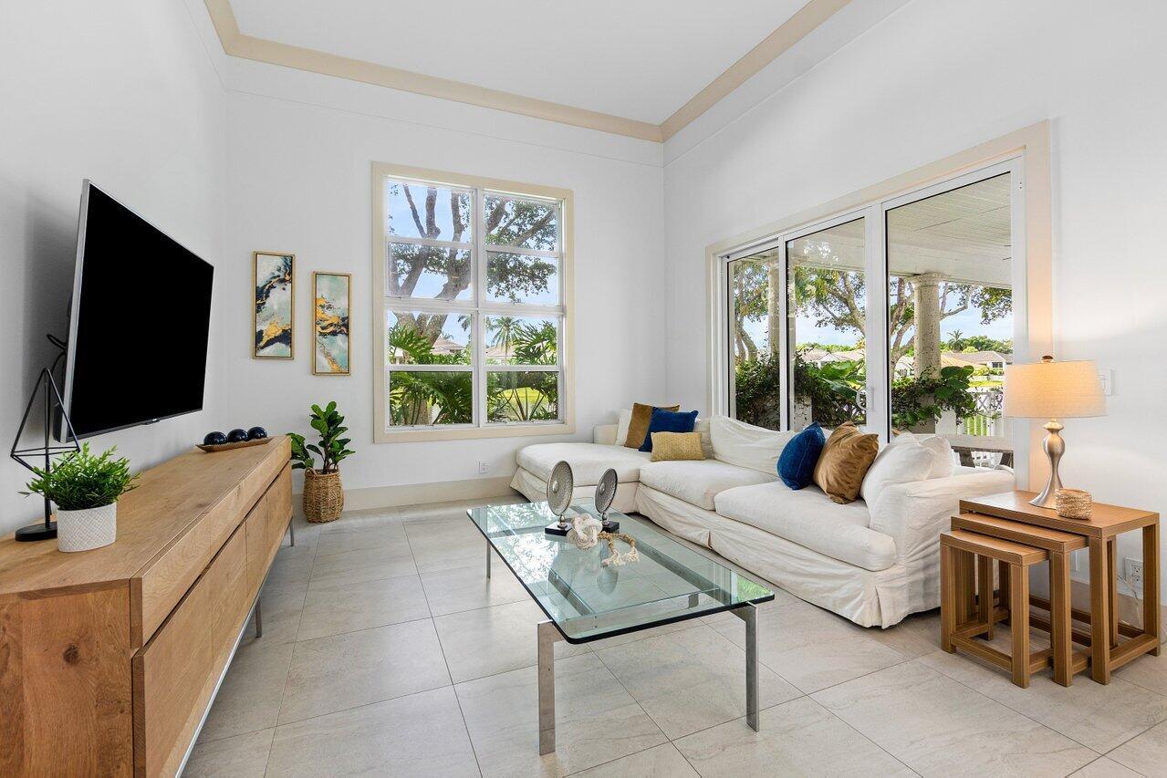Stunning townhome in highly sought-after Cambridge Park of Woodfield Country Club. Situated on beautiful lake views, this home exemplifies pride of ownership. Renovated and reimagined with contemporary decor, the kitchen has been redesigned with high-end European, high gloss cabinetry and natural wood accents, while featuring a island and high-end appliances. Complete Impact windows & doors. Immerse yourself in true South Florida indoor/outdoor living while relaxing in your private courtyard & covered patio. Spend your evenings escaping in your private courtyard plunge pool, all while gazing at your shimmering lake view. Home is equipped with two newer A/C units, a newer hot water heater, and washer /dryer. Remodeled bathrooms & hih-end oversized marble flooring. Roof was replaced in 2016