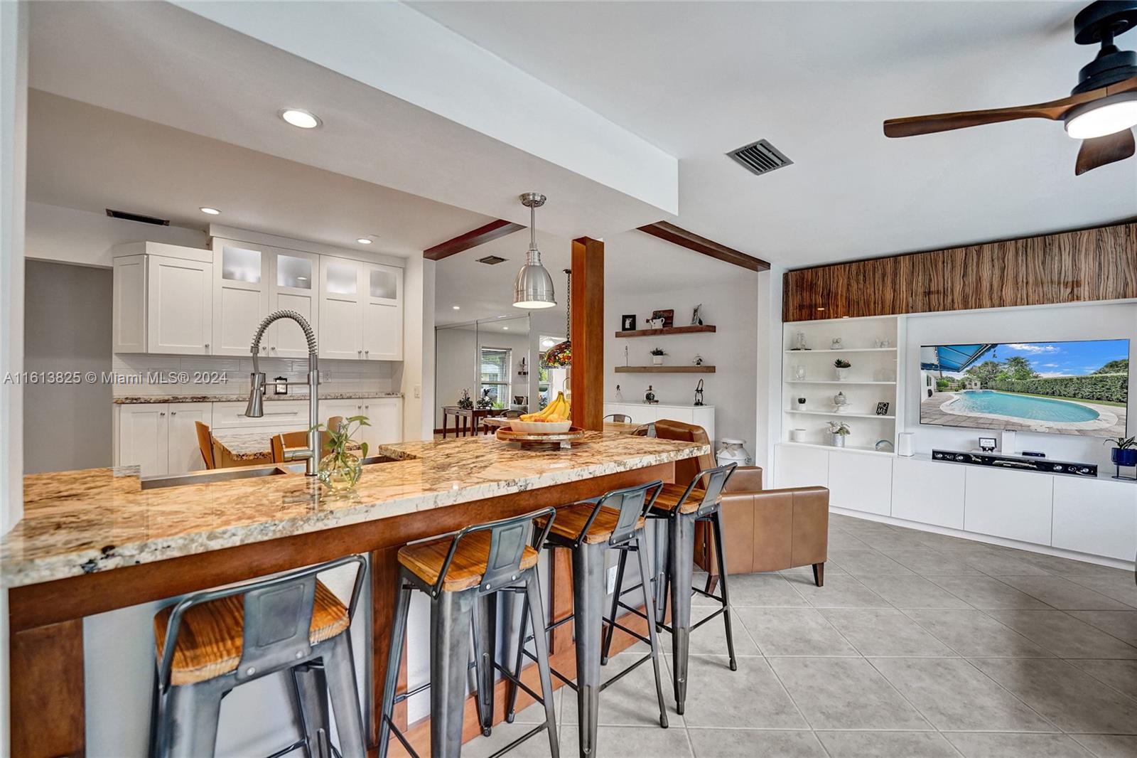 Discover this Beautifully Renovated 3Bedroom 2Bathroom Pool Home, nestled on a serene and perfectly manicured street in the coveted Pembroke Lakes neighborhood. Step inside and be greeted by a modern, updated interior featuring spacious living, dining, and family rooms, all seamlessly connected to a stunning open-concept custom kitchen adorned with exotic Brazilian granite countertops, gas e-range, and stainless steel appliances, a true chef's delight.The home boasts full impact windows and doors, as well as a new A/C system. Outside, your private backyard oasis awaits. Take a swim, relax under the covered patio, and enjoy the Florida sunshine. Perfect for hosting gatherings and creating lasting memories, this home is ready for you to call your own. No HOA & NO Flood Zone.