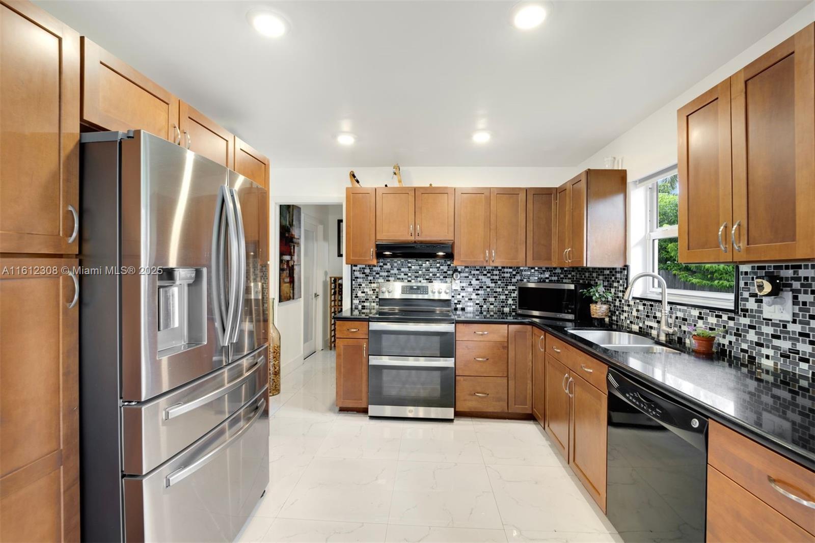 Split floorplan 4-bedroom home in Kendall with bright and open family living spaces and new roof, in turn-key condition and ready for move-in. The stylish and functional kitchen showcases custom wood cabinetry, sleek black marble counter-tops and stainless-steel appliances. The home is positioned beautifully on its lot, making it easy to enjoy the gated and green front and back yards. Permitted floor plans have been obtained for expanding the primary bedroom and adding a pool, for possible future use. With proximity to top-tier schools, less than a 5-minute drive to The Falls, and just steps from Briar Bay Park, this Kendall home is truly a gem.