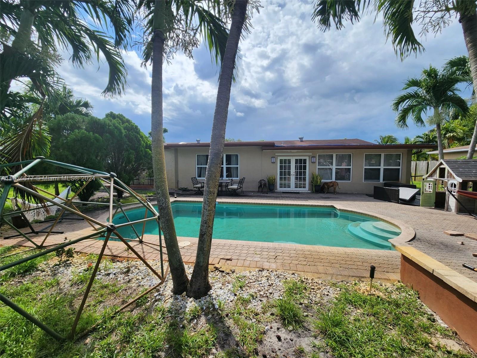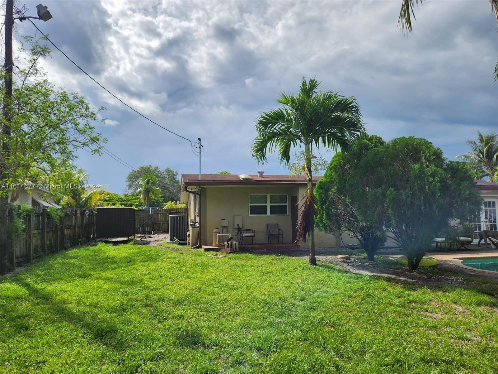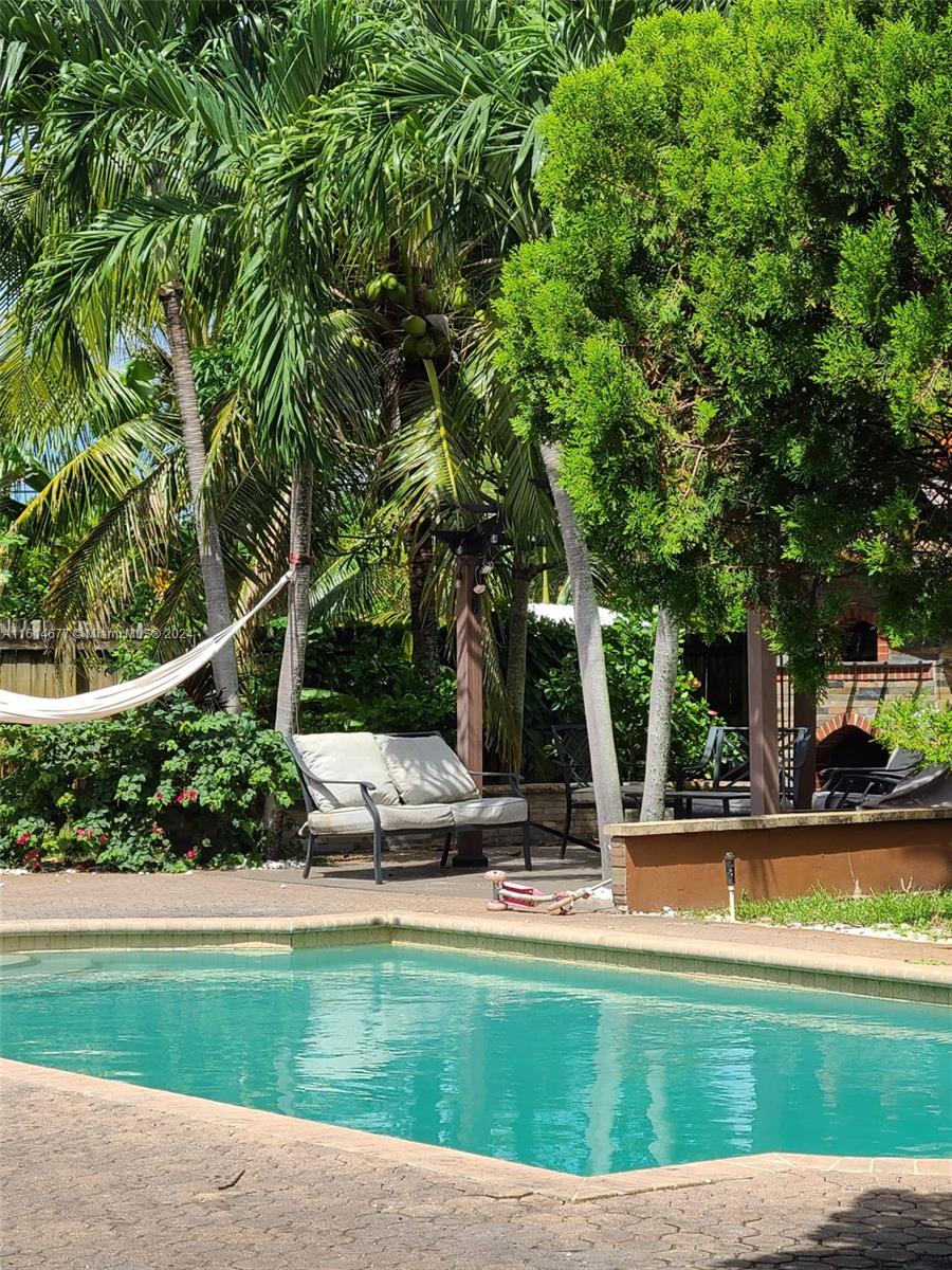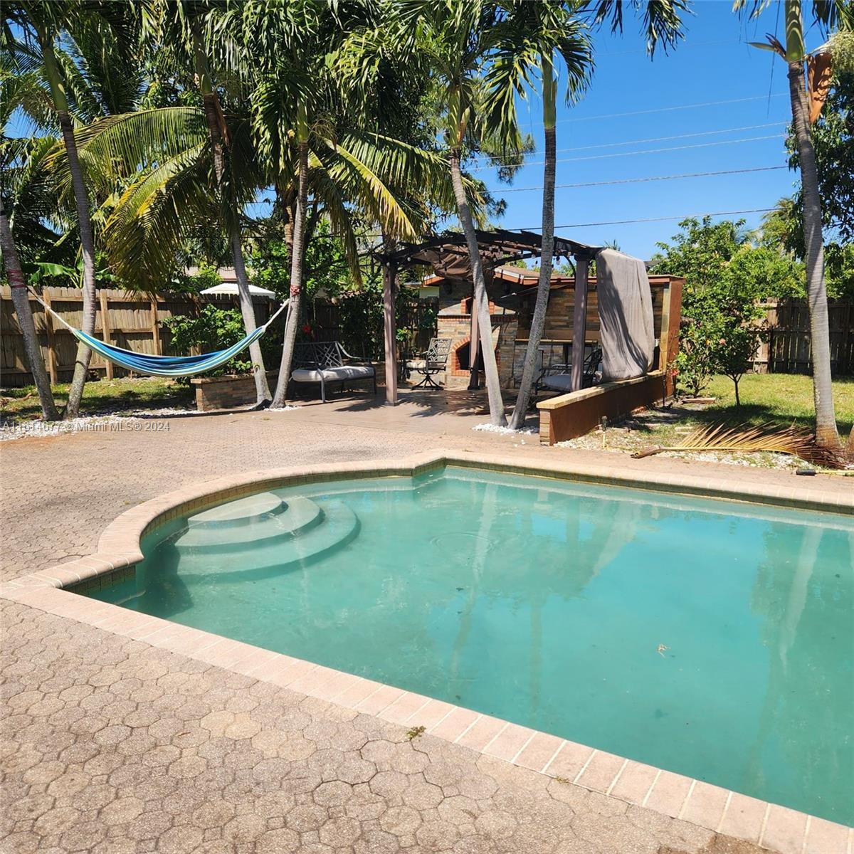 Spacious Pool Home with In-Law Suite - Perfect for Entertaining! This stunning 4/3 (or 3/2 + in-law suite) home offers everything you need for comfortable living and grand entertaining. The home boasts beautiful travertine marble floors throughout the living areas and newer laminate floors in the bedrooms. Unwind in the eat-in kitchen featuring granite countertops, adjacent to the office. The impact windows provide peace of mind and energy efficiency. Step outside to your private oasis! The fenced-in yard features a refreshing swimming pool and mature citrus trees like mango, coconut & moringa. The home sits on a .36 acre lot! The open floor plan and built-in outdoor kitchen with a firewood pizza oven make hosting unforgettable gatherings a breeze. A rare find in Melrose Park! NO HOA!!!
