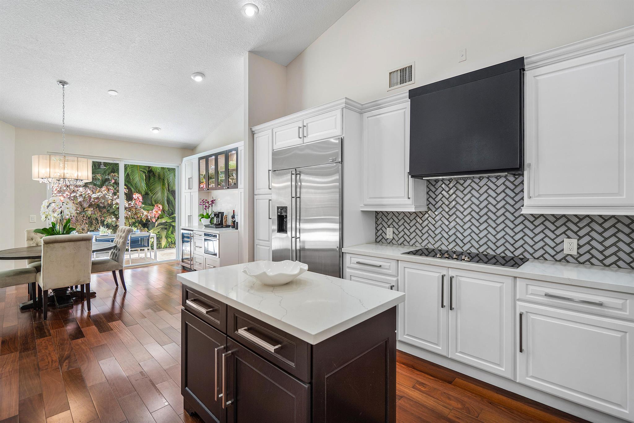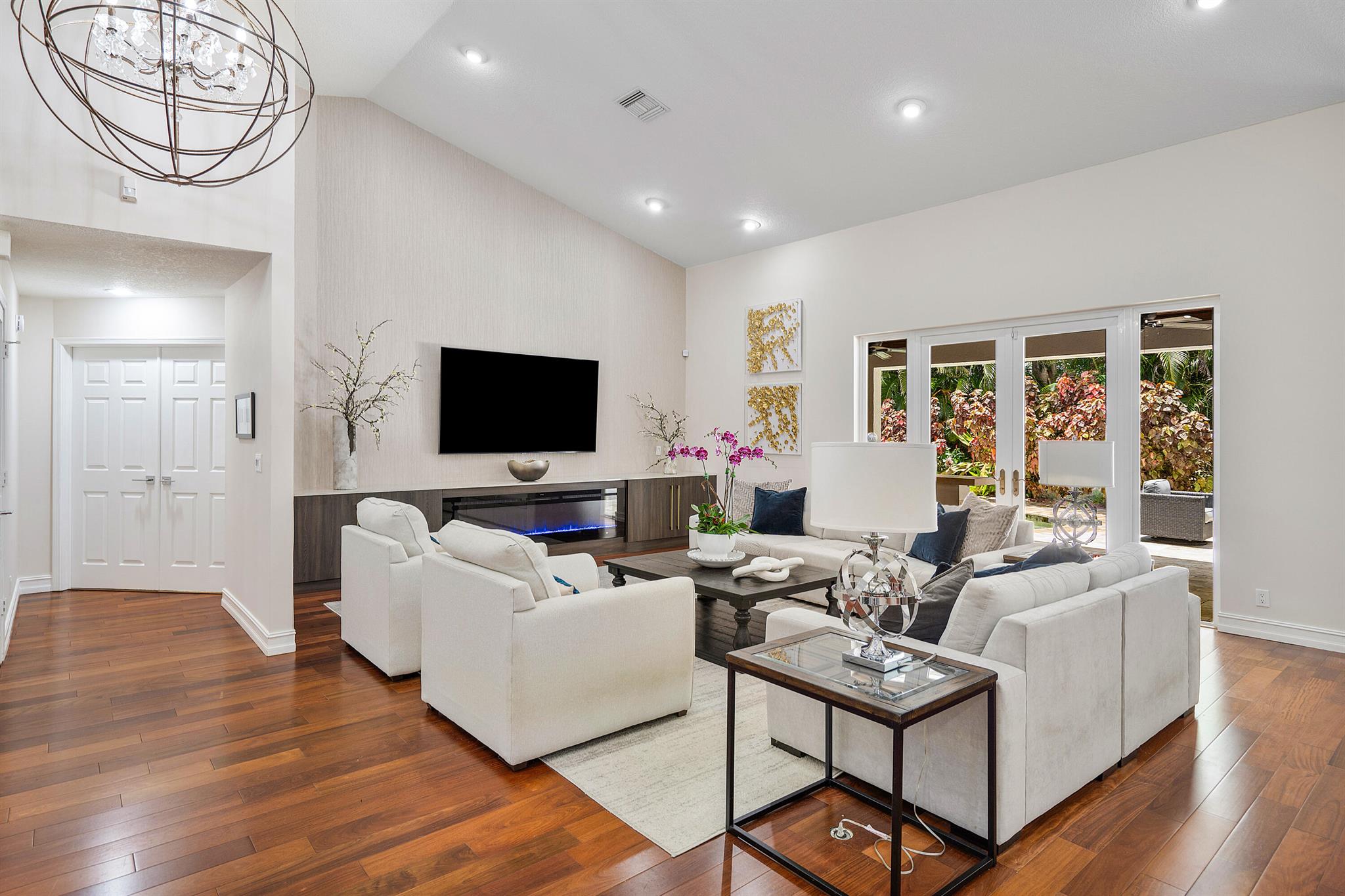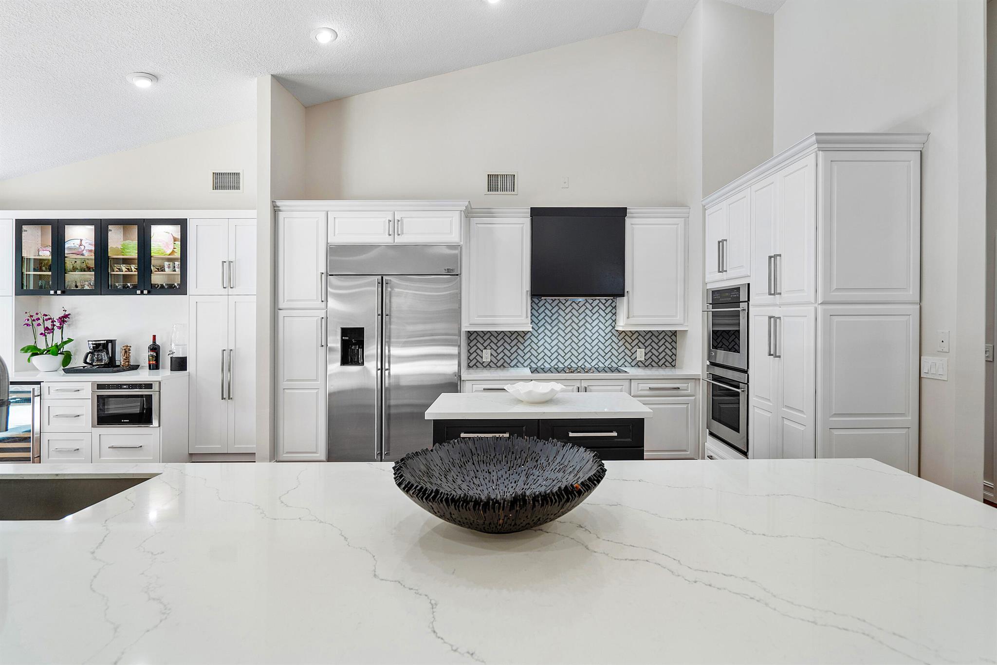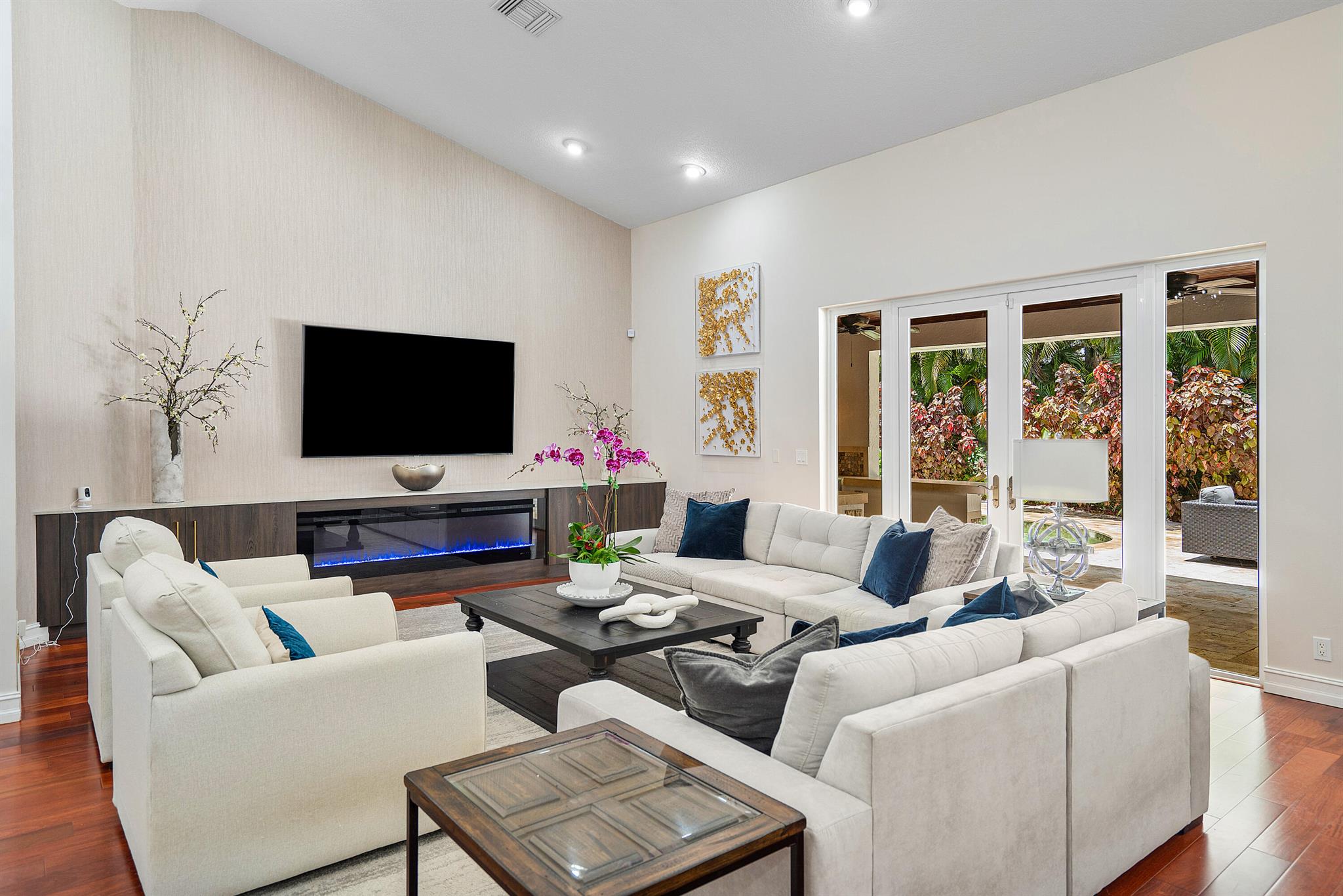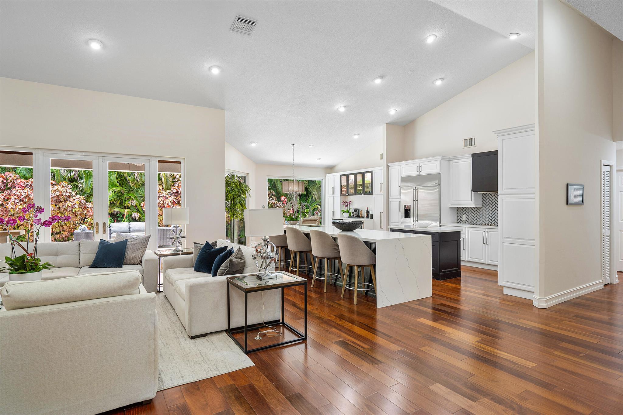 Dictionary's definition of ''Stunner:'' a person or thing of striking excellence, beauty, achievement, etc... You will get just that HERE at 4125 NW 24th Ter .. The best-priced estate in one of Boca Raton's most sought-after guard gated communities, Les Jardins. Step inside this totally remodeled 4-bed/3-bath home sprawling across a triple-split floor plan with high-vaulted ceilings and open concept across nearly 3,000 living SF. An unbelievable kitchen equipped with an oversized island with a quartz waterfall countertops, an abundance of cabinet and counterspace, GE Monogram Appliances, Designer herringbone subway tile backsplash, coffee and breakfast bar/dual ovens .. all opening into your beautiful family room. Professionally designed entertainment center and gorgeous dining room