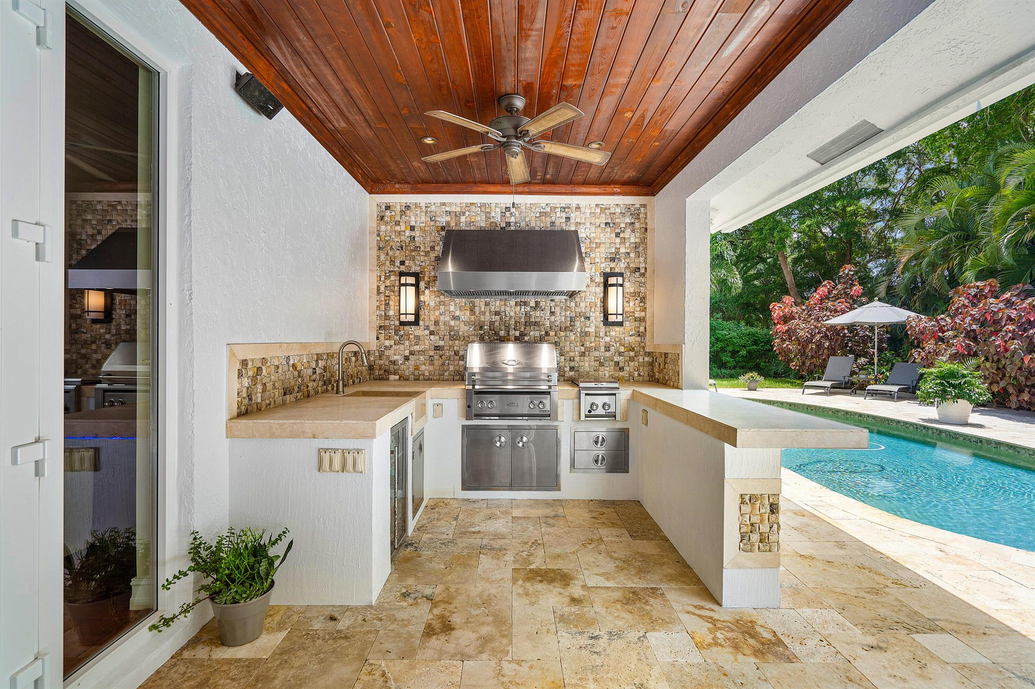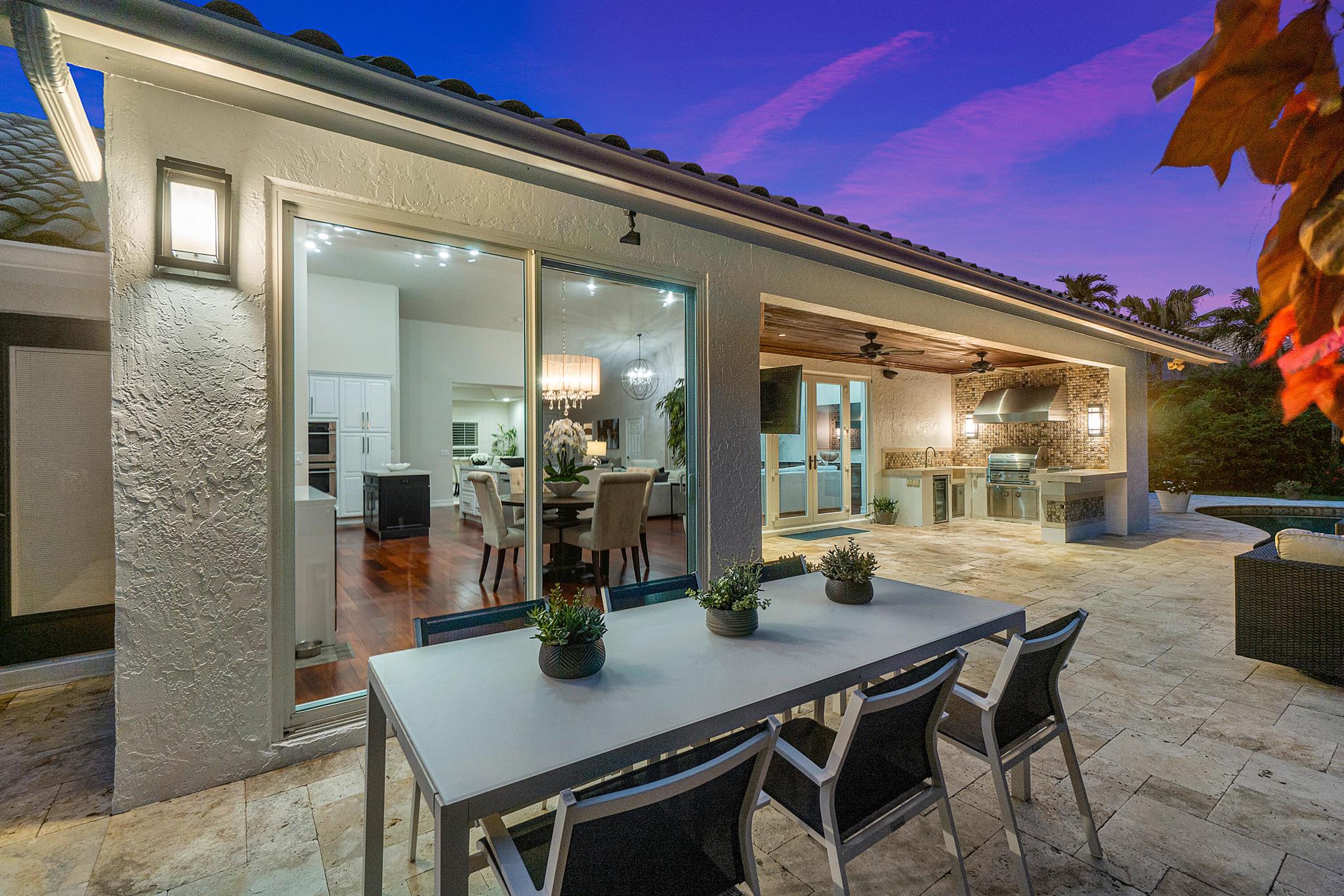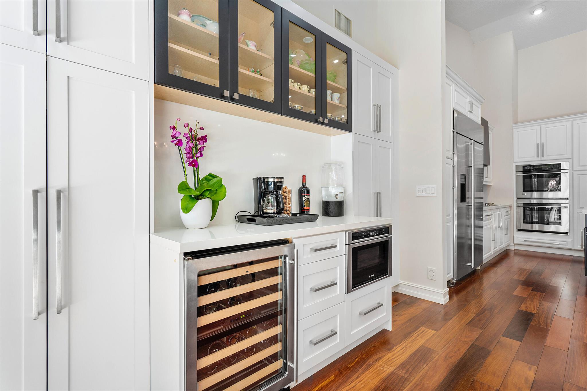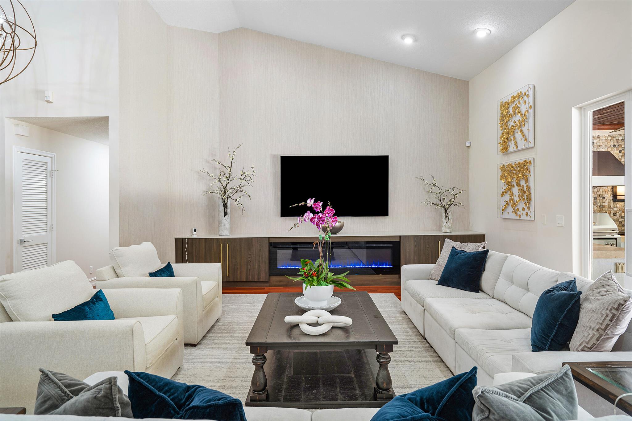 Dictionary's definition of ''Stunner:'' a person or thing of striking excellence, beauty, achievement, etc... You will get just that HERE at 4125 NW 24th Ter .. The best-priced estate in one of Boca Raton's most sought-after guard gated communities, Les Jardins. Step inside this totally remodeled 4-bed/3-bath home sprawling across a triple-split floor plan with high-vaulted ceilings and open concept across nearly 3,000 living SF. An unbelievable kitchen equipped with an oversized island with a quartz waterfall countertops, an abundance of cabinet and counterspace, GE Monogram Appliances, Designer herringbone subway tile backsplash, coffee and breakfast bar/dual ovens .. all opening into your beautiful family room. Professionally designed entertainment center and gorgeous dining room