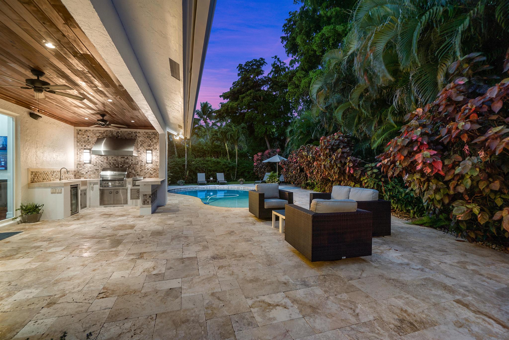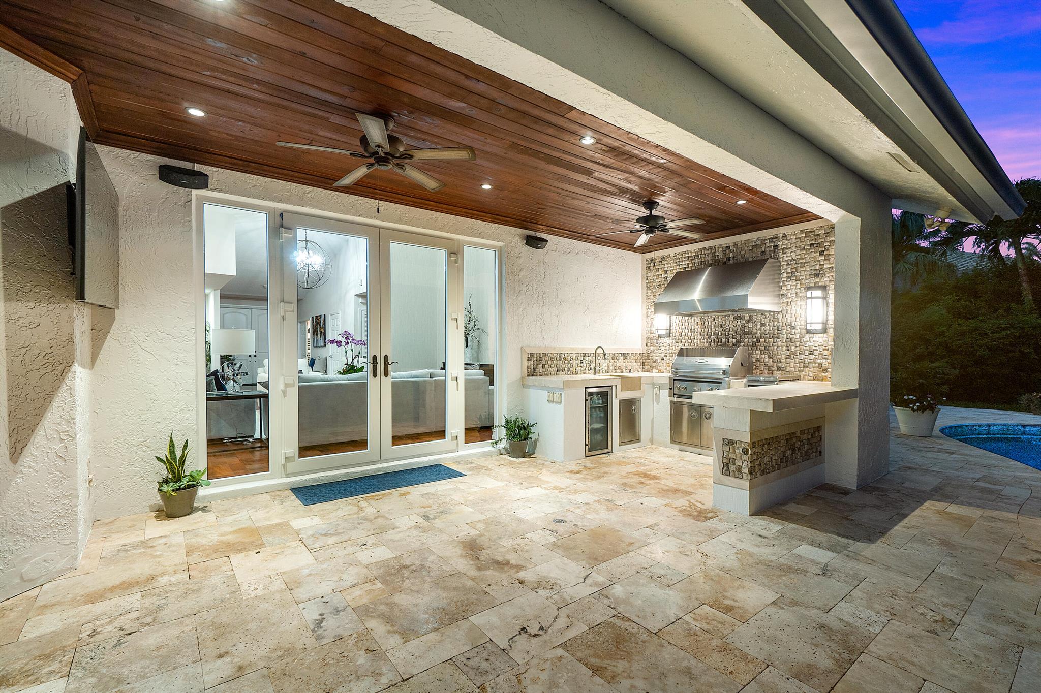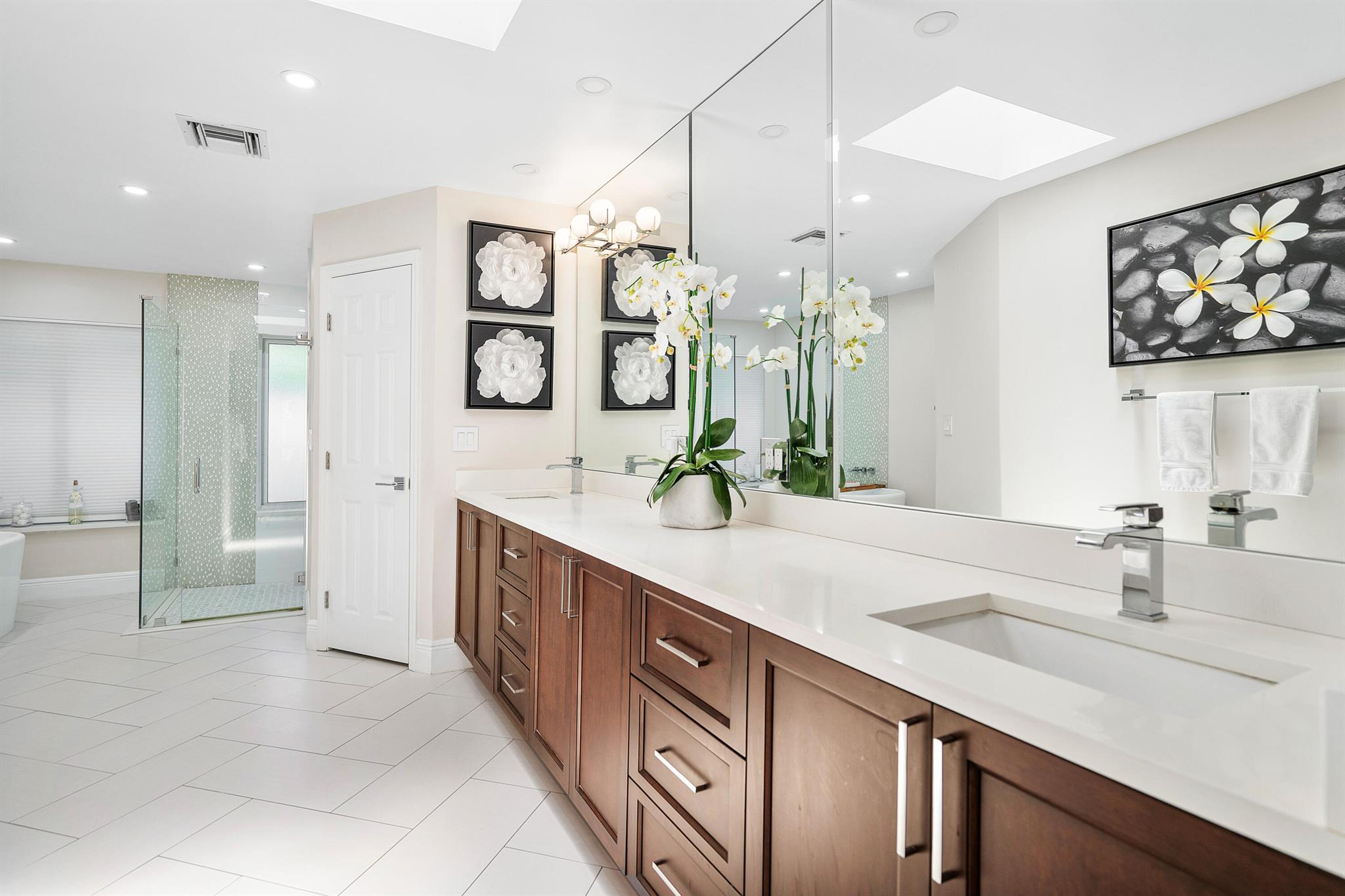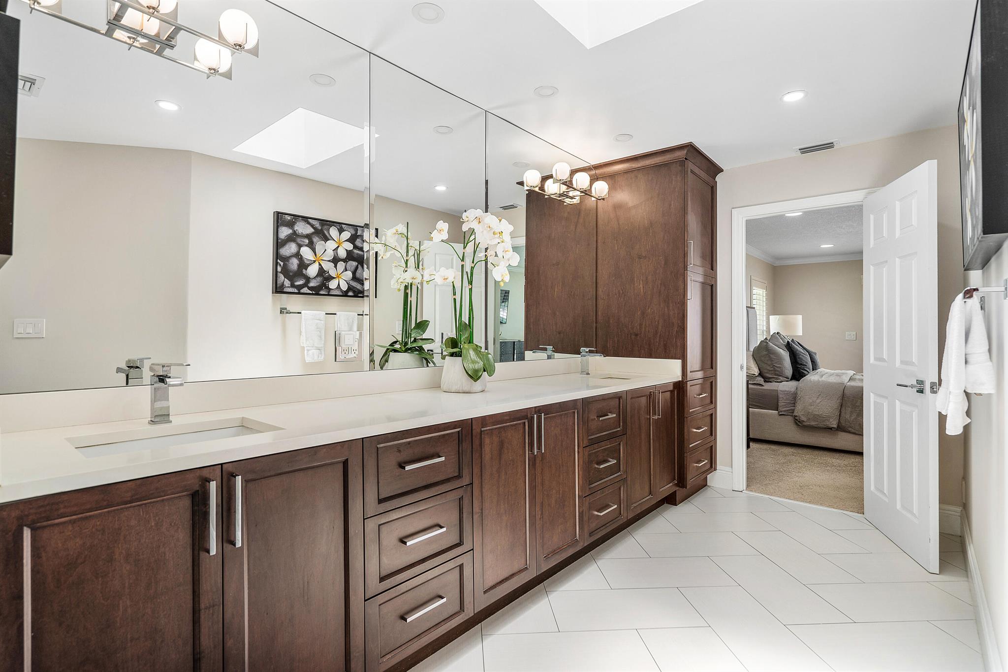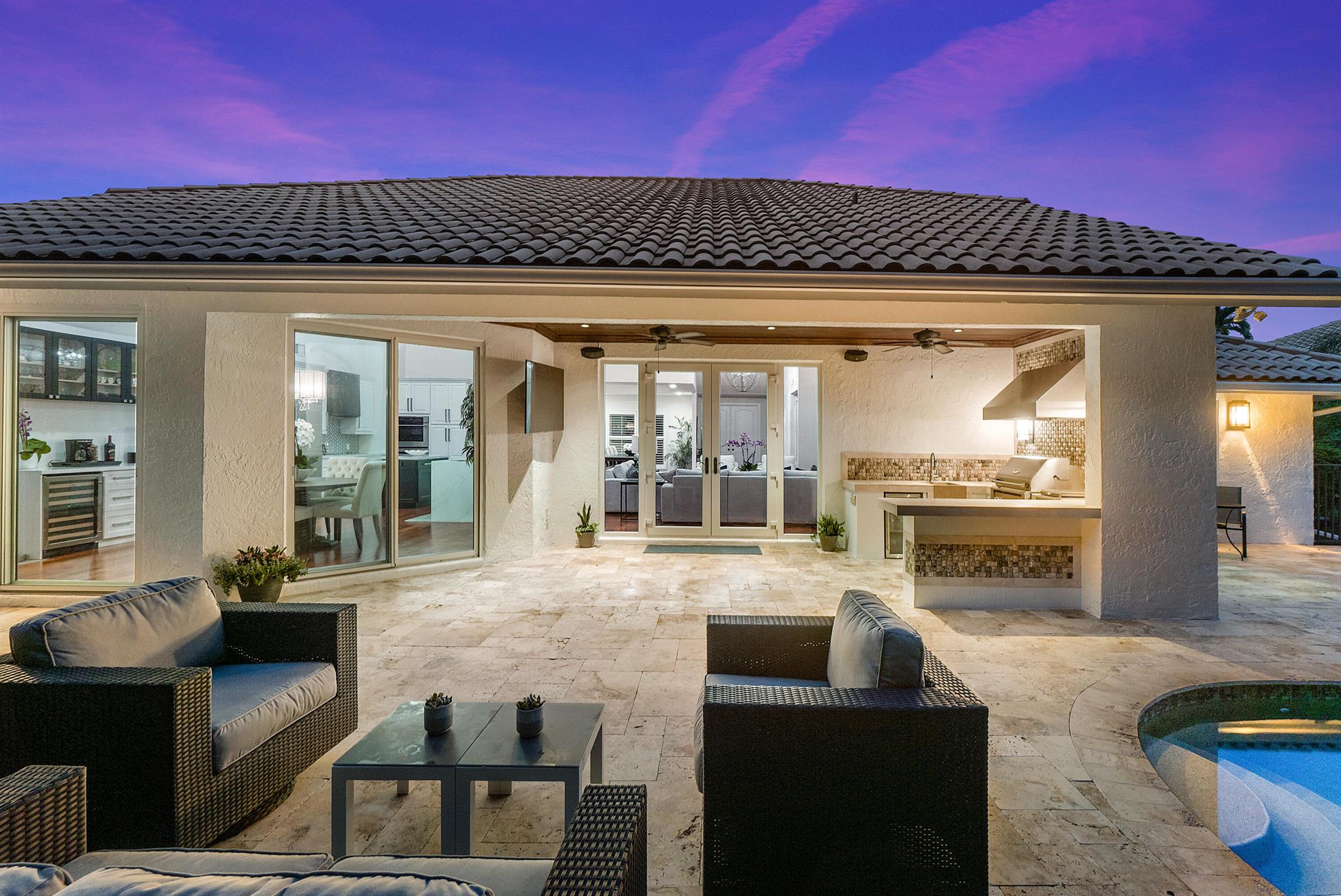 Dictionary's definition of ''Stunner:'' a person or thing of striking excellence, beauty, achievement, etc... You will get just that HERE at 4125 NW 24th Ter .. The best-priced estate in one of Boca Raton's most sought-after guard gated communities, Les Jardins. Step inside this totally remodeled 4-bed/3-bath home sprawling across a triple-split floor plan with high-vaulted ceilings and open concept across nearly 3,000 living SF. An unbelievable kitchen equipped with an oversized island with a quartz waterfall countertops, an abundance of cabinet and counterspace, GE Monogram Appliances, Designer herringbone subway tile backsplash, coffee and breakfast bar/dual ovens .. all opening into your beautiful family room. Professionally designed entertainment center and gorgeous dining room