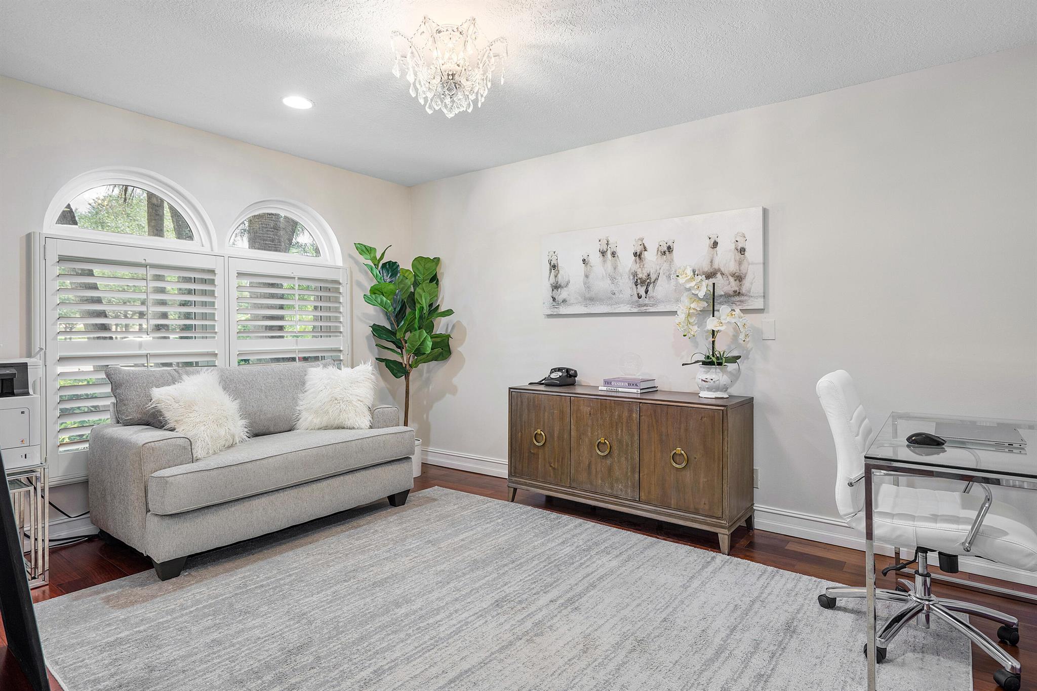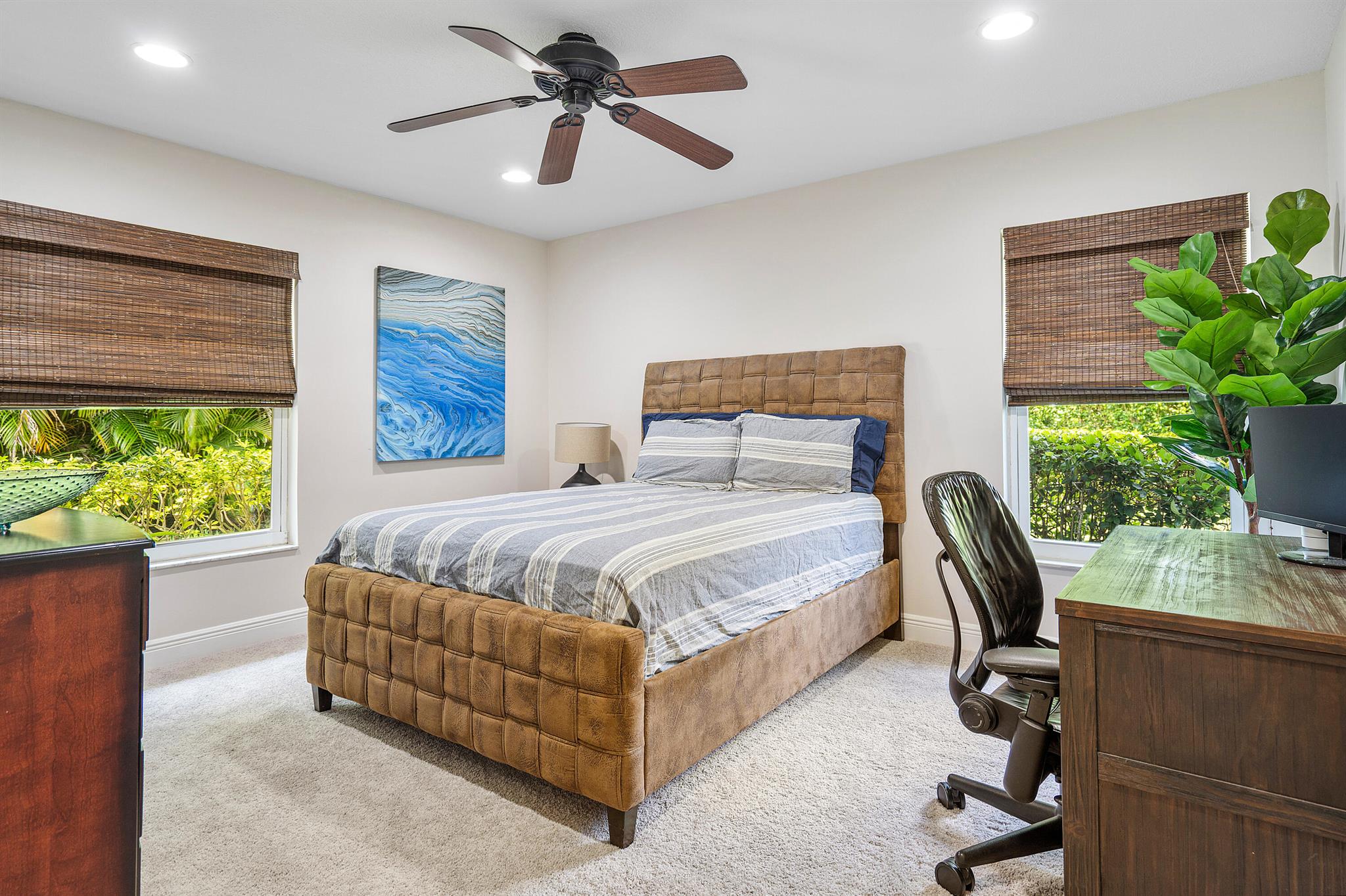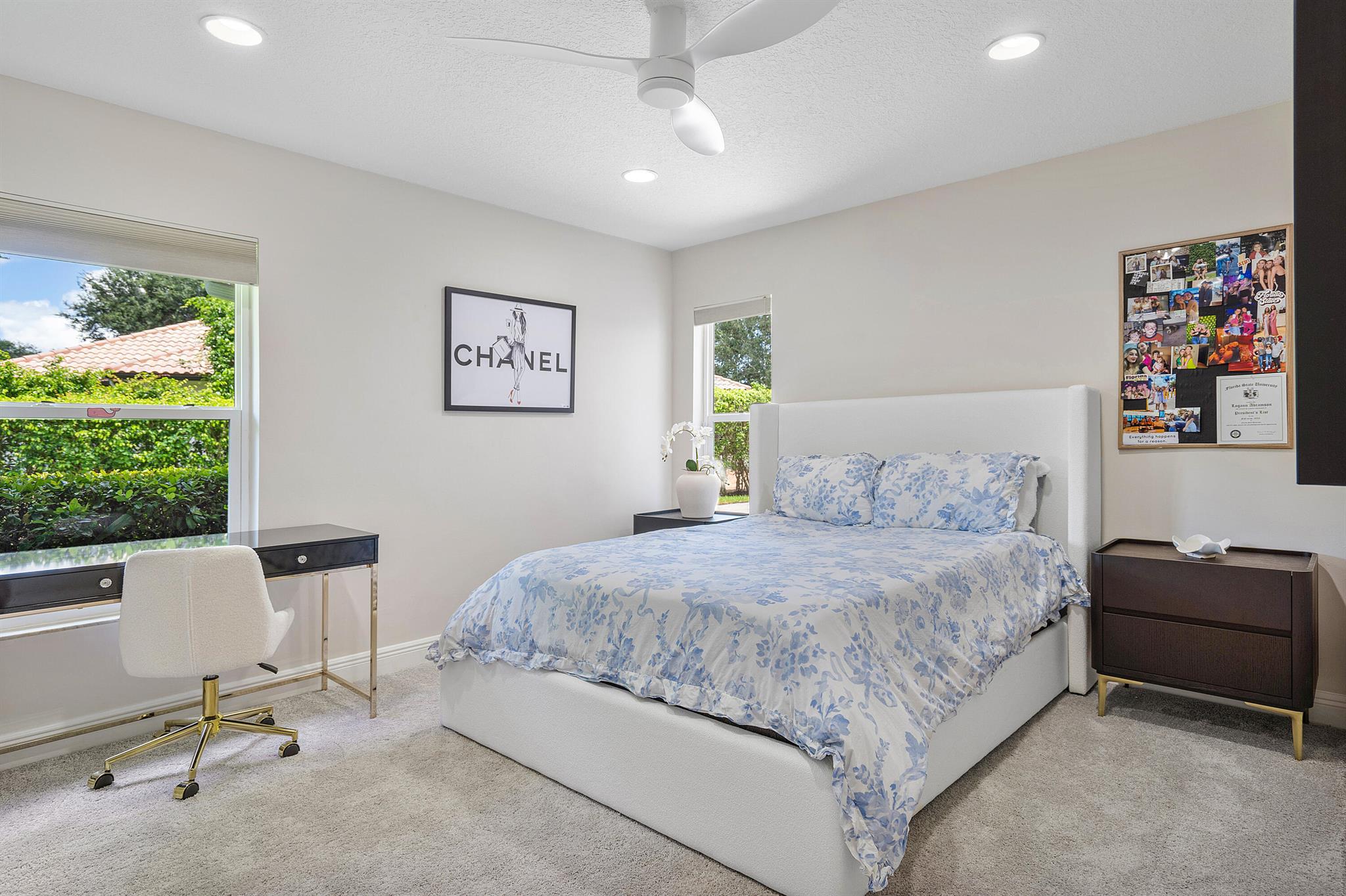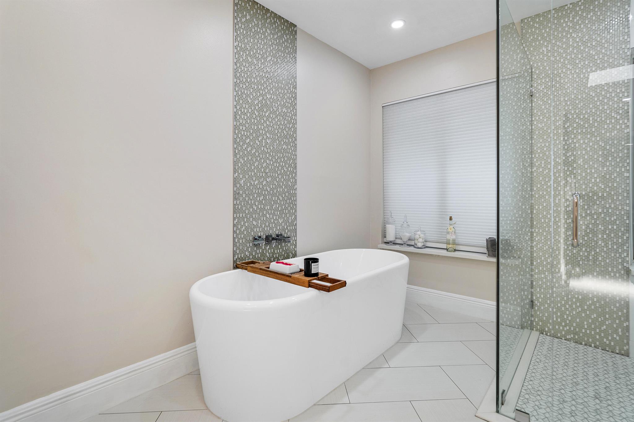 Dictionary's definition of ''Stunner:'' a person or thing of striking excellence, beauty, achievement, etc... You will get just that HERE at 4125 NW 24th Ter .. The best-priced estate in one of Boca Raton's most sought-after guard gated communities, Les Jardins. Step inside this totally remodeled 4-bed/3-bath home sprawling across a triple-split floor plan with high-vaulted ceilings and open concept across nearly 3,000 living SF. An unbelievable kitchen equipped with an oversized island with a quartz waterfall countertops, an abundance of cabinet and counterspace, GE Monogram Appliances, Designer herringbone subway tile backsplash, coffee and breakfast bar/dual ovens .. all opening into your beautiful family room. Professionally designed entertainment center and gorgeous dining room