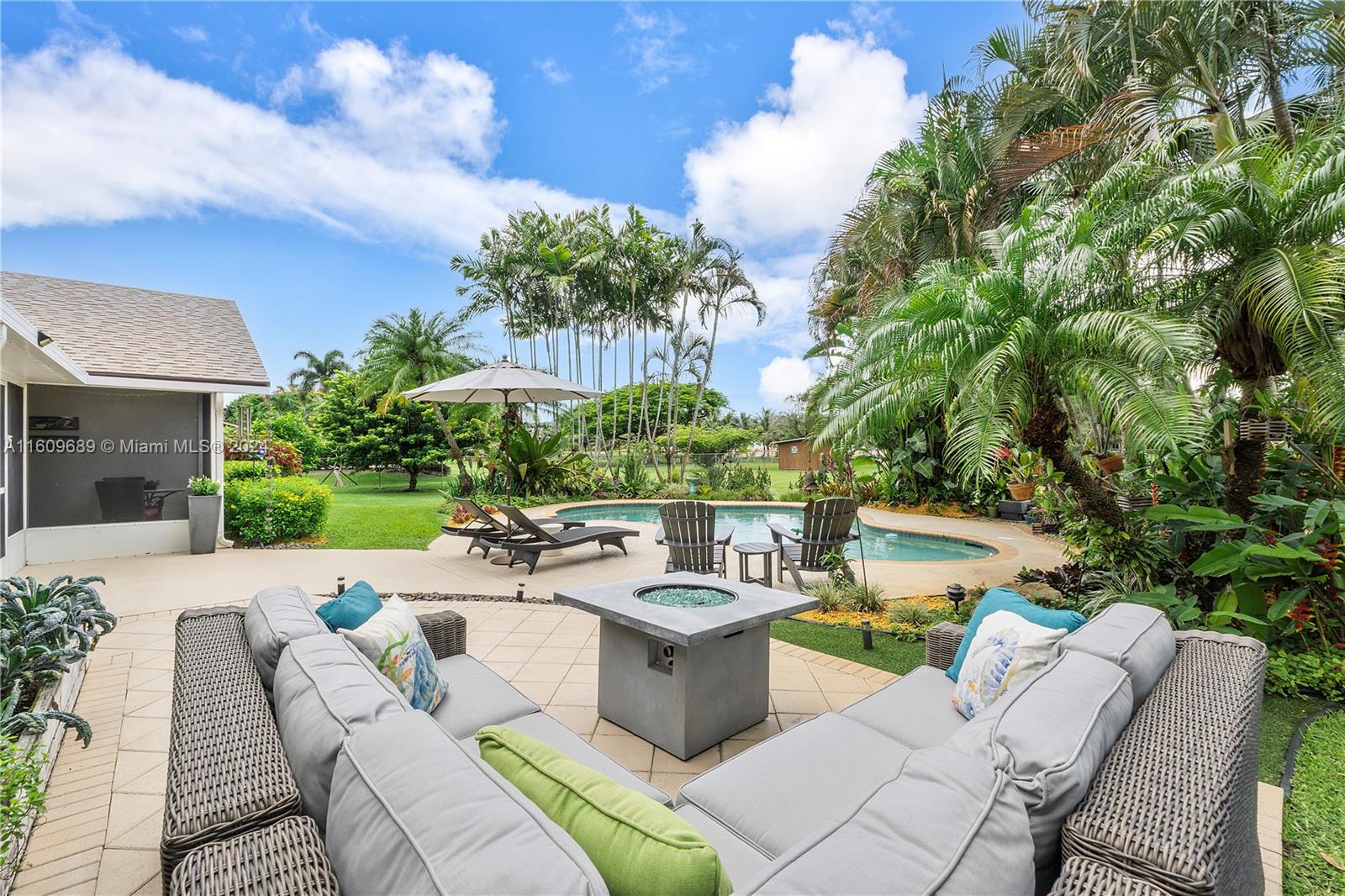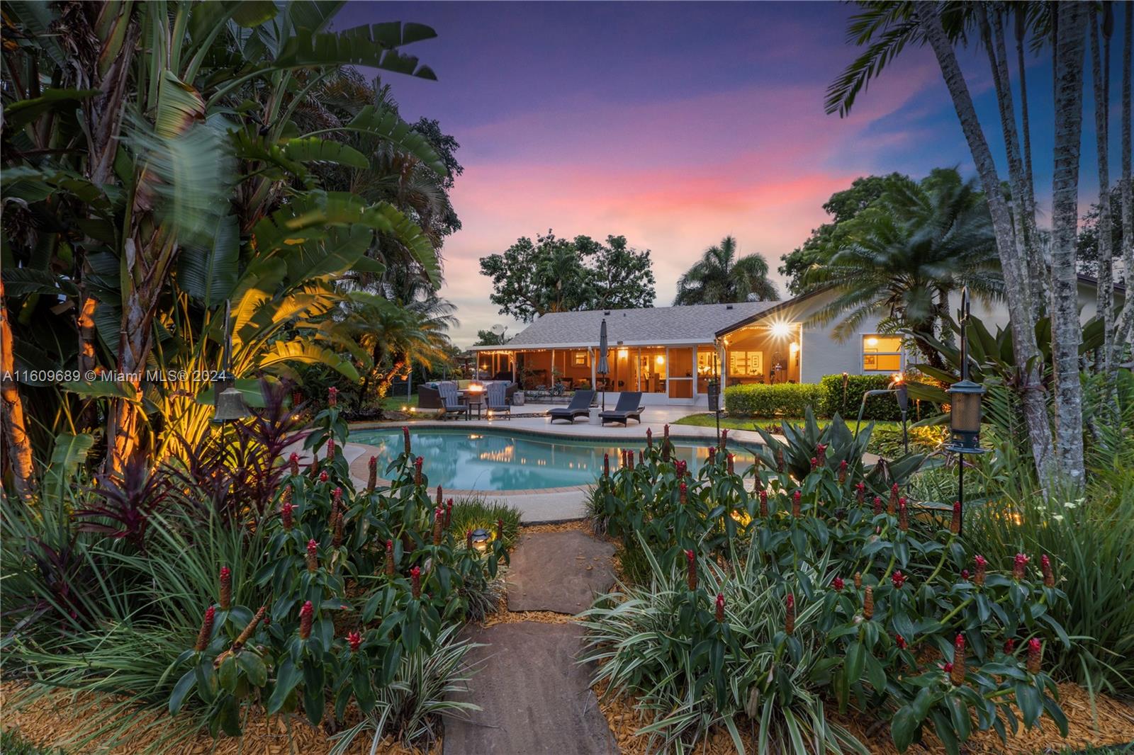 Welcome to your waterfront oasis in Southwest Ranches! This 3 bed, 2 bath home is beautifully nestled on just under an acre of land, featuring complete impact windows + doors, walk-in closets in each bedroom, brand new roof Jan. 2024, a sparkling pool enclosed by a lush gardenscape, & an oversized backyard w/ endless potential! The split floor plan boasts open living spaces, perfect for entertaining. Kitchen windows overlook the screened-in patio & beautifully manicured backyard, lined with an array of tropical greenery. This home has been beautifully maintained & is equipped with a UV AC filter, a water softener system + a reverse osmosis water purification for the kitchen sink/fridge. Workman area in garage, epoxy flooring + custom storage cabinets. A true gem in the heart of SW Ranches.