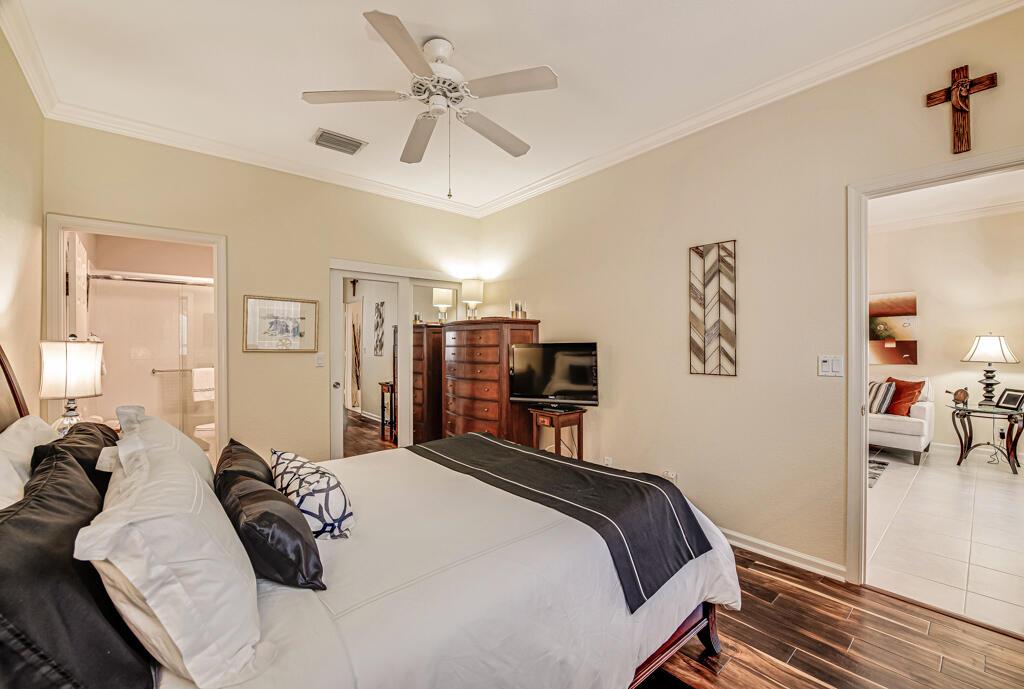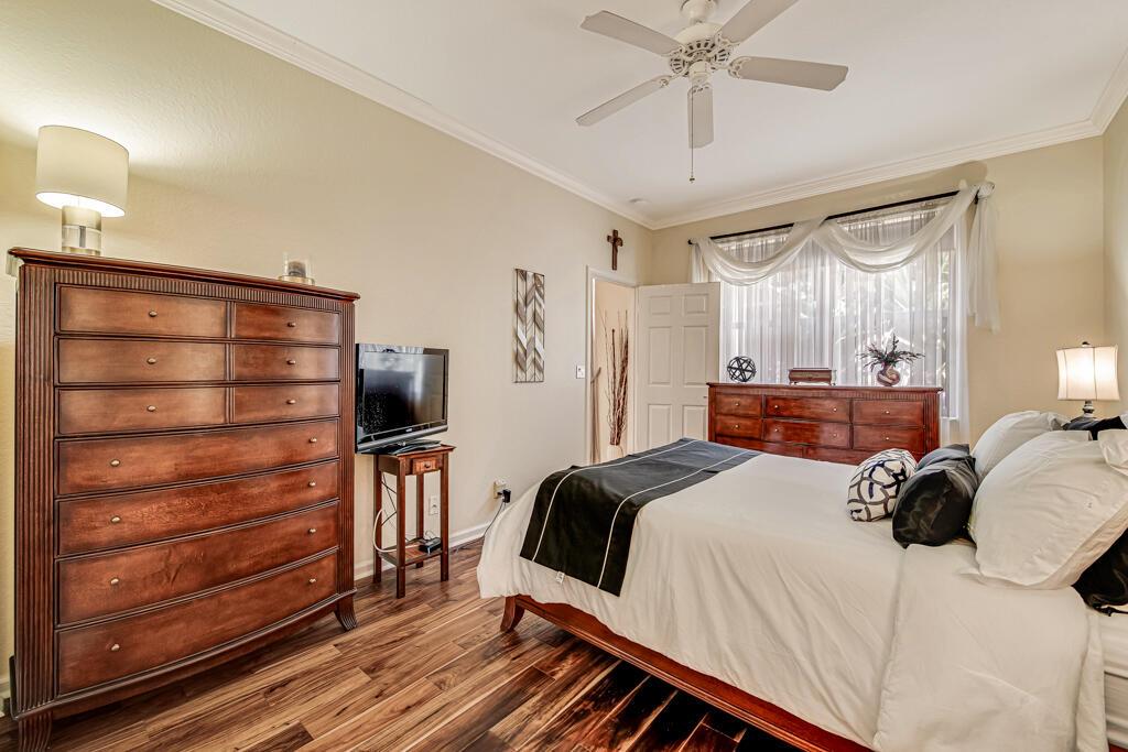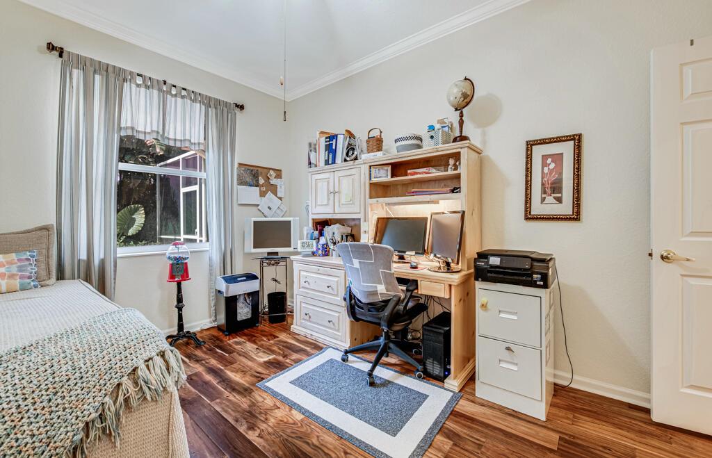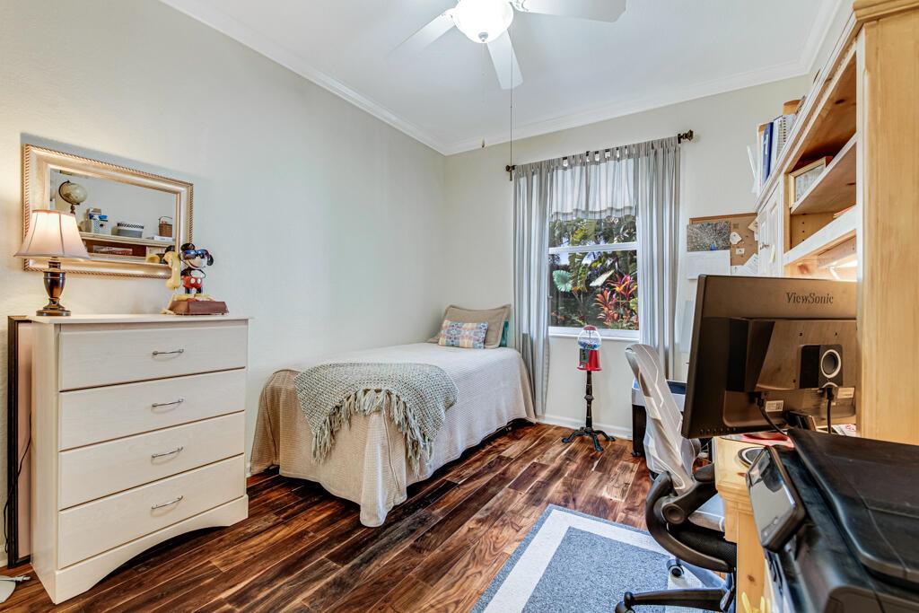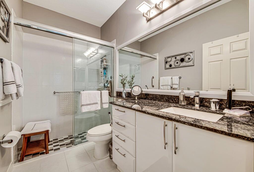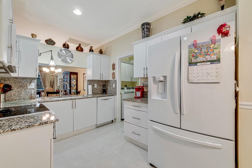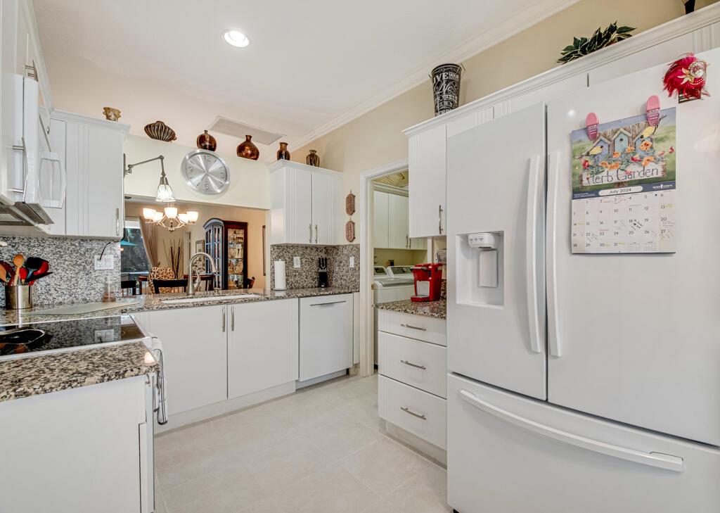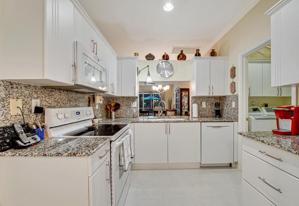 This charming 3 bedroom, 2 bath home has been lovingly cared for with upgrades galore. From the gorgeous kitchen with refaced white cabinets and sleek black granite counters that are offset with white, newer appliances to upgraded bathrooms that match the kitchen's upgrades. The 3 bedrooms have beautiful engineered hardwood flooring. *Note: the front bedroom has the original closet removed to create a den/flex space and custom cabinets were installed in the adjacent hallway. There are plantation shutters in the kitchen window and den. As hurricane season is upon us, the owners have installed accordion shutters on all the windows, which are very easy to operate. The patio has been enlarged and looks out to a lush, tropical garden setting. Master bedroom has a redone walk in shower.