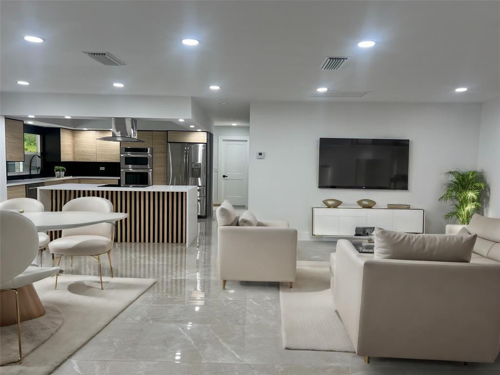 Discover modern luxury in this meticulously renovated home featuring a new roof and total renovation project. New bathrooms include a state-of-the-art master bath for spa-like indulgence. The remodeled kitchen boasts beautiful cabinetry and premium appliances. Enjoy comfort with new AC, water heater, and electric panel. An aluminum fence enhances security, while a remodeled driveway, front, back patio, and deck offer outdoor charm. Impact windows ensure energy efficiency and safety. This turnkey property blends elegance with functionality for a lifestyle of contemporary comfort and style.