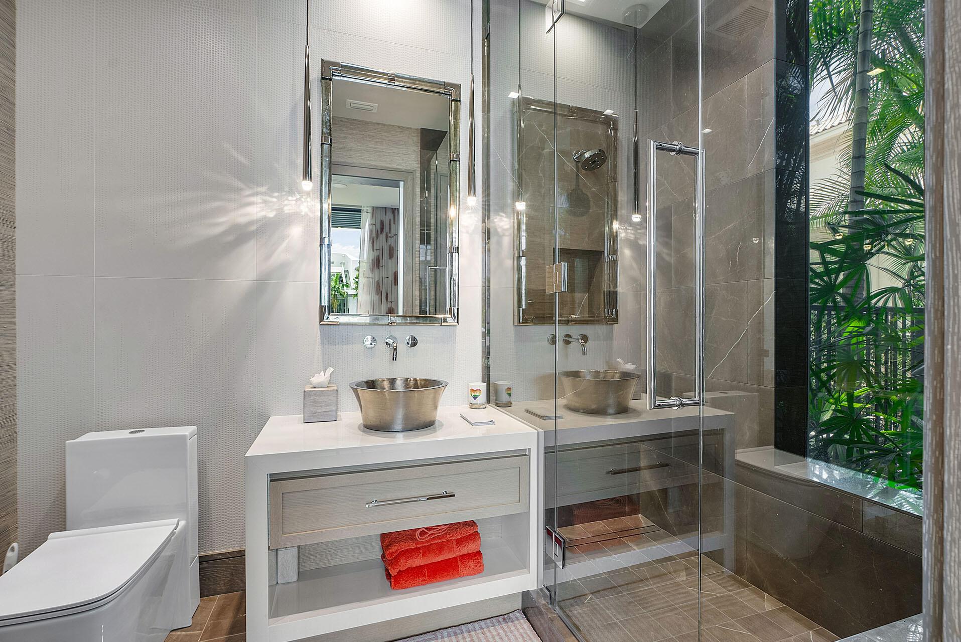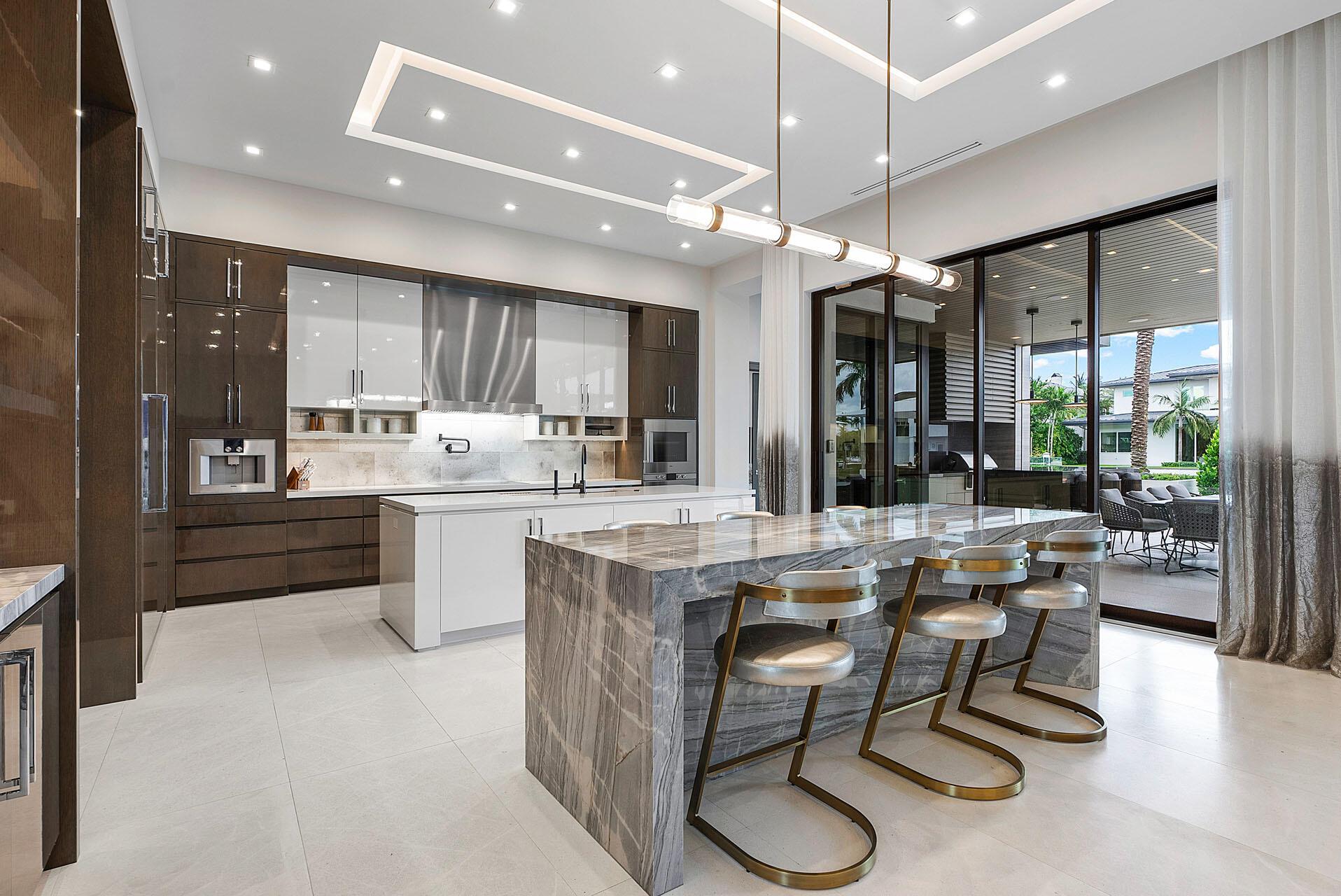 Discover the epitome of luxury in this nearly new deep-water estate on 131' of waterfront, masterfully crafted by CJM Builders and elegantly designed by Marc Michaels. This stunning haven boasts a modern transitional interior and an impressive 111' dock with power to accommodate a grand yacht.Indulge in the outdoor oasis, featuring an infinity pool/spa, a summer kitchen with state-of-the-art appliances, automatic pocketing doors, and Phantom screens that seamlessly blend indoor and outdoor living. The chef's kitchen is a culinary masterpiece, equipped with premium Gaggenau appliances, sizeable dual center islands, and a butler's pantry.