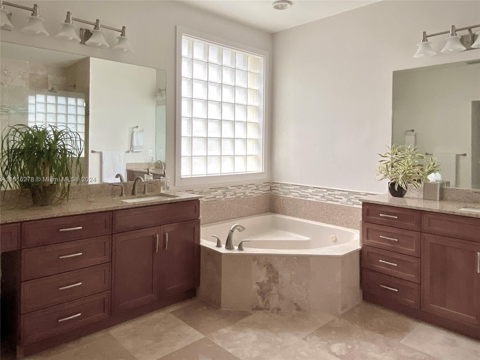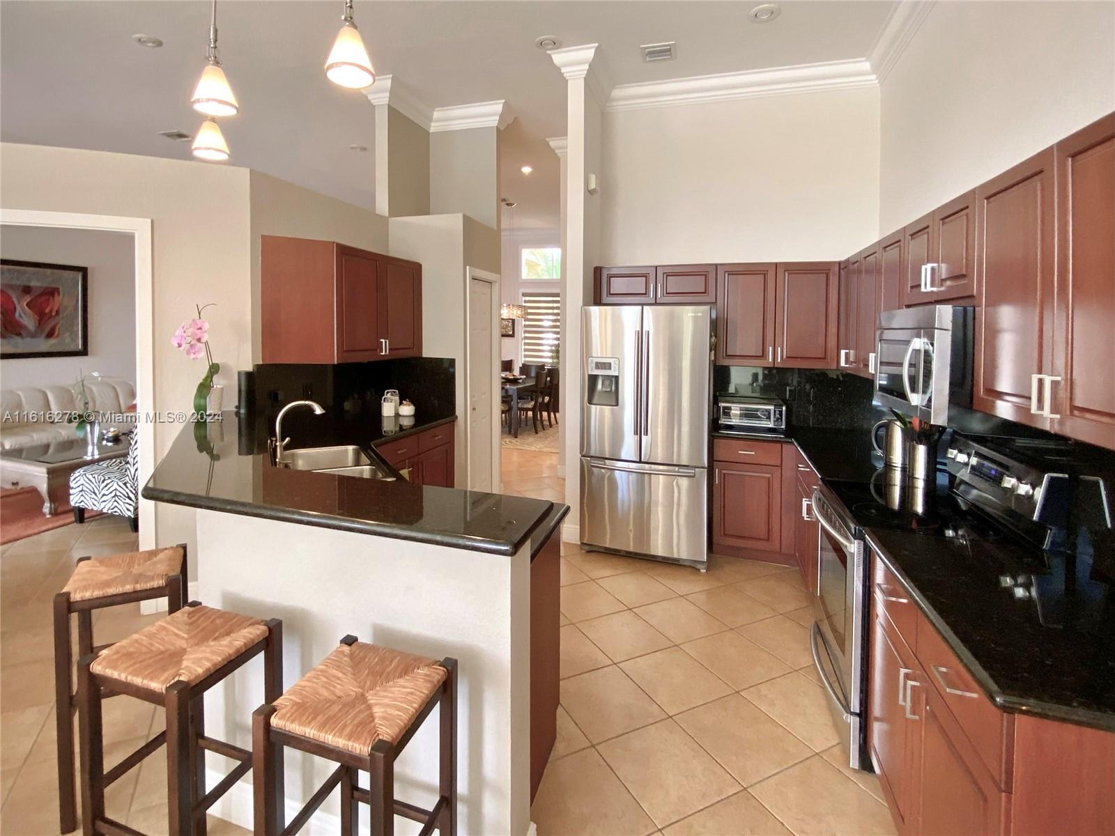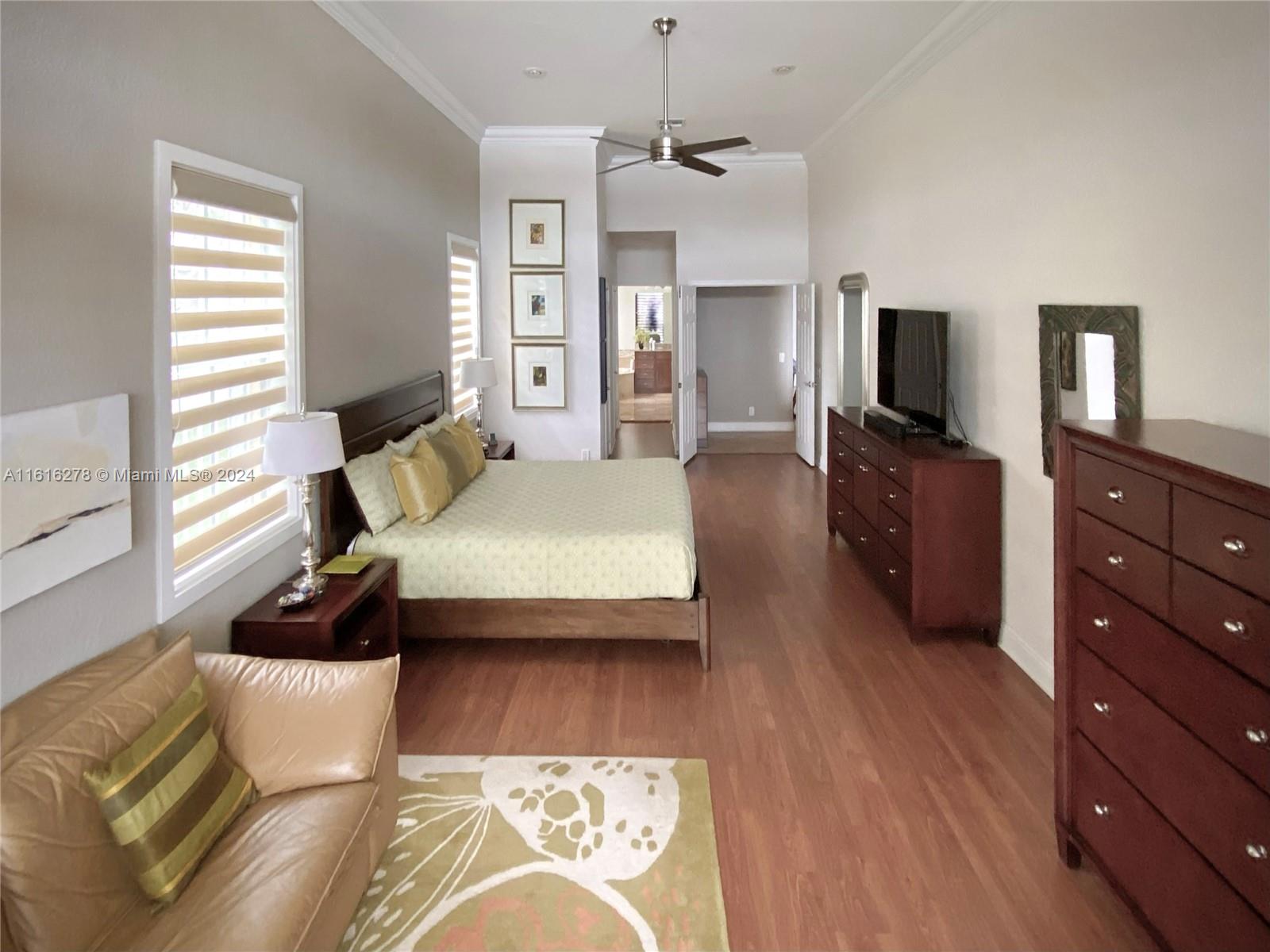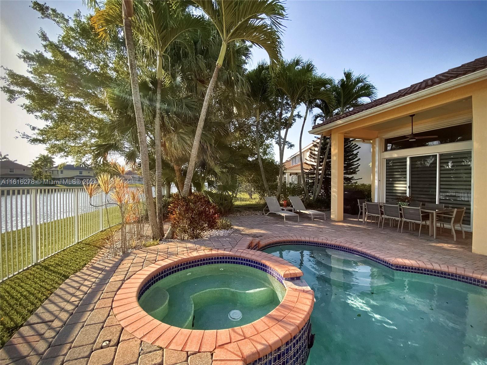 SPECTACULAR WATER VIEWS FROM EVERYWHERE! This home blends elegance and modern luxury perfectly. * Bedrooms: 4 spacious bedrooms + 1 office Den, including a luxurious master suite with a private sitting area. * Bathrooms: 3.5 beautifully appointed bathrooms. * Living Areas: Open-concept living and dining areas with soaring ceilings, elegant crown molding, and expansive wooden-framed windows that flood the home with natural light. * Kitchen: Open-space concept with stainless steel appliances, custom cabinetry, and granite countertops. * Office/Study: Private office space perfect for remote work or a quiet retreat. * Outdoor Living: Resort-style backyard oasis with a sparkling pool, spa, covered patio and landscaped gardens. * Garage: Spacious two-car garage with ample storage space.