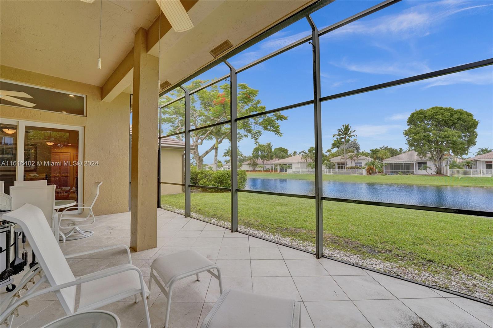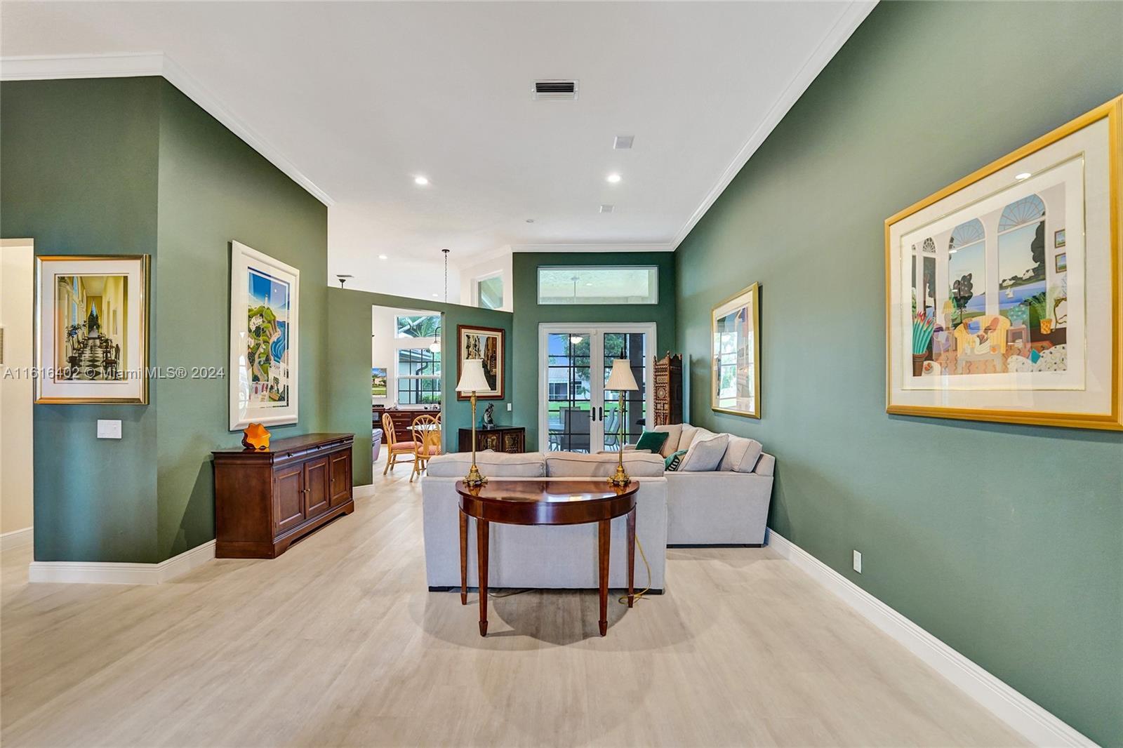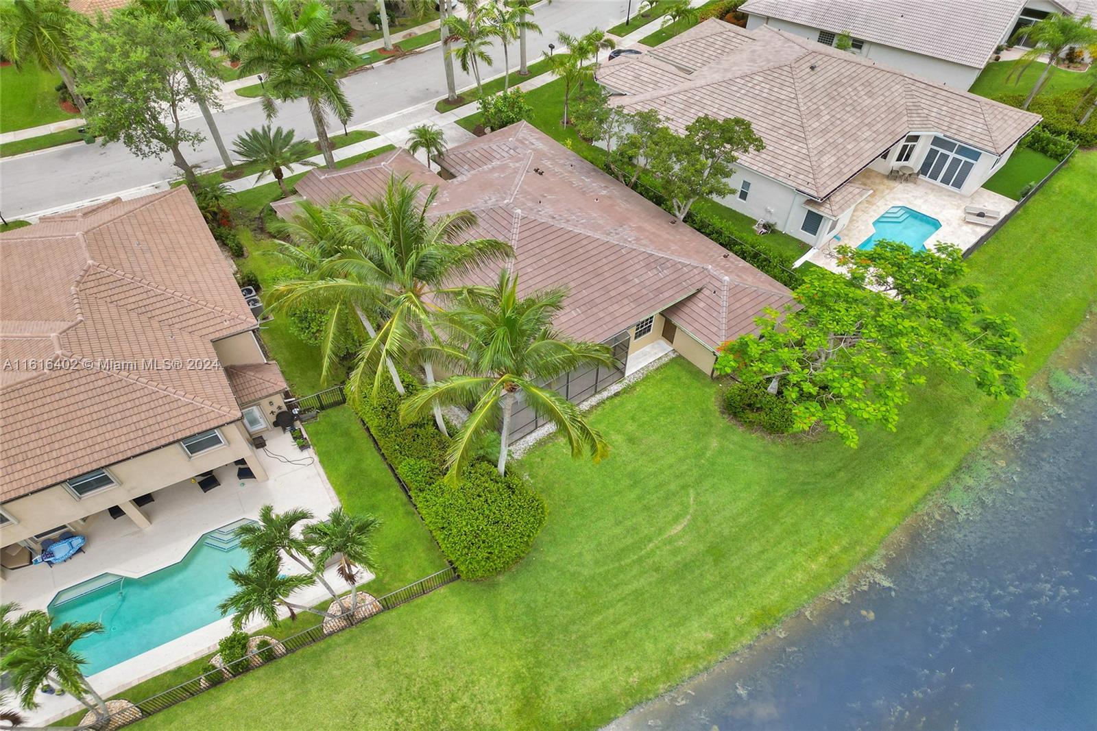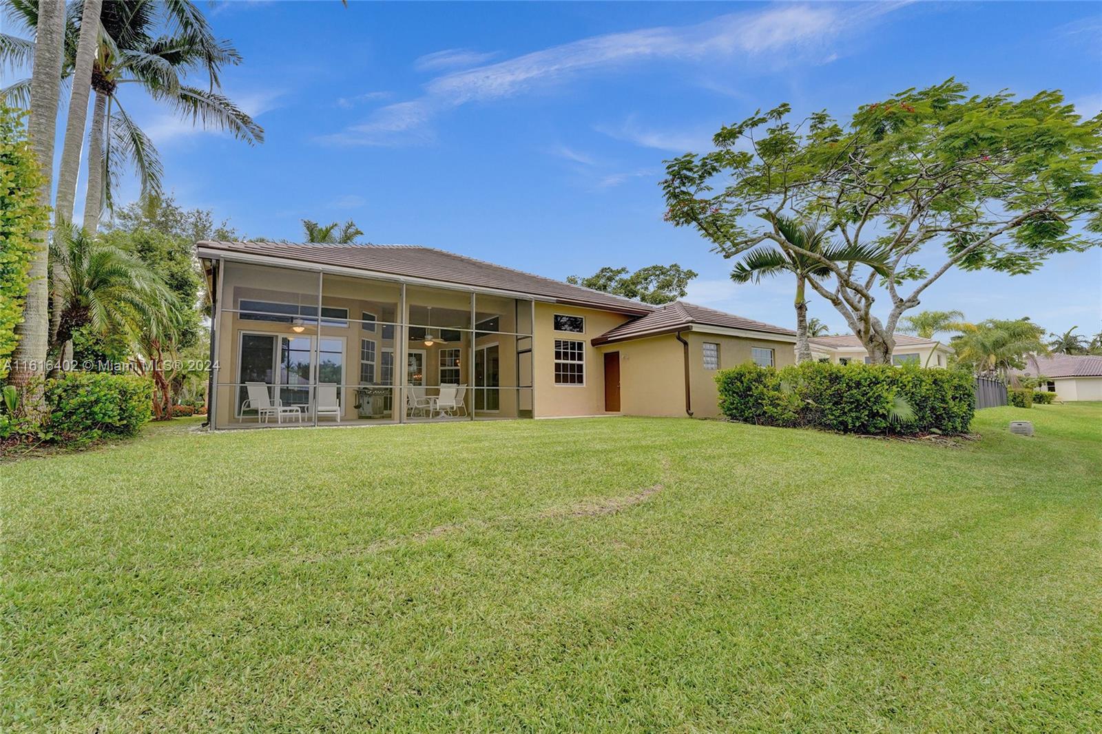 Tucked on a royal palm tree-lined street, this custom one-story home in Weston Hills CC offers modern comfort & elegance. Featuring a brand-new roof (2024) & full-impact doors/windows. Crown molding & luxury vinyl flooring throughout the main living areas. 4 spacious bedrooms, 3.5 bathrooms + a den, family room, & a sitting area in the master bedroom. Kitchen features upgraded stainless steel appliances, trash compactor & 3 ovens including an Advantium microwave that doubles as an oven. Additional features include a custom linen closet in the master bathroom along with a cabana bath, LED high-hats, oversized screened patio, & murphy bed. The garage includes built-in metal wall unit with drawers & cabinets. Gorgeous lake views from your private patio and ample space for a pool.