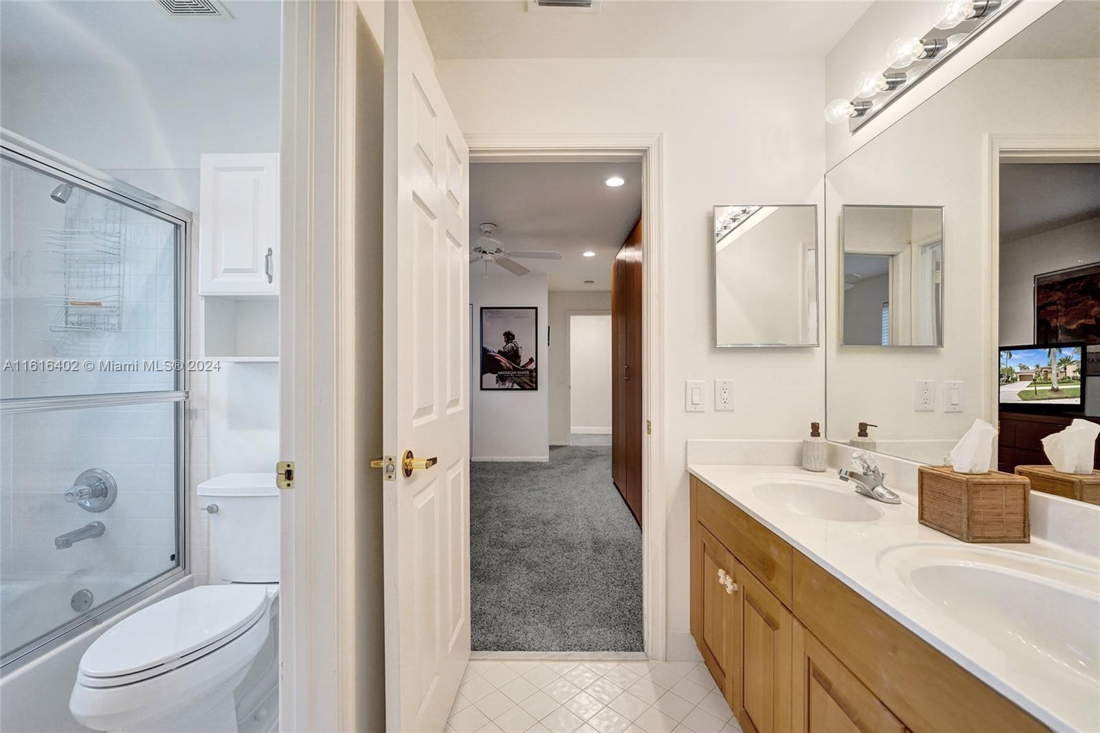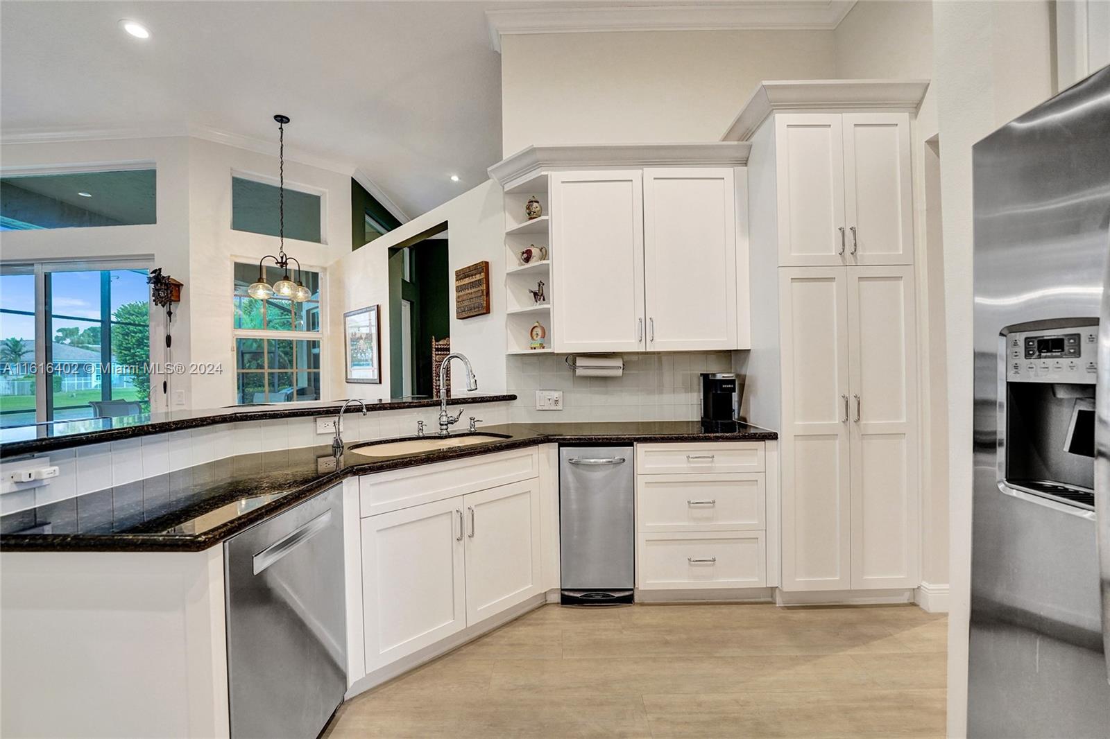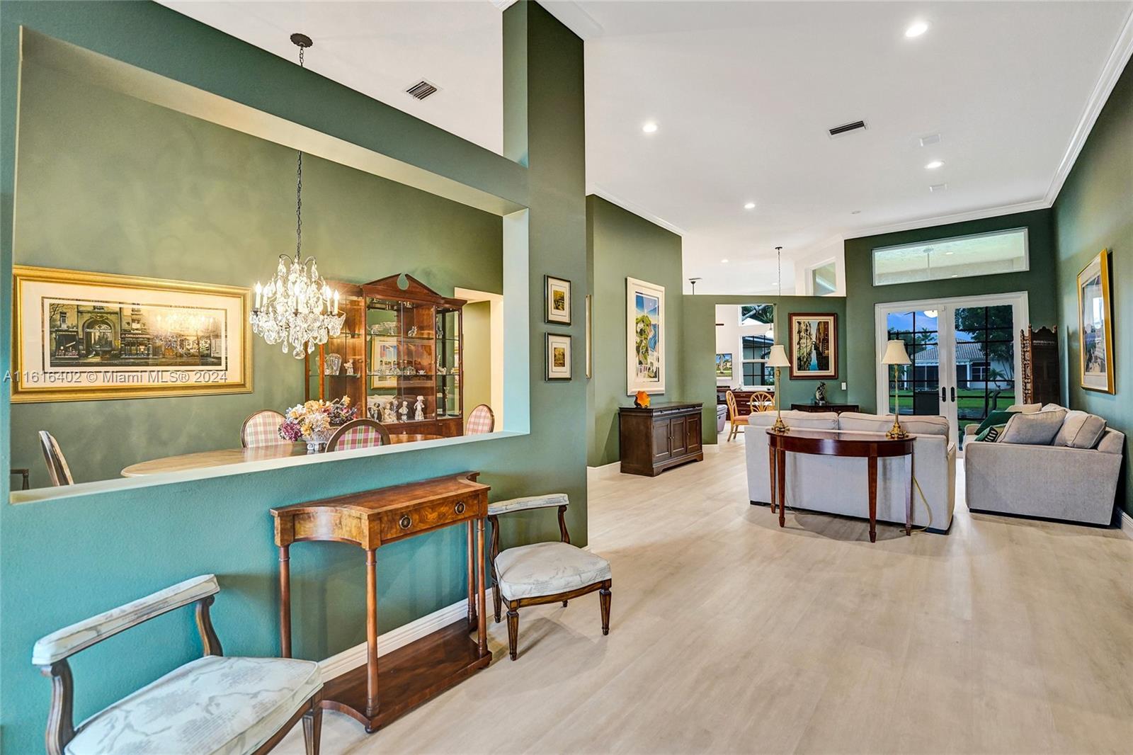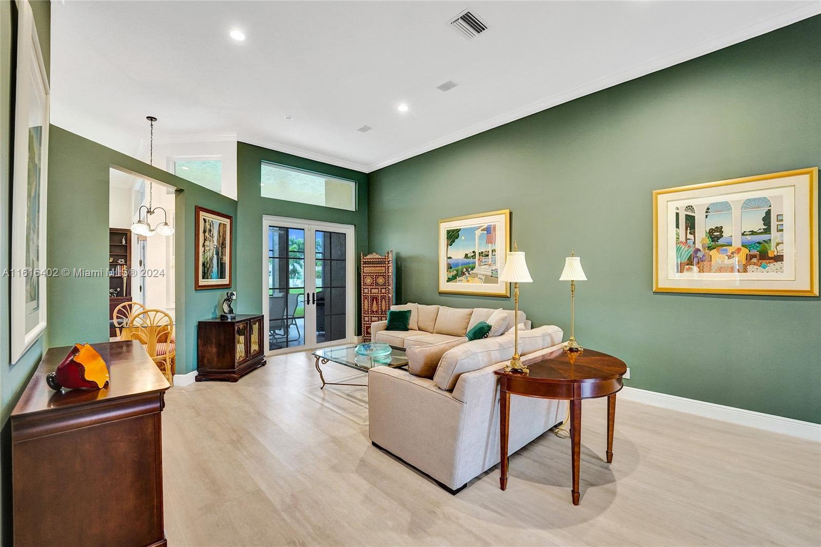 Tucked on a royal palm tree-lined street, this custom one-story home in Weston Hills CC offers modern comfort & elegance. Featuring a brand-new roof (2024) & full-impact doors/windows. Crown molding & luxury vinyl flooring throughout the main living areas. 4 spacious bedrooms, 3.5 bathrooms + a den, family room, & a sitting area in the master bedroom. Kitchen features upgraded stainless steel appliances, trash compactor & 3 ovens including an Advantium microwave that doubles as an oven. Additional features include a custom linen closet in the master bathroom along with a cabana bath, LED high-hats, oversized screened patio, & murphy bed. The garage includes built-in metal wall unit with drawers & cabinets. Gorgeous lake views from your private patio and ample space for a pool.