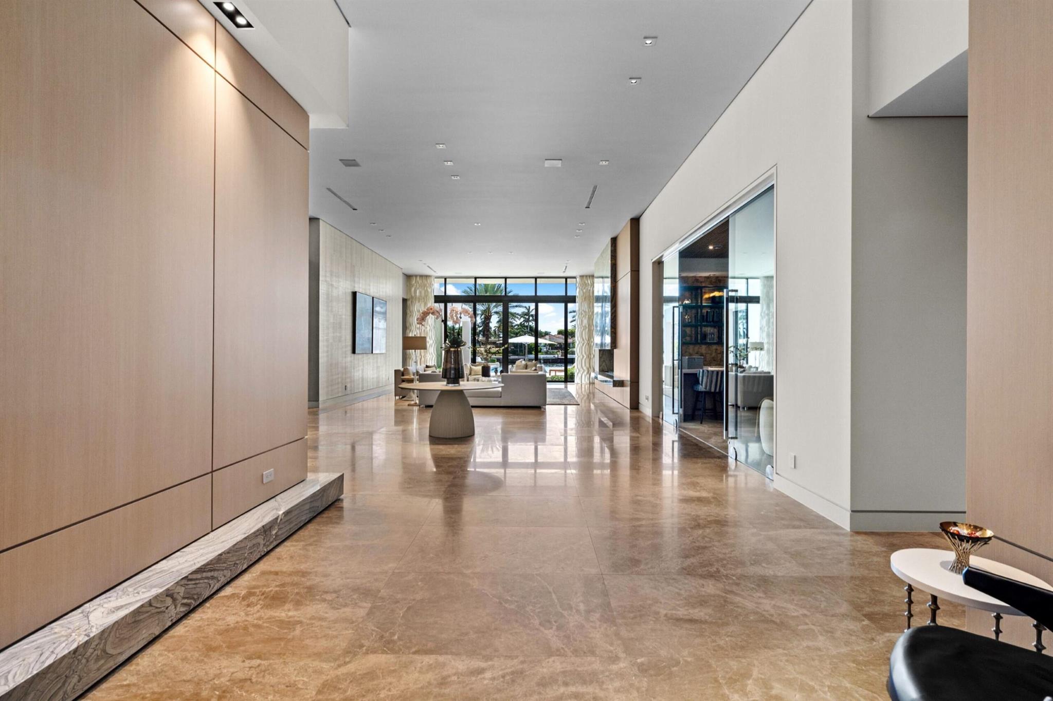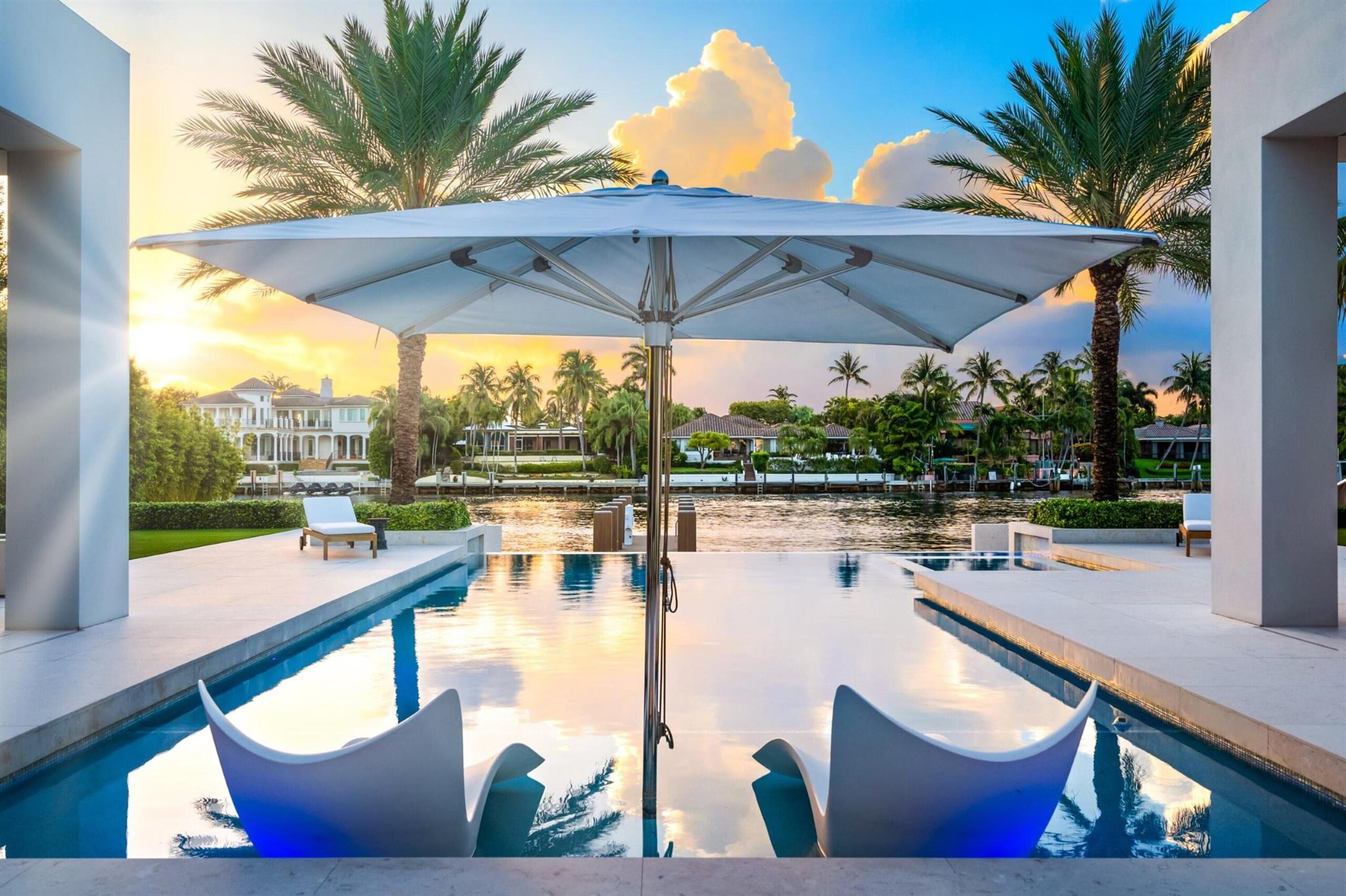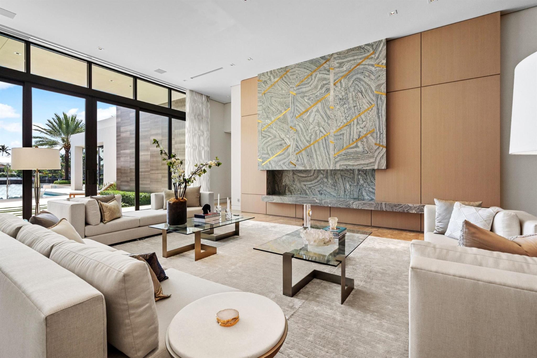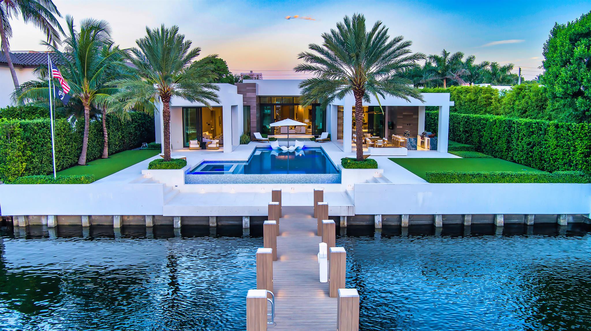 Gated High-Styled Intracoastal Estate sited along fashionable Fifth Avenue Estates amongst Boca Raton's Mansion Row by prestigious JH Norman Homes and architect Brenner Architecture Group A1A. Gated for supreme privacy, an expansive motor court greets guests to this modern, sleek one level glass encased architectural estate with high ceilings and light-infused rooms. Resort-like pool with expansive entertainment lanai and yacht dockage for up to two 80 +/- vessels mooring perpendicular, minutes to the Boca Inlet.