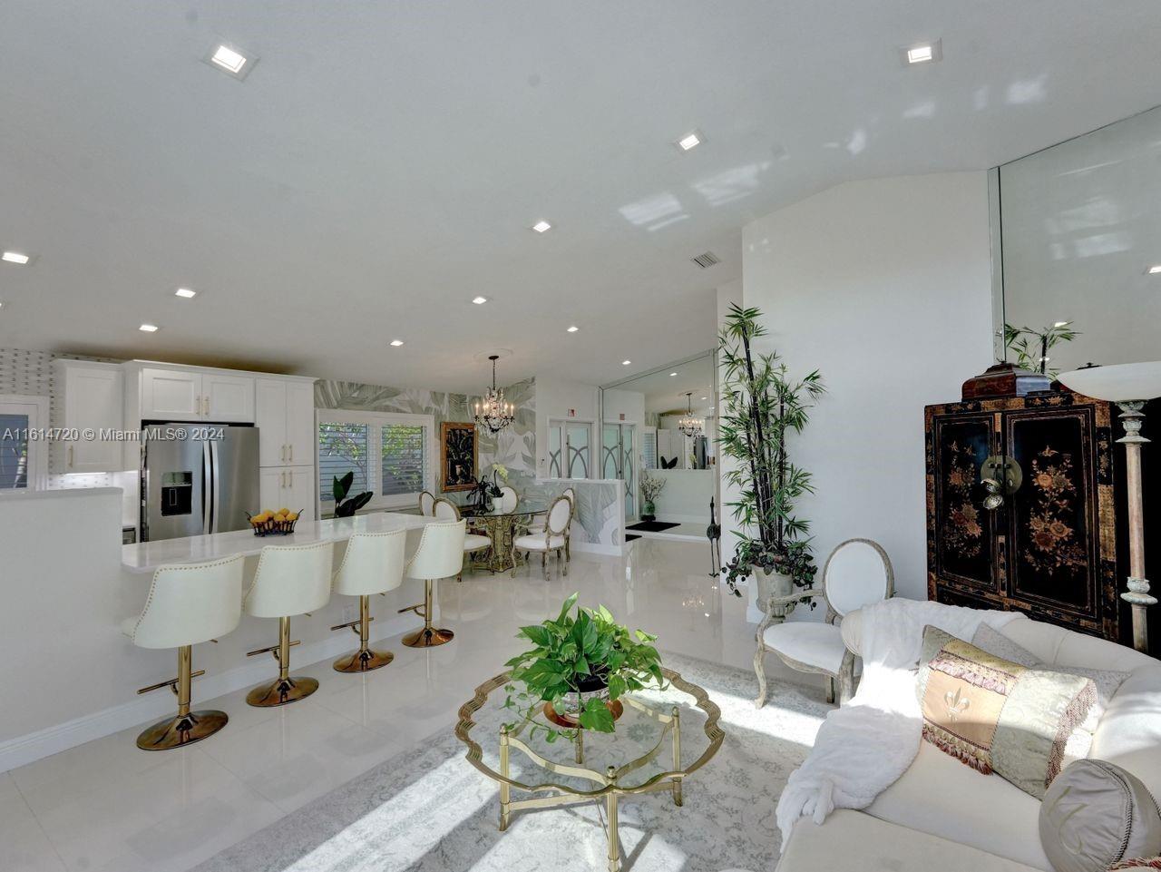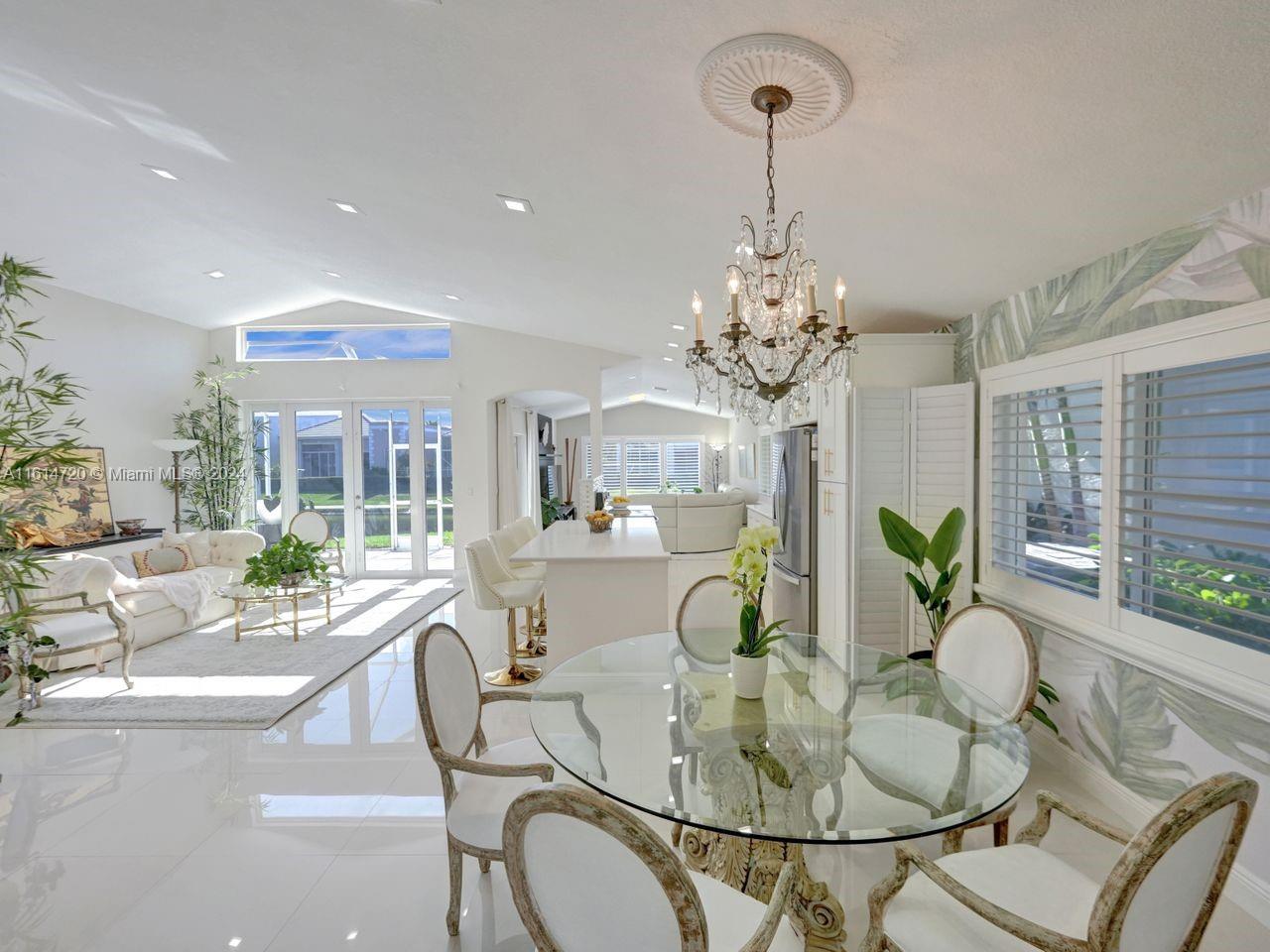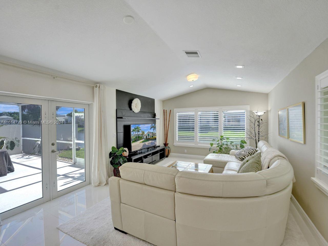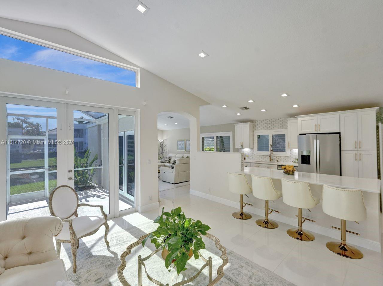Welcome to this stunning waterfront home located on a peaceful cul-de-sac. This SINGLE-STORY home is completely renovated, with quartz countertops, soft close drawers, and exquisite porcelain flooring throughout adding a touch of elegance to every room. The open concept is spacious and inviting atmosphere w/ vaulted ceilings and new LED lighting. There is plenty of natural light with 3 sets of afrench doors to screened patio. The plantation shutters provide privacy and style, while the impact windows and doors ensure safety. The primary bedroom is spacious and overlooks the waterfront. The Closet Factory custom closets offer plenty of organization and space for storage. Situated in the gated community of Palms at Boca Pointe, with NO Mand.Membership fees. All ages Welcome & LOW taxes.