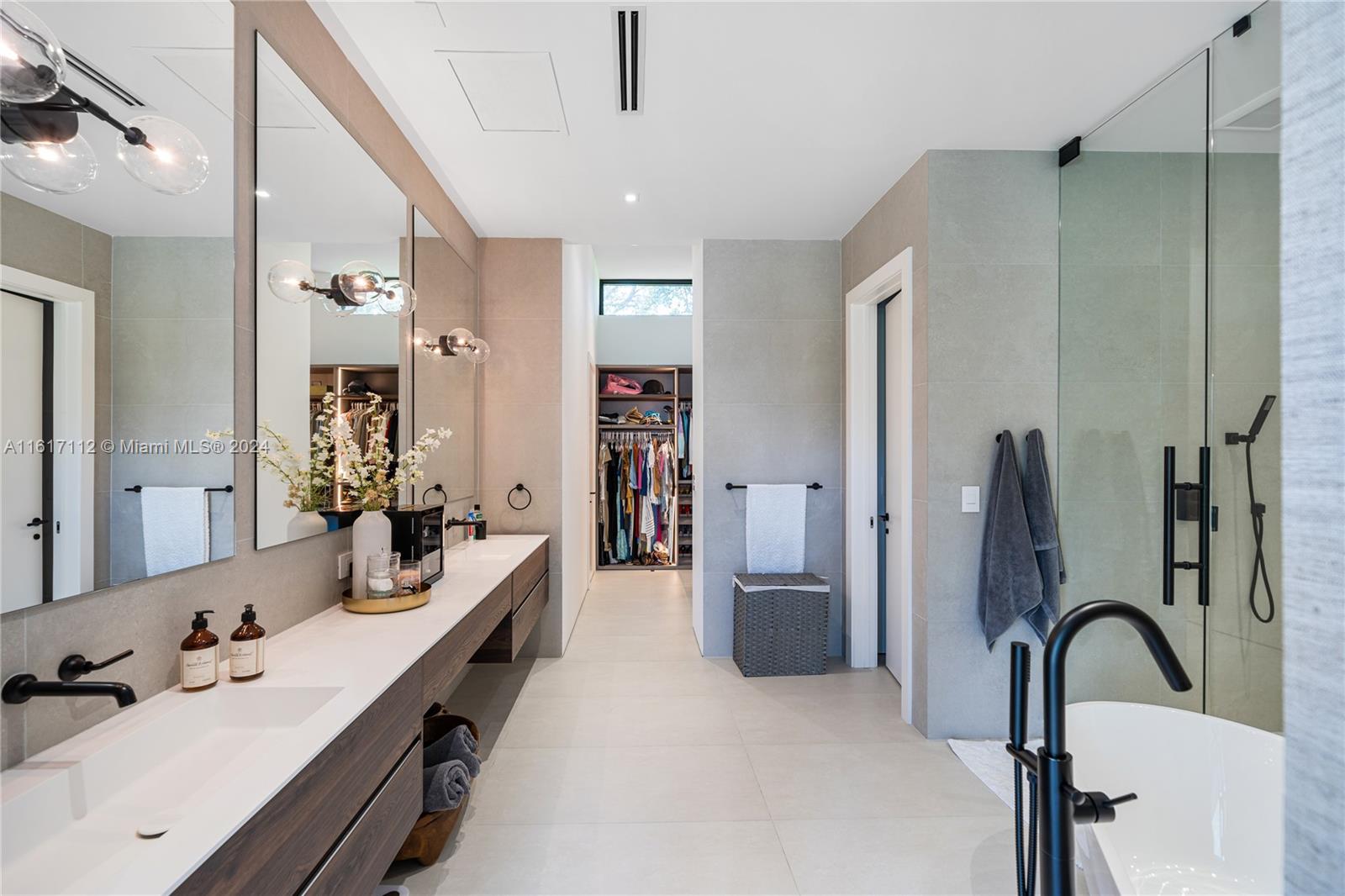 Beautiful Modern Construction in the Heart of Pinecrest. This spectacular home includes: 5 bedrooms, 5.5 bathrooms in the main house with a 1/1/ guest house, fully gated and sits on a 38,766 sqft lot. The main entrance greets you with an 11ft hurricane proof Mahogany pivot door and the throughout the home you have high ceilings ranging from 10 to 14 ft. Fully equipped with Italkraft kitchen cabinets, quartz counters and Miele, Wolf and Liebherr appliances. All bedrooms are fully ensuite and are completed with Mia Cucina closets.