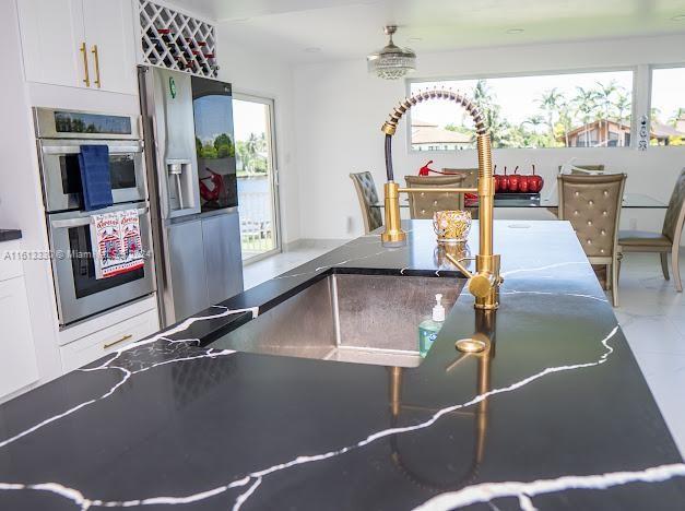 Experience luxurious living in this stunning oversized corner lot with direct ocean access located in the prestigious gated community of Gables by the Sea. This 2-story home features a private boat dock accommodating up to two 75 ft boats and two 32 ft boats. Enjoy mesmerizing sunsets, sunrises, and dolphins passing by from the spacious backyard, perfect for entertaining with its ample patio space. The property includes 4 bedrooms, 2.5 bathrooms, and a 3-car garage, and has been thoughtfully designed and fully renovated less than a year ago with modern stainless steel appliances, impact windows, an emergency generator, and brand new air conditioning. The sizable driveway fits 4+ cars. Additionally, it offers easy access to Lugo Point and is surrounded by top-rated schools.