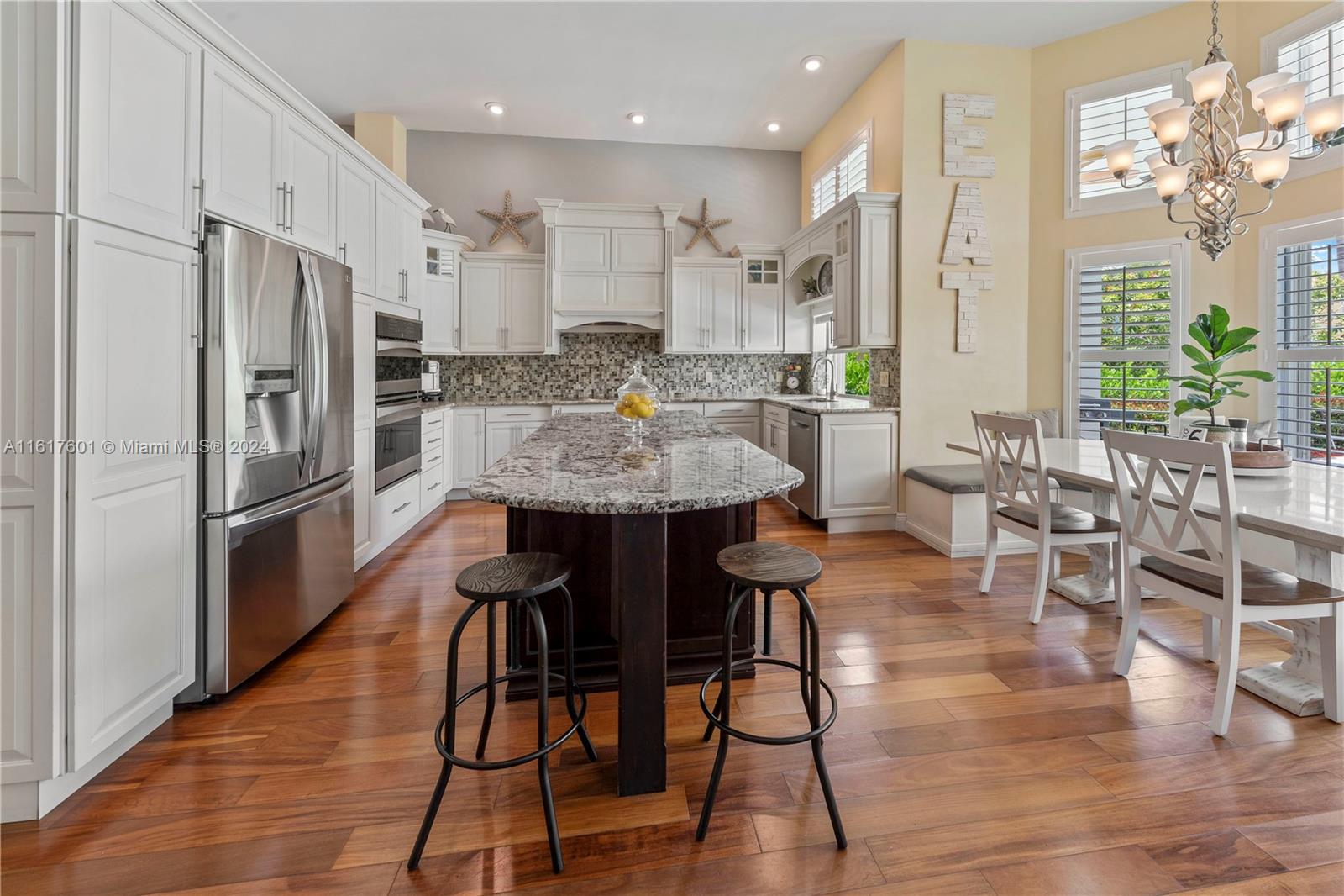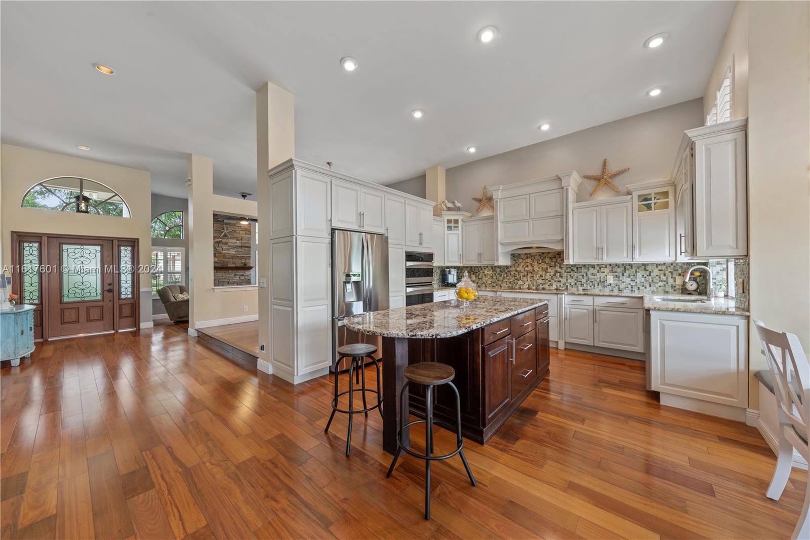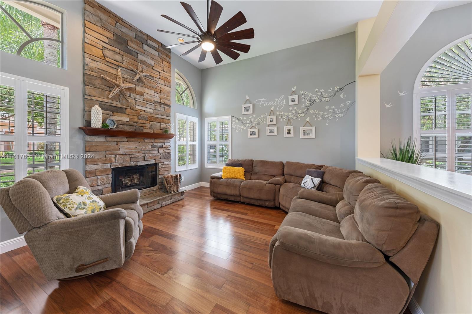 This Could Be the One! Beautiful 4 Bed / 2.5 Bath Family Home in Highly Sought-After Brookside Neighborhood. Walk to A+ Schools, Parks & Sports. This Home Boasts an Open Plan with High Ceilings. Master Bedroom Features Walk-in Closet, Updated Spa Ensuite, Dual Sinks, Free Standing Tub & Shower. Hardwood Floors Throughout, Plantation Shutters, KabCo Custom Designed Kitchen, SS Appliances, Large Eat in Island, Central Vac, Wood Burning Fireplace, Laundry Room with Sink & Refrigerator. Enjoy a Landscaped Private Fenced Yard with Sprinklers, Updated Saltwater Pool, LED Lights & Travertine Patio. Accordion Shutters & Impact Front Door. Don’t miss the Dream Garage with Epoxy Flooring and Storage Cabinets Galore! Roof 2007, HVAC w/ UV Light 2014, Alarm, & Generator Hook Up.