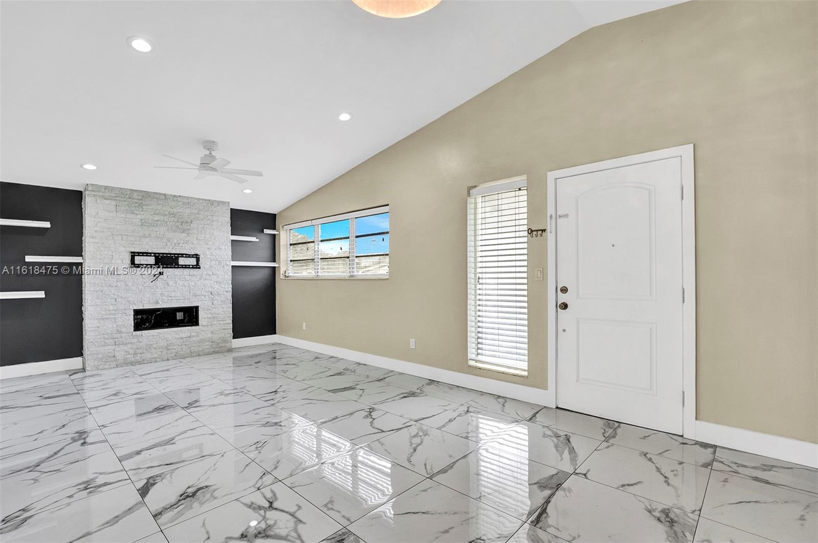 Stunning Pool Home in a desirable family -friendly neighborhood. 3 Br 2 BR- Completely updated throughout in the last few years. plus 1/1 studio that is rented for additional income. Kitchen has a Huge Quartz counter tops, custom cabinets and black stainless-steel appliances with a tap Kegerator. Both bathrooms are tastefully updated. Master bathroom has a cabana door for easy access to the pool. The master closet has a built-in cabinets. Calacatta tile floors throughout. Freshly painted, Stylish rock wall in living room & master bathroom. High vaulted ceilings, Washer & dryer inside the property. The property has hurricane shutters for protection. Large, covered patio, New roof, new AC, Pool was re-done in last 5 yrs, Large shed-for storage. Fruit trees