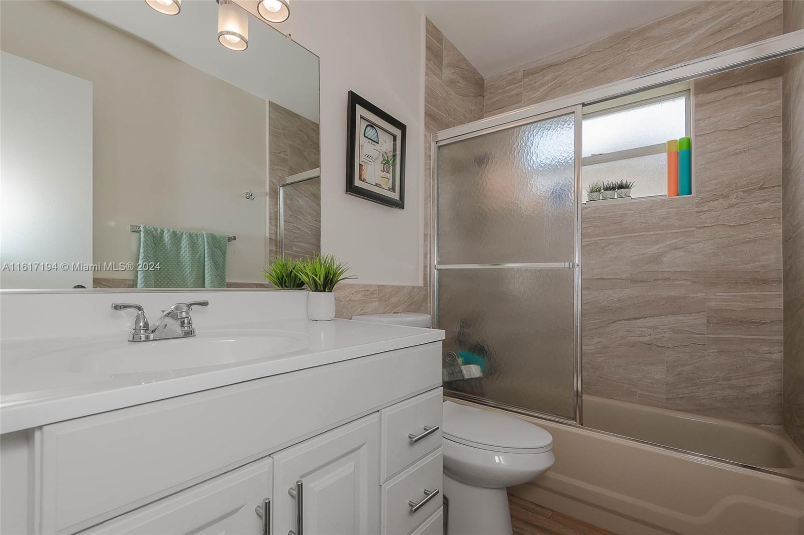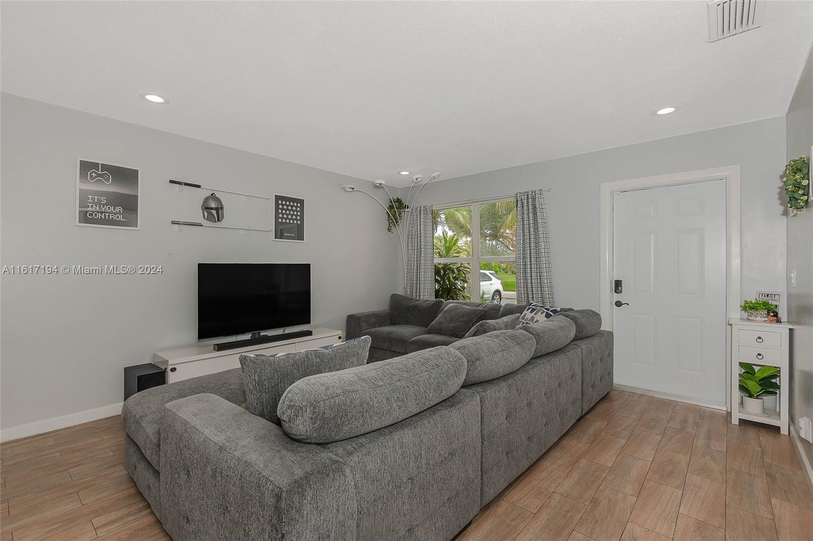 **Welcome Home!** This stunning half-duplex on an oversized lot is the perfect starter or forever home, priced just right! Inside, you'll find beautiful white shaker cabinets with modern hardware, granite counters with a bar top, a sleek subway tile backsplash, and ceramic wood-look tile throughout. The bathrooms boast 24x12 inch porcelain surrounds, and the kitchen features stainless steel appliances and much more! This home offers a unique split floorplan with a large dining/living combination and an additional family room. Outside, enjoy the expansive screened-in patio and extra-long driveway, perfect for entertaining and enjoying outdoor days. Recent upgrades include a new HVAC system, ensuring comfort and peace of mind. Don't miss out on this unique gem!
