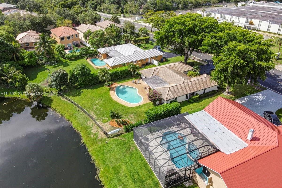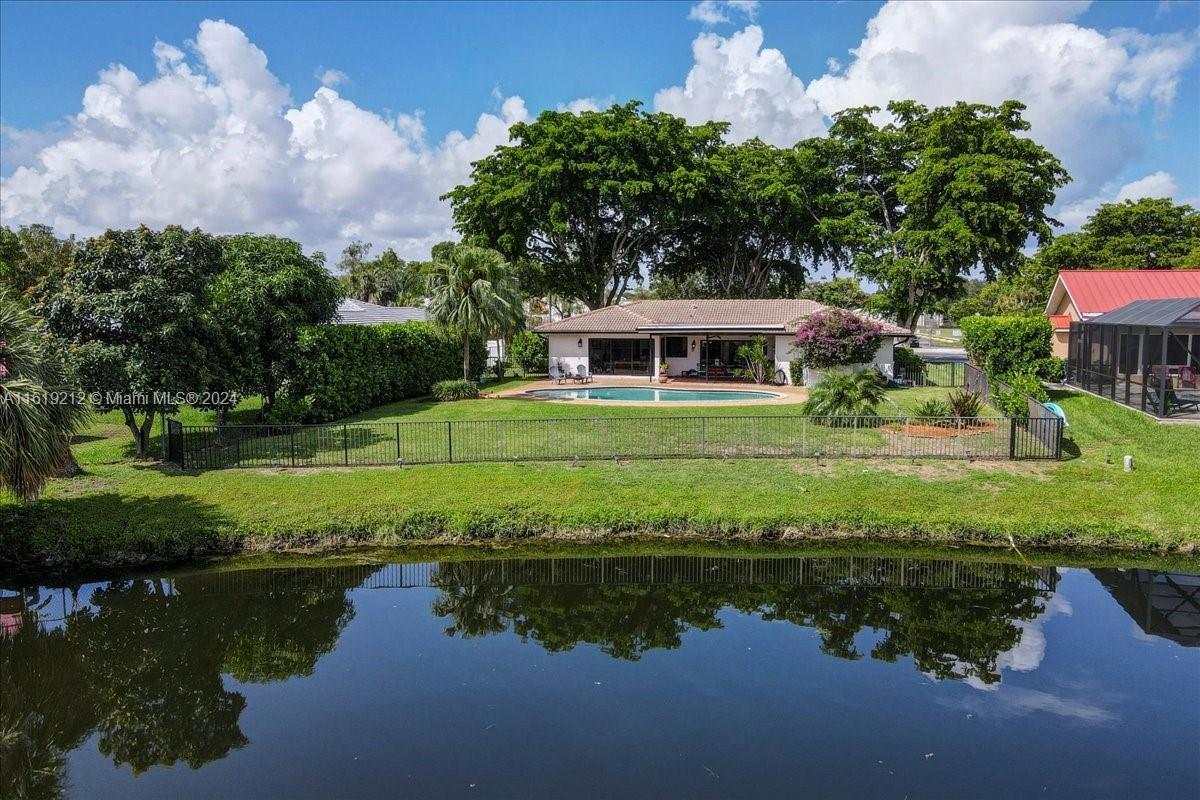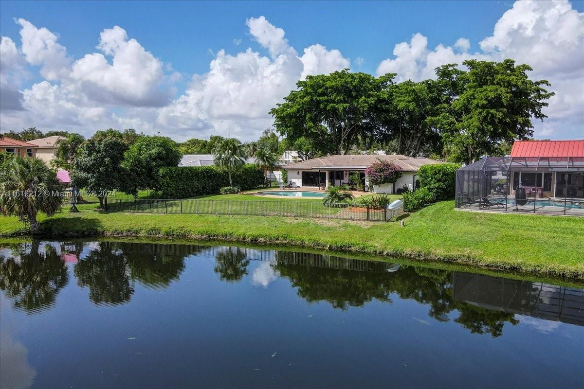 Unparalleled value w/this Coral Springs gem w/no HOA. Waterfront property features circular driveway, mature trees and tile roof with 10-year life expectancy. High-impact doors and windows. Inside, renovated space w/Mexican tile and wood flooring, 5" baseboards, vaulted ceilings with natural light, custom ceiling fans and renovated bathrooms. A versatile space can be converted to an office, zen room, or storage. 2nd bathroom has a combo tub/shower with a rainfall shower head. Kitchen is a chef's dream with newer SS appliances, recessed lighting, and views of the pool, yard, and water. White shaker cabinets, custom hardware and granite countertops. This charming home sits on an oversized 13,936 sq ft lot and represents an incredible value. Will you seize this opportunity?