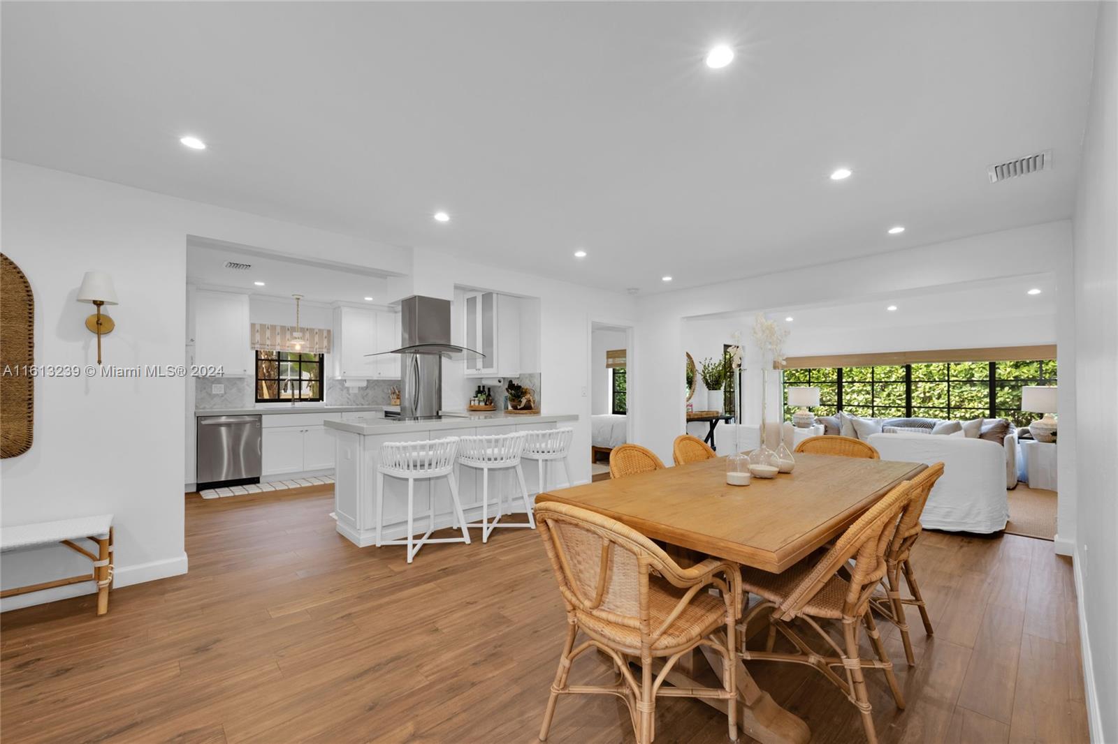 Located on a quiet, beautiful tree-lined street in North Gables, this home was recently remodeled to perfection with a bright open floor plan, boasting gorgeous wood flooring, stunning kitchen with marble counters and high-end appliances. Featuring 3 well proportioned bedrooms with ample closet space and 2 remodeled baths, the home has been meticulously maintained inside and out. Lush landscaping in the front and a mature privacy hedge in the backyard create a private, sunny oasis. Additional features are full impact windows/doors, curtains/blinds on all windows, security system, upscale pendant lighting and 1 car attached garage. Only minutes to downtown Coral Gables and airport.