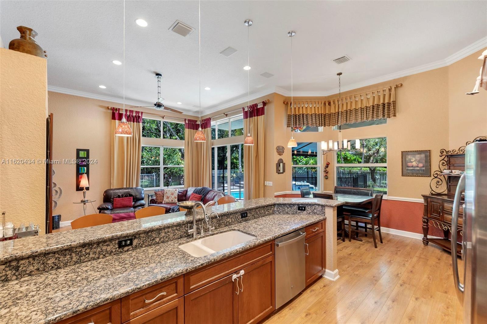 Back on the market Prestigious Fox Ridge of Parkland! One-story, 5 bedrooms, 3 & 1/2 bathrooms, 3-car garage, with over 3,000 sq ft under air. Open triple split floor plan is ideal for families & guests alike. The kitchen featuring granite countertops & stainless-steel appliances with ample counter space & storage.newer a/c's; volume ceilings; triple split bedroom plan; wood flooring in bedrooms and carpet,accordion hurricane shutters; large, covered patio; open pool & huge backyard with plenty of room to play & entertain! Fox Ridge offers a 24-hour guard gate, tennis courts, volleyball, playground w/low HOA fees. Walk to all A-rated schools (elementary, middle & high) motivated sellers.