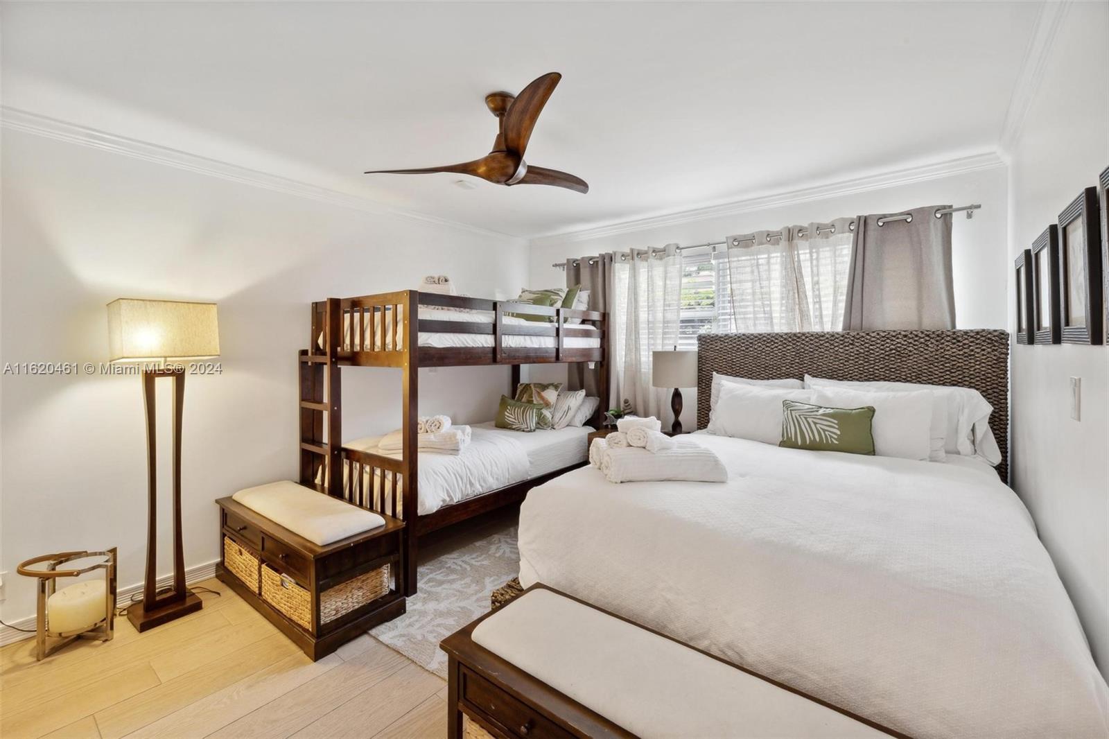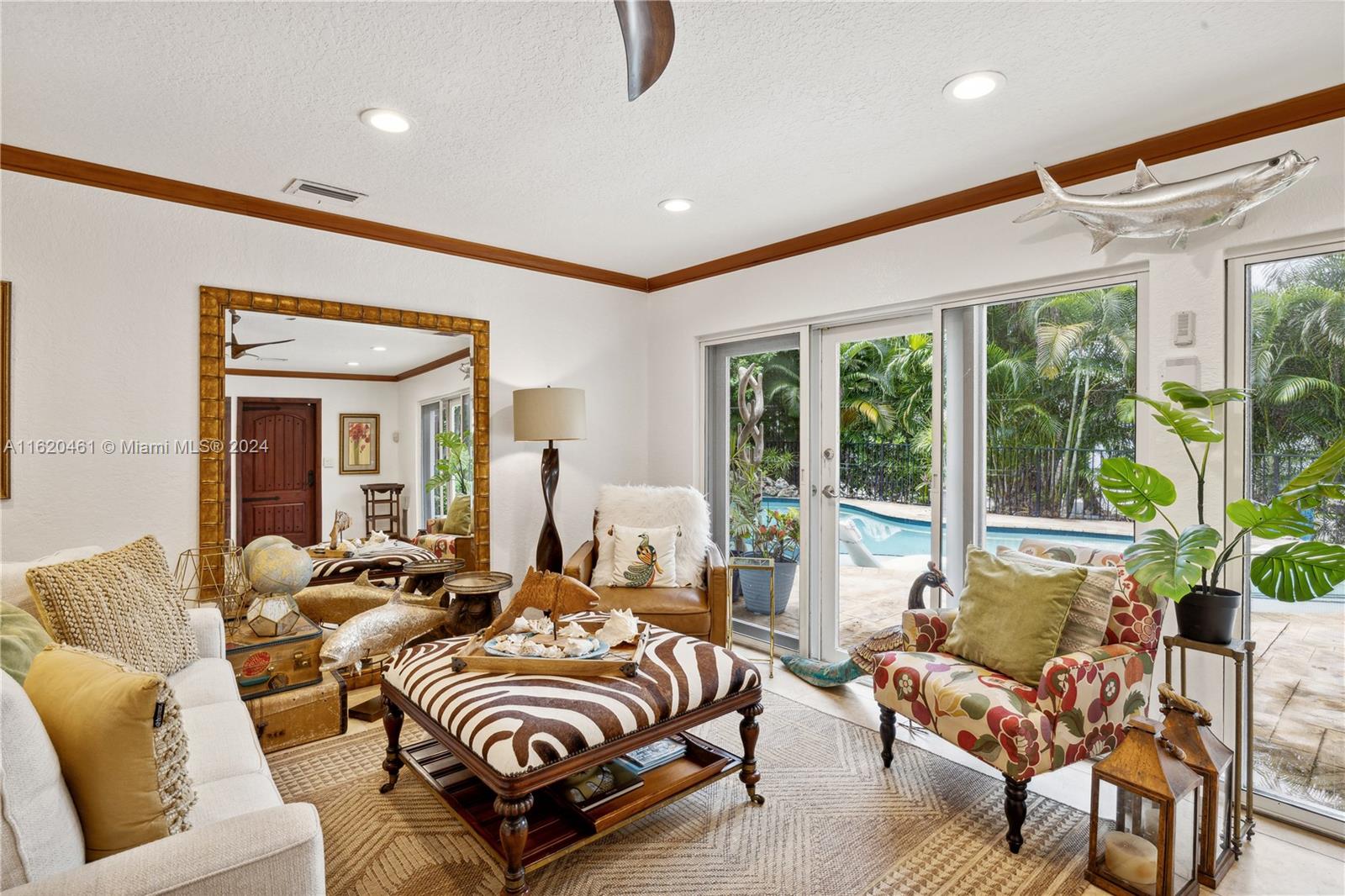 Welcome to 2400 N Riverside Drive, a captivating 4/3 Airbnb income producing property nestled in the exclusive Hillsboro Shores neighborhood. This beautifully furnished and tastefully decorated home is ideal as a full-time residence or a seasonal getaway, with the ability to generate income when not in use.The 4th bedroom is a spacious guest suite with its own kitchenette. The open-concept living area boasts a well-appointed kitchen and a butler's pantry, complete with a wine cooler. The heated saltwater pool, recently updated with new Diamond Brite and stamped concrete decking, is surrounded by lush tropical landscaping and mature trees. An expansive rooftop deck enhances the outdoor entertaining space. The property was reroofed in 2012, and the AC unit was replaced three years ago.