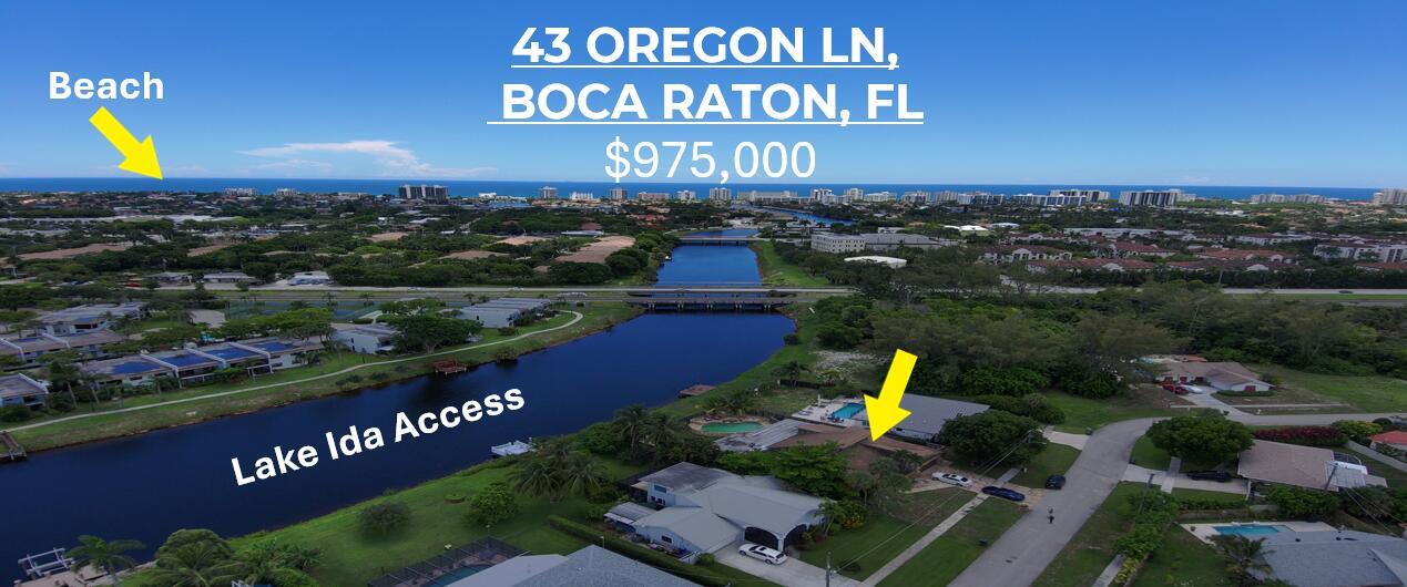 Welcome to 43 Oregon Ln, a unique oasis in the heart of Boca Raton. This exceptional property embraces a natural and holistic lifestyle, providing a serene retreat from the hustle and bustle of modern life.Step into a home where raw, natural elements create a harmonious living environment. The open floor plan, flooded with natural light, invites you to experience the tranquil beauty of this home. The spacious backyard is perfect for sun gazing and reconnecting with nature. Enjoy the canal that leads to Lake Ida, perfect for sports, fishing, cruising, or simply taking in the view.Aggressively Priced Hurry Up!