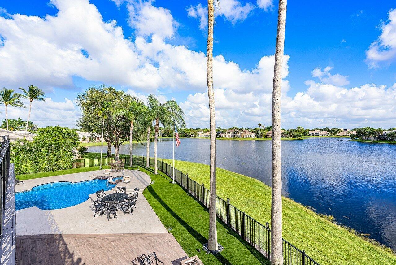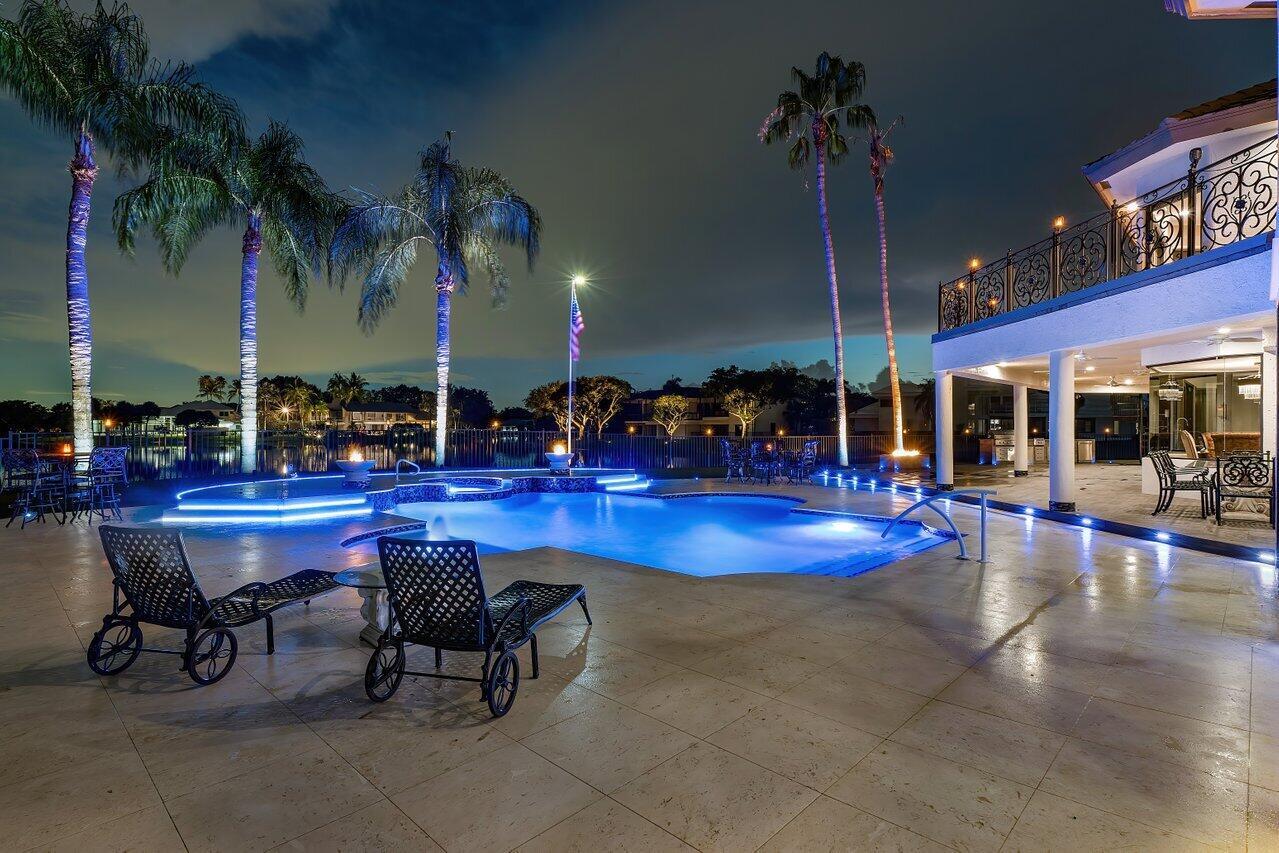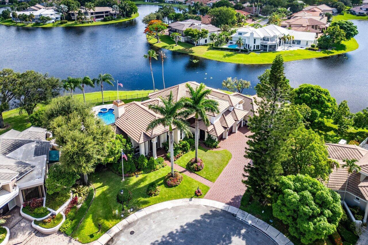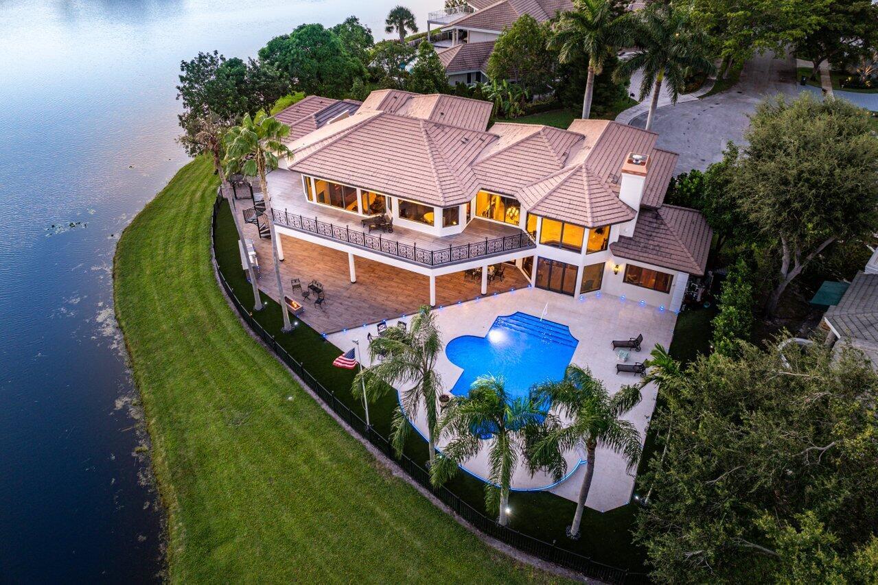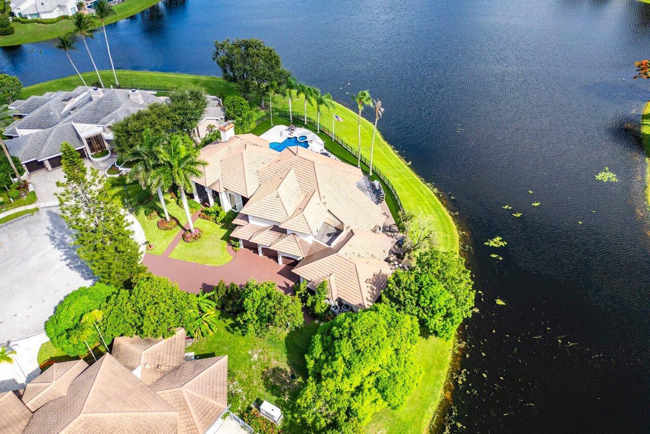 This spectacular,timeless,one of a kind 7,373 square ft. residence is situated on a superior .46-acre pie-shaped lakefront trophy lot with 235 ft of water frontage on a quiet cul-de-sac. Breath-taking long-lake views inside and out! All 5 spacious en-suite bedrooms and all the living areas have gorgeous views of the lake. Features include a large heated saltwater pool and spa with a resort-style yard,with gas fire features (2 fire bowls and an outdoor fireplace). Large outdoor kitchen with built-in refrigeration,large grill with rotisserie,wok burner,sink,and built-in stainless drawers. The first floor offers an open floor plan with soaring ceilings in the foyer,living room,dining room,and family room. The temperature-controlled wine room features a custom iron door and wet bar.