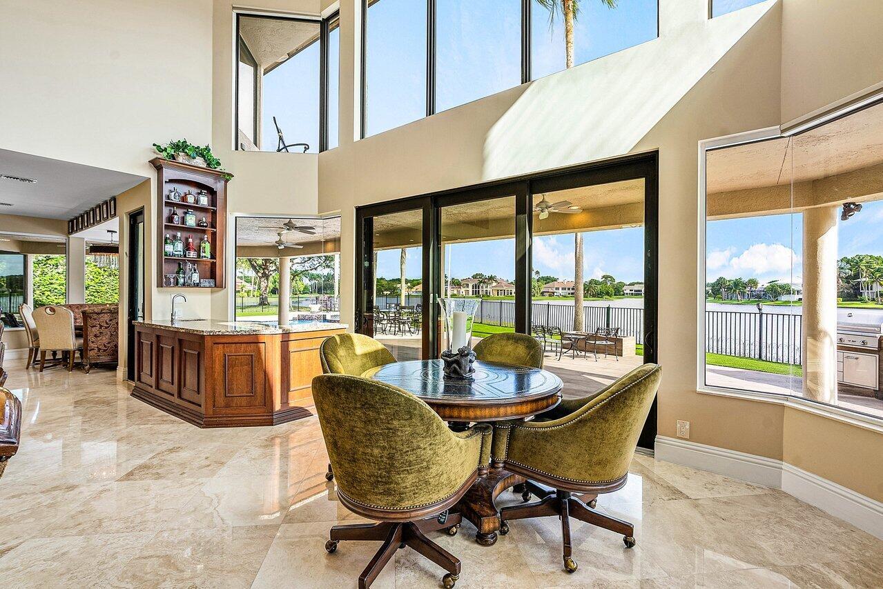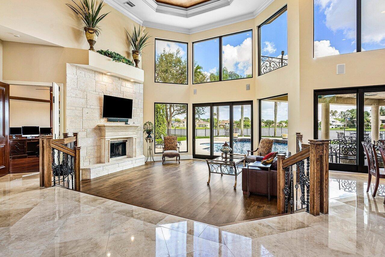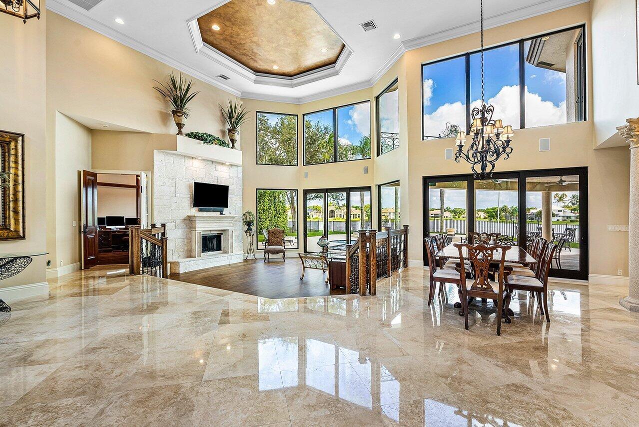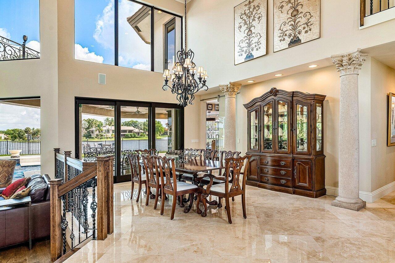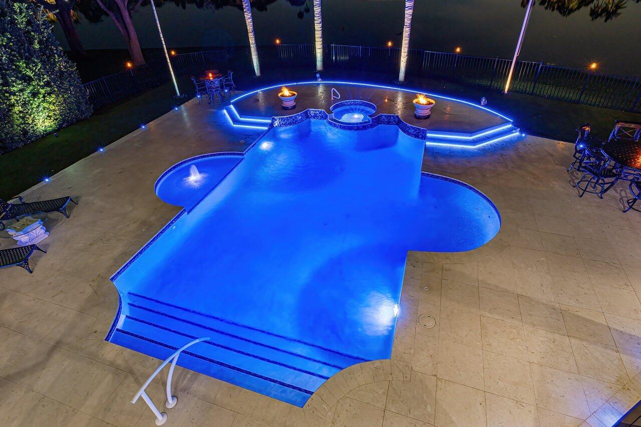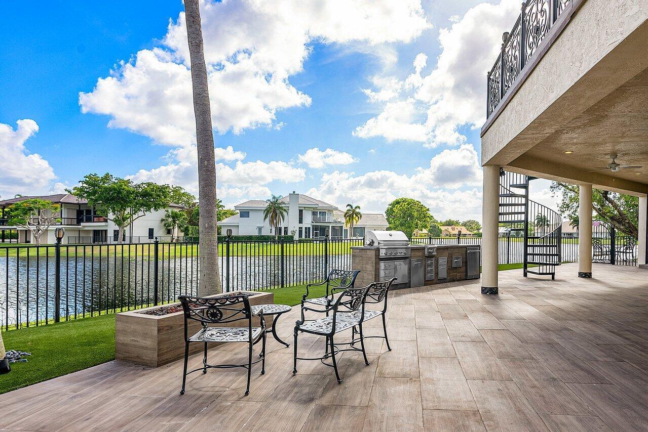 This spectacular,timeless,one of a kind 7,373 square ft. residence is situated on a superior .46-acre pie-shaped lakefront trophy lot with 235 ft of water frontage on a quiet cul-de-sac. Breath-taking long-lake views inside and out! All 5 spacious en-suite bedrooms and all the living areas have gorgeous views of the lake. Features include a large heated saltwater pool and spa with a resort-style yard,with gas fire features (2 fire bowls and an outdoor fireplace). Large outdoor kitchen with built-in refrigeration,large grill with rotisserie,wok burner,sink,and built-in stainless drawers. The first floor offers an open floor plan with soaring ceilings in the foyer,living room,dining room,and family room. The temperature-controlled wine room features a custom iron door and wet bar.