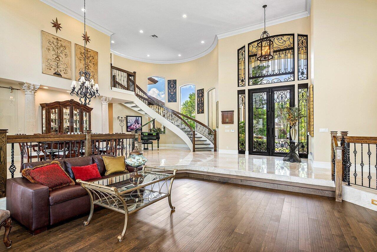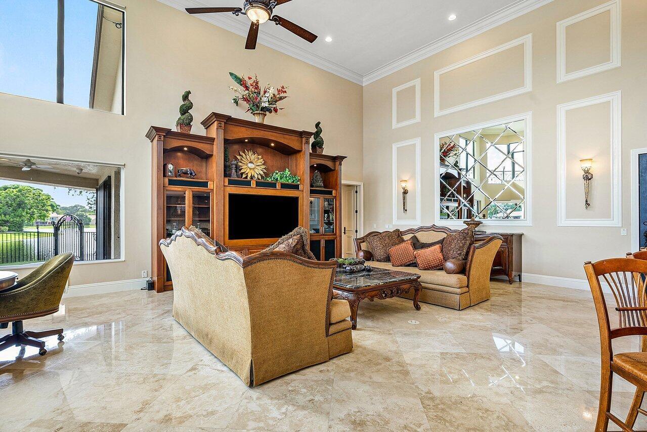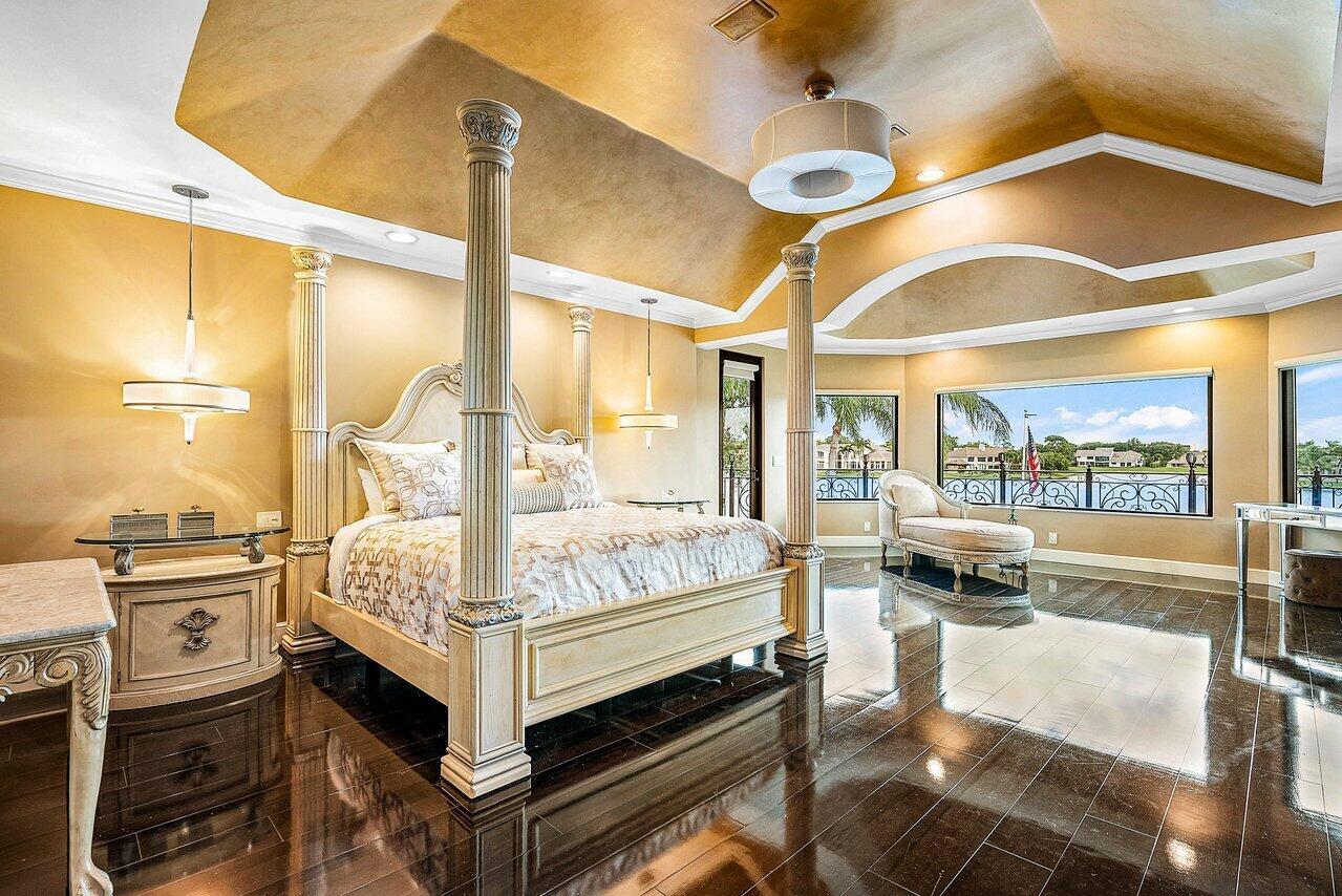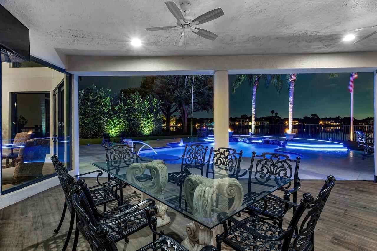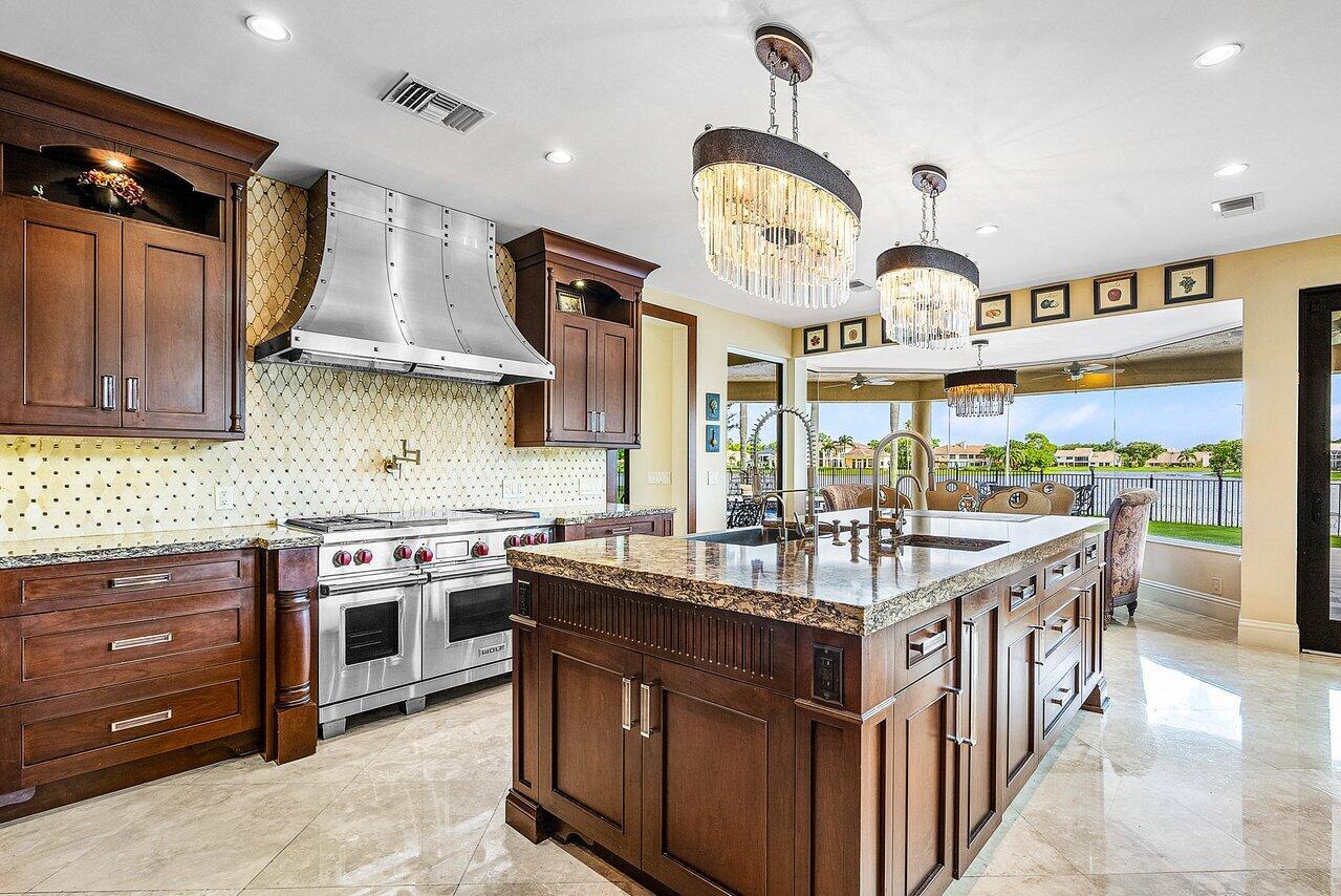 This spectacular,timeless,one of a kind 7,373 square ft. residence is situated on a superior .46-acre pie-shaped lakefront trophy lot with 235 ft of water frontage on a quiet cul-de-sac. Breath-taking long-lake views inside and out! All 5 spacious en-suite bedrooms and all the living areas have gorgeous views of the lake. Features include a large heated saltwater pool and spa with a resort-style yard,with gas fire features (2 fire bowls and an outdoor fireplace). Large outdoor kitchen with built-in refrigeration,large grill with rotisserie,wok burner,sink,and built-in stainless drawers. The first floor offers an open floor plan with soaring ceilings in the foyer,living room,dining room,and family room. The temperature-controlled wine room features a custom iron door and wet bar.