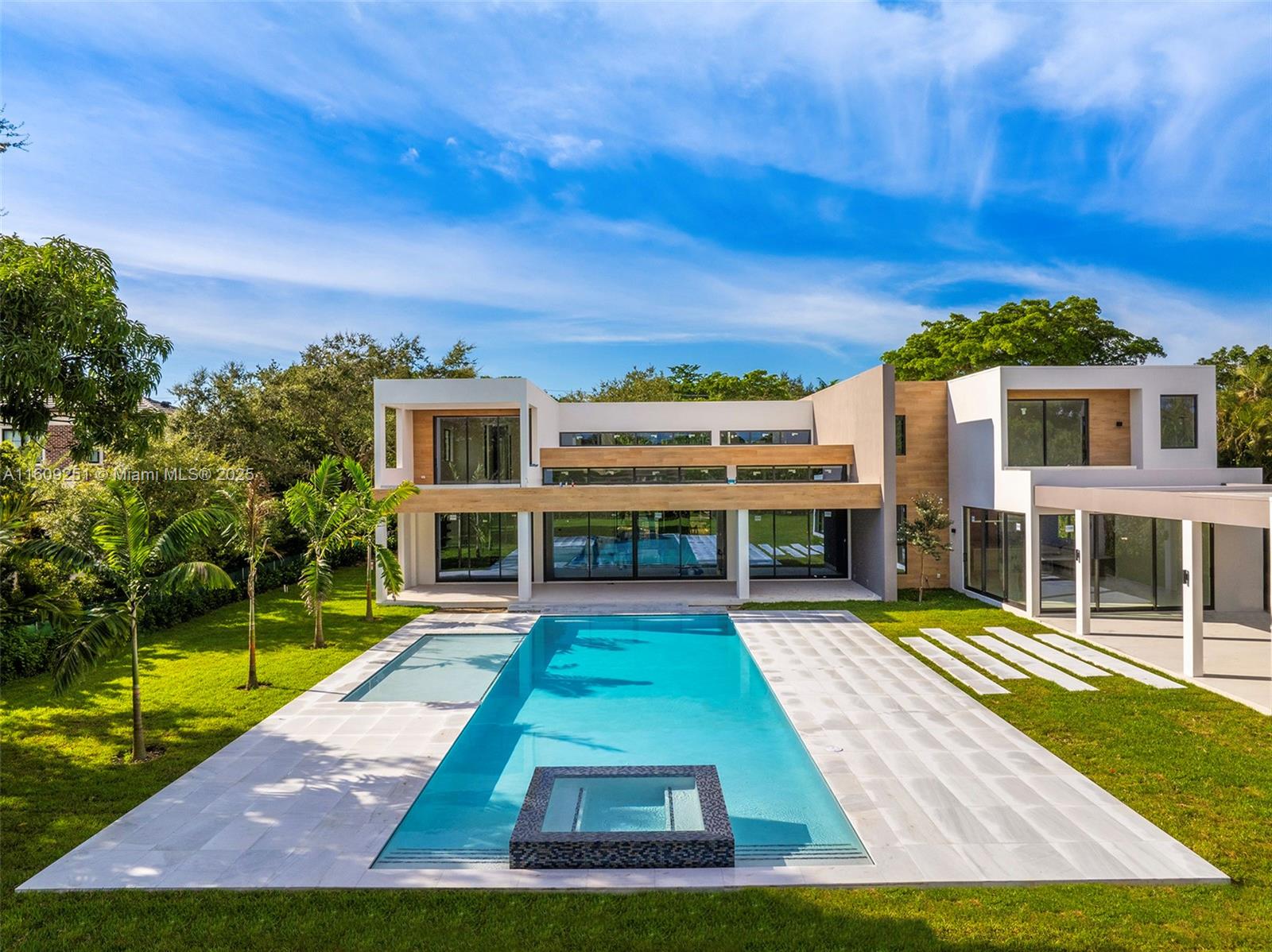 Welcome to Luxury! This 2-story, 7-bed, studio, 8.5-bath home in a great neighborhood combines modern aesthetics with top-tier amenities. The entrance greets you with solid core doors, leading to a grand residence with European cabinetry and quartz countertops. The property features a tranquil green area, a 60-foot pool, SPA, sundeck, BBQ area, gym, sauna, pickle ball court and 4 car garage. Great open floor plan integrates the bar, kitchen, and family room, all bathed in natural light. The kitchen boasts premium cabinetry and Miele appliances. Elegance is woven into every corner, from the wine cellar to the luxurious Master Suite. A modern elevator and a Lutron automation system add convenience and sophistication. This property is more than a house; it’s a lifestyle statement.