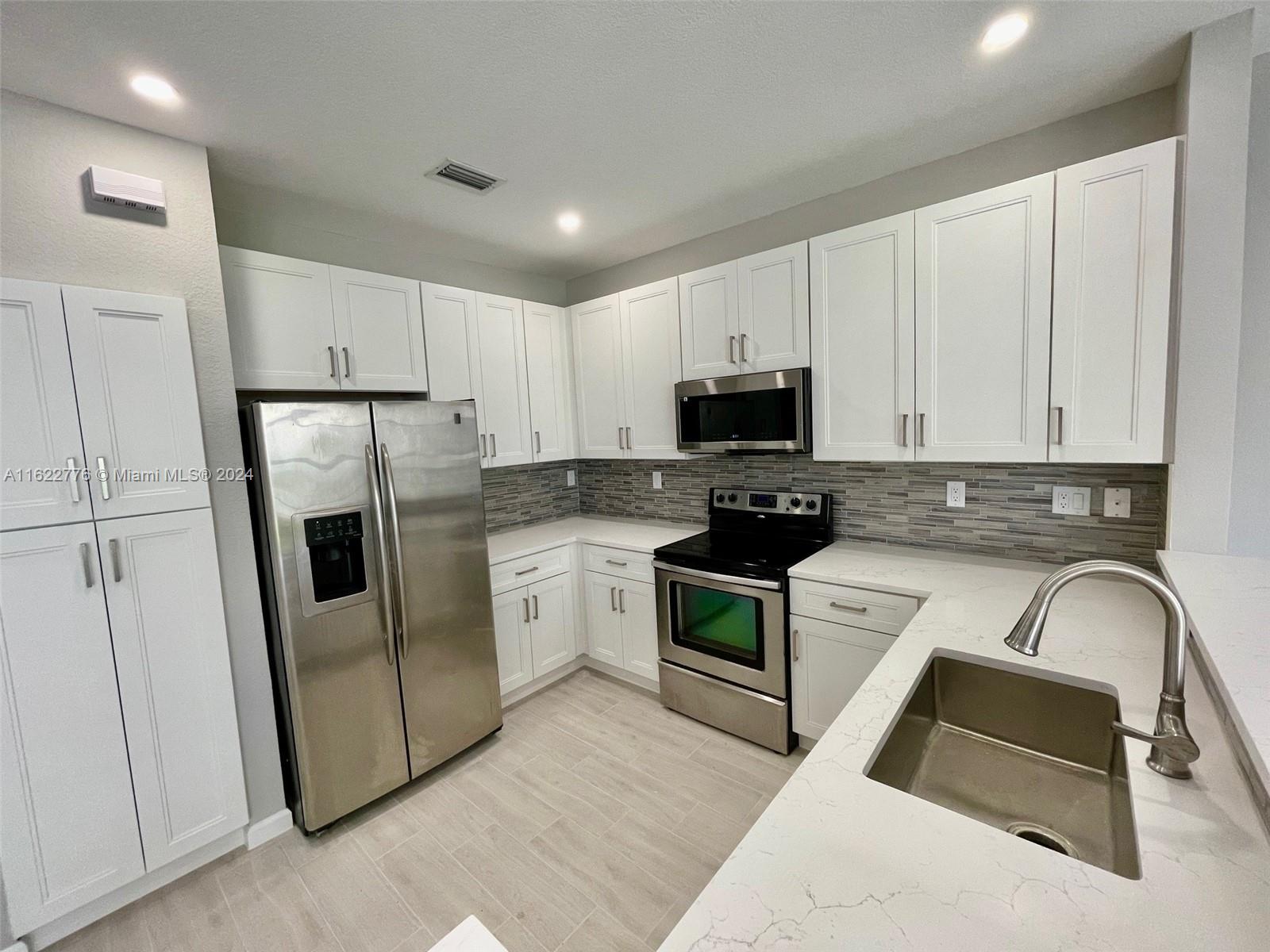 COMPLETELY REMODELED 3/2.5 PLUS OFFICE/DEN THAT COULD BE 4TH BEDROOM. EVERYTHING BRAND NEW INCLUDING WOOD-TILE FLOORING ON 1ST FLOOR * LAMINATE WOOD 2ND FLOOR * NEW A/C * NEW KITCHEN W/WHITE SHAKER SOFT-CLOSE CABINETS AND DRAWERS, QUARTZ COUNTERTOPS, AND MODERN BACKSPLASH * STAINLESS STEEL APPLIANCES * NEW VANITIES, SINKS, AND TOILETS IN BATHROOMS * LARGE PRIMARY BEDROOM W/REMODELED PRIMARY BATHROOM AND HUGE WALK-IN CLOSET. LOW HOA FEE INCLUDES LAWN MAINTENANCE, ALARM, GUARD GATED COMMUNITY, CABLE, INTERNET, CLUBHOUSE, FITNESS CENTER, COMMUNITY POOL, TENNIS COURTS, PLAYGROUND AND MORE. CLOSE TO HIGHWAYS, SHOPPING, COLLEGES, AIRPORTS AND MORE. HURRY!!